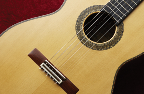 ナイロン・ガット等の弦を使用し、丸みのある優しい響きを持った楽器です。クラシック・ボサノヴァ・タンゴ等幅広いジャンルで好まれます。左右対称の糸巻きヘッド「スロテッドヘッド」もクラシックギターの特徴の1つです。アンサンブルの演奏では一層音の広がりをみせる表情の豊かな楽器です。