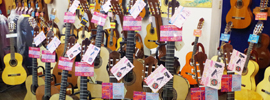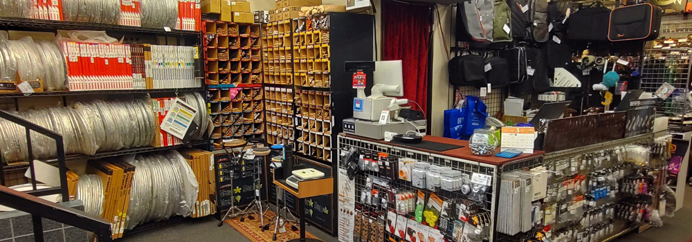 全教室が楽器店と併設しておりますので、楽器のメンテナンスや買い替えもお気軽にご相談いただけます。 弦などの消耗品は割引サービスもございます。 レッスンの待ち時間やお帰り前に、最新の楽器情報を得ることもできます。