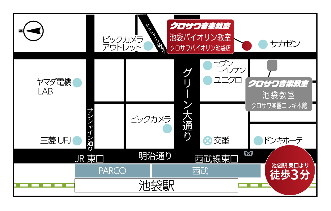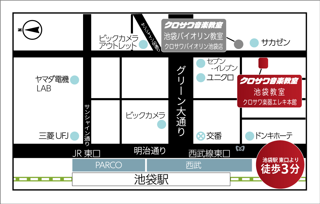 JR池袋東口より徒歩3分の好立地。ギター・ベースは勿論、ウクレレや管楽器、ボーカルレッスンも展開中の音楽教室です。 現役演奏家による充実したレッスン、楽器はレンタル無料ですので手ぶらでお越しいただけます。 まずは無料体験レッスンをお申込みいただき楽器演奏をお楽しみください。