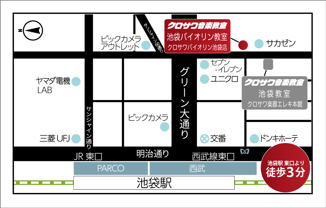 JR池袋駅東口より徒歩3分。バイオリン・エレキバイオリン・ビオラ・チェロ・ピアノ・ハープのクラシック弦楽器専門の音楽教室です。現役演奏家による充実したレッスン、楽器はレンタル無料ですので手ぶらでお越しいただけます。まずは無料体験レッスンをお申込みいただき楽器演奏をお楽しみください。