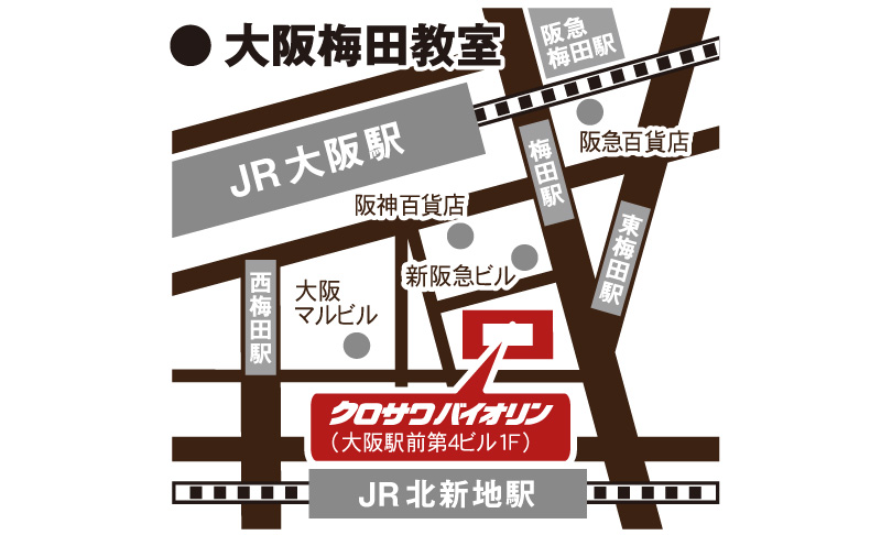 JR大阪駅より徒歩5分。イタリア・ドイツ・ルーマニア・ブルガリア他、弦楽器の本場ヨーロッパの厳選された良質な楽器を取り揃えており、商品点数・内容とも関西最大規模を誇る本格的弦楽器専門店です。 現役音楽家による充実したレッスン、楽器はレンタル無料ですので手ぶらでお越しいただけます。 まず無料体験レッスンをお申込みいただき、楽器演奏をお楽しみください。