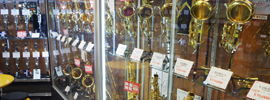 全教室が楽器店と併設しておりますので、楽器のメンテナンスや買い替えもお気軽にご相談いただけます。 弦などの消耗品は割引サービスもございます。 レッスンの待ち時間やお帰り前に、最新の楽器情報を得ることもできます。