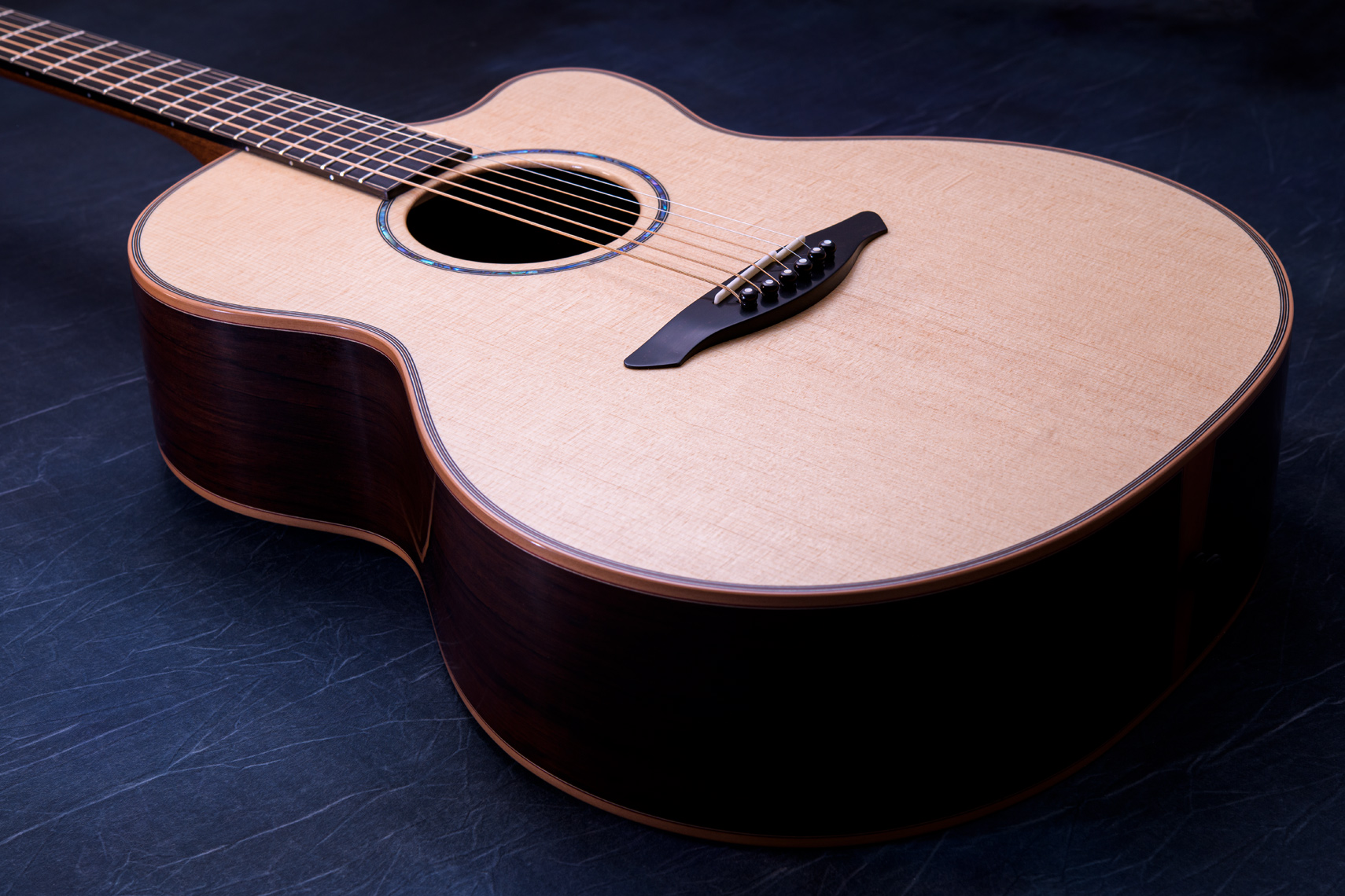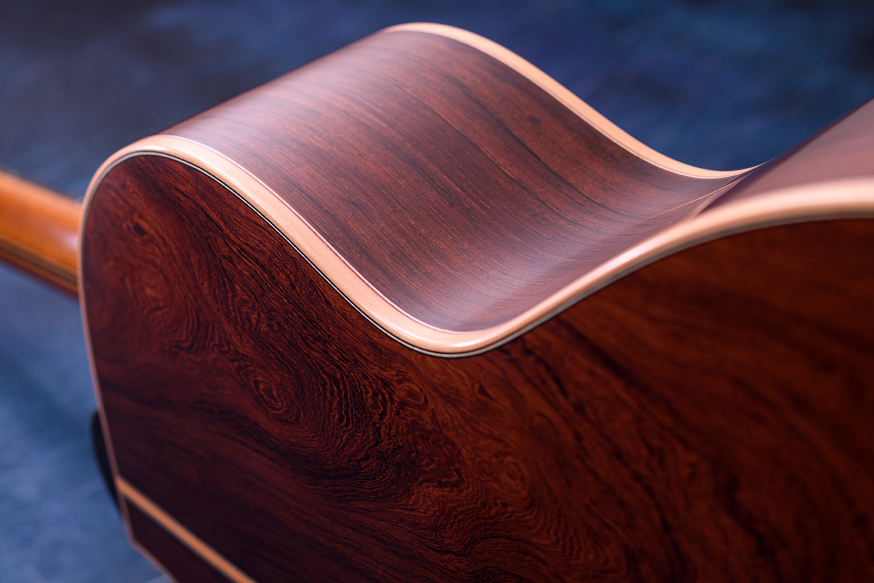 ニューハカランダとして名高いマダガスカルローズウッドをサイドバックに採用したモデル。材の特徴として比重がハカランダと似通っており、サウンド面でもハカランダ同様重厚さが感じられます。また、ハカランダの方が音の硬質さは感じられますが、逆にマダガスカルローズウッドならではの甘い音色も魅力の一つだと思います。