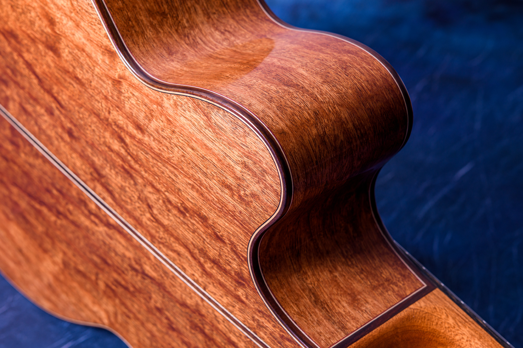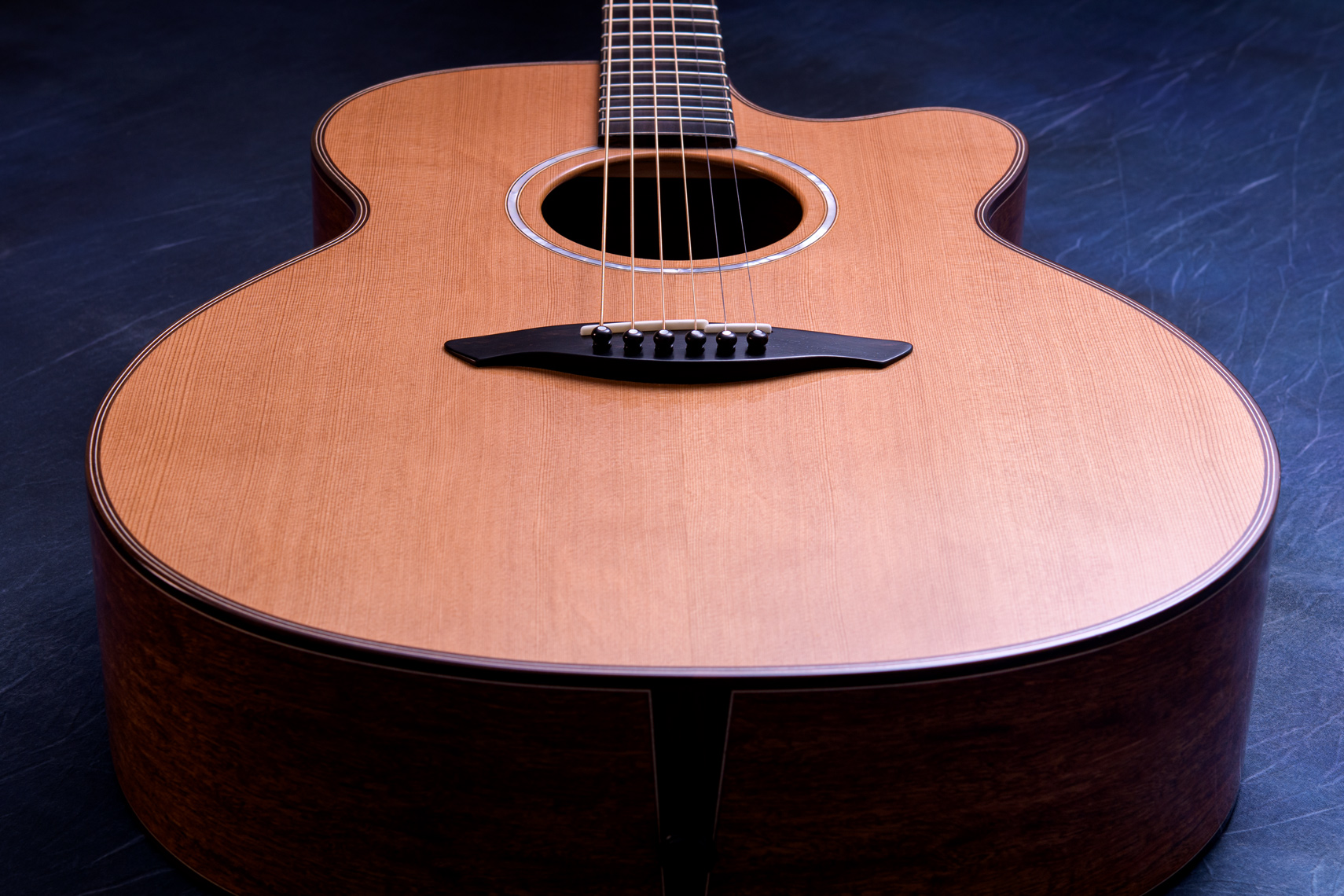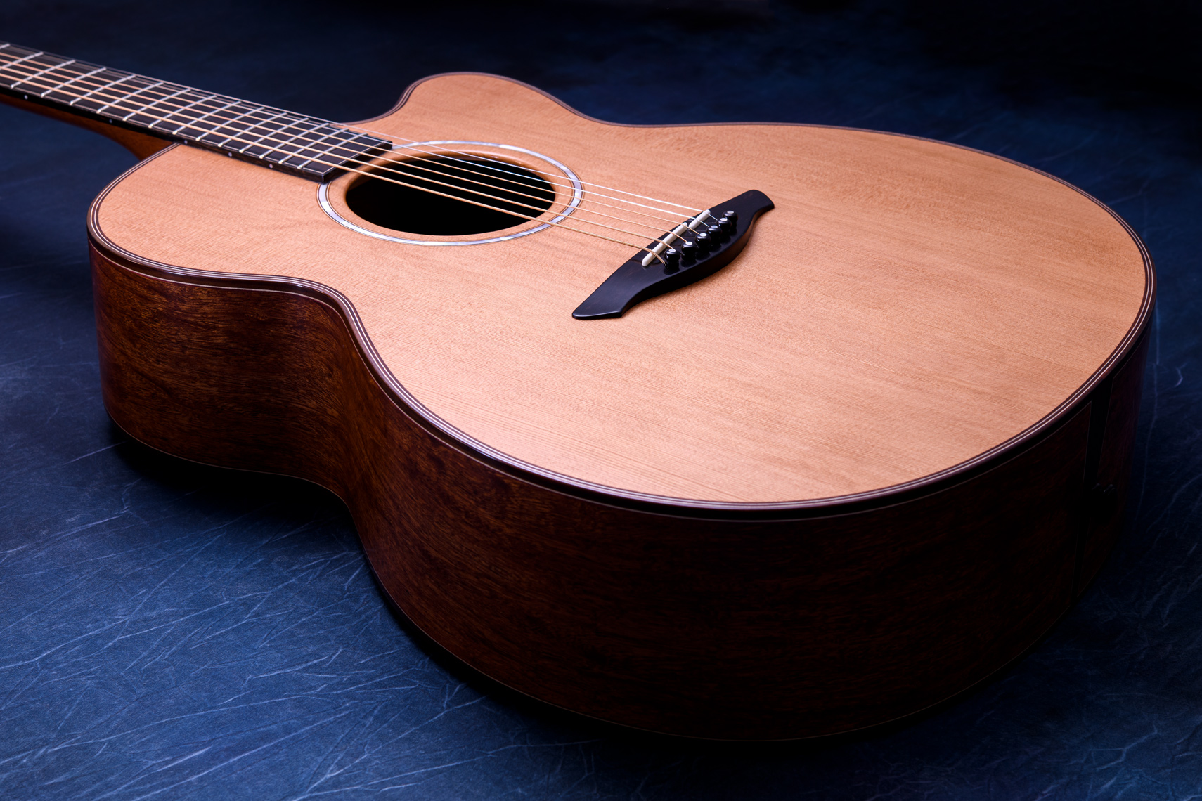 アイルランド製のハンドメイドギター。トップにはクラシックギターなどでもよく使用され、柔らかい音色が特徴的なシダーを採用。サイドバックにはマホガニーを使用しており、硬質なイメージがあるヨーロッパ系の中でも一際柔らかな音が楽しめます。とはいえ一音一音はっきりと出てくれます。また、L(ジャンボ)サイズの厚いボディで、深い胴鳴りが感じられます。