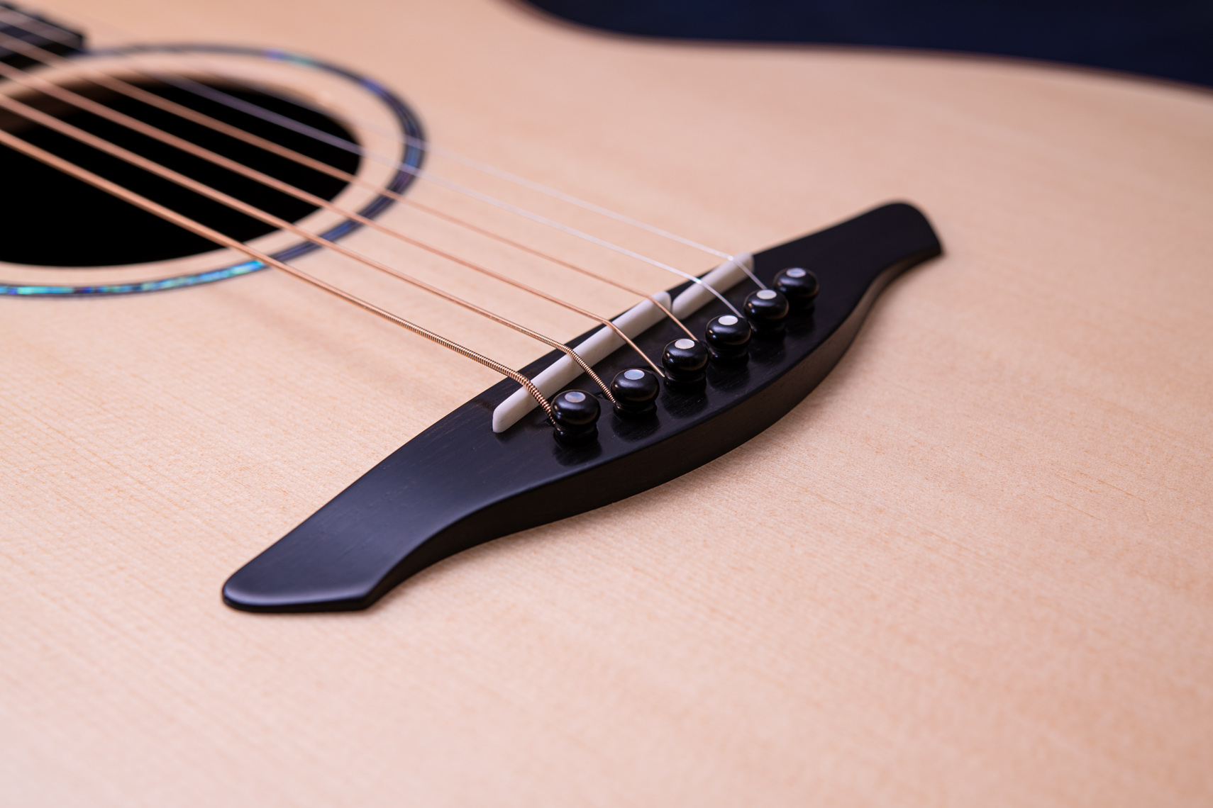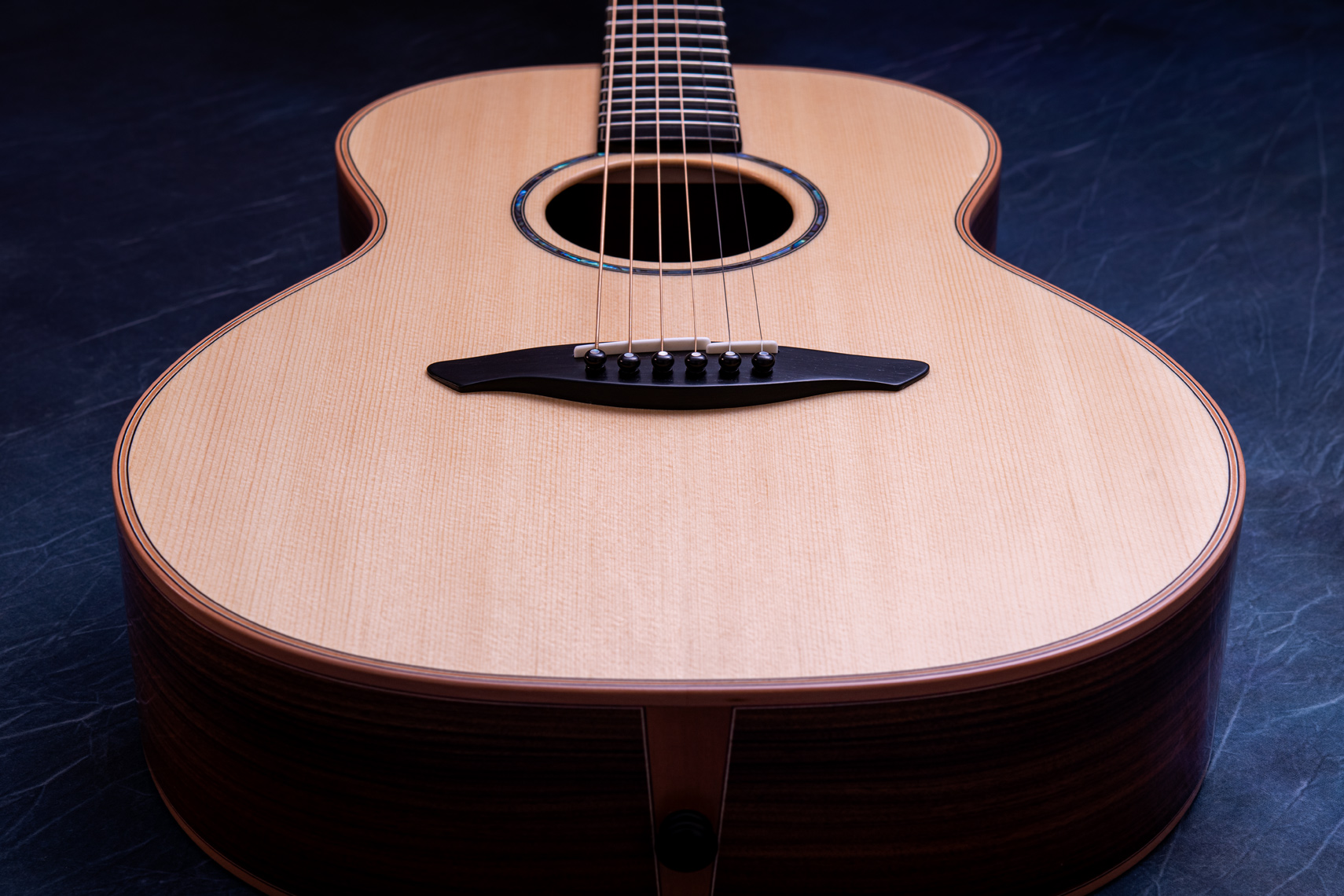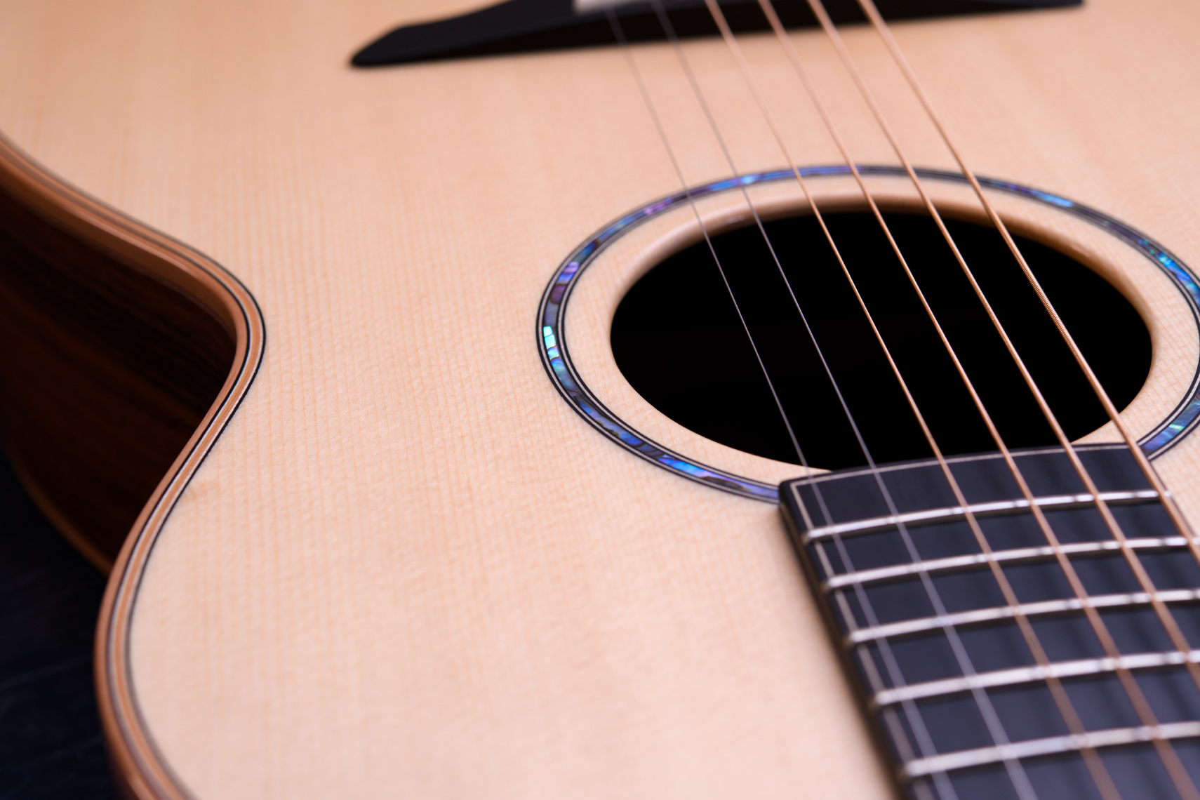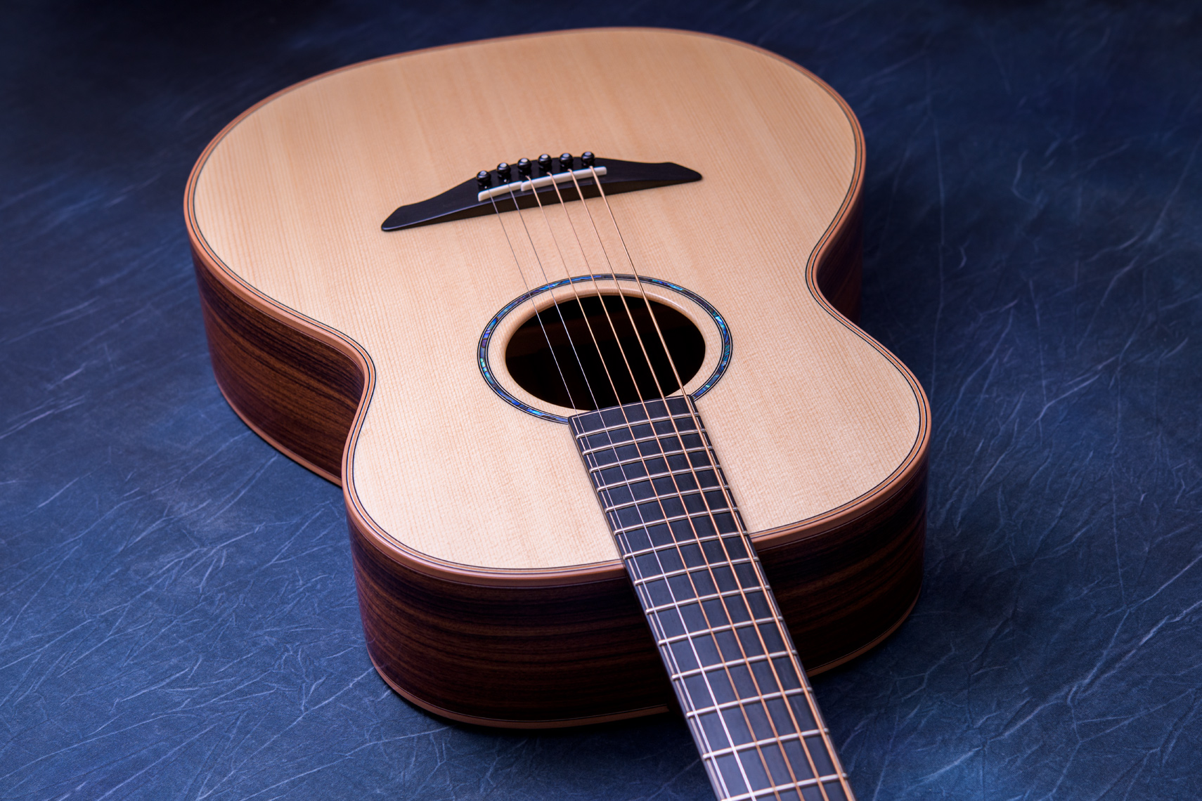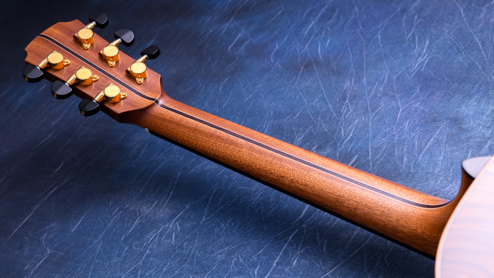 ニューハカランダとして名高いココボロをサイドバックに採用したモデル。ココボロ材はハカランダに比べても木材の特徴として重厚です。サウンド面でも同様に深い鈴なりが得られます。よく使用されるローズウッドはインディアン・ローズウッドですが、鈴なりの深さが違い「キラキラ」というよりは「ゴーン」というような重厚な鈴なりです。