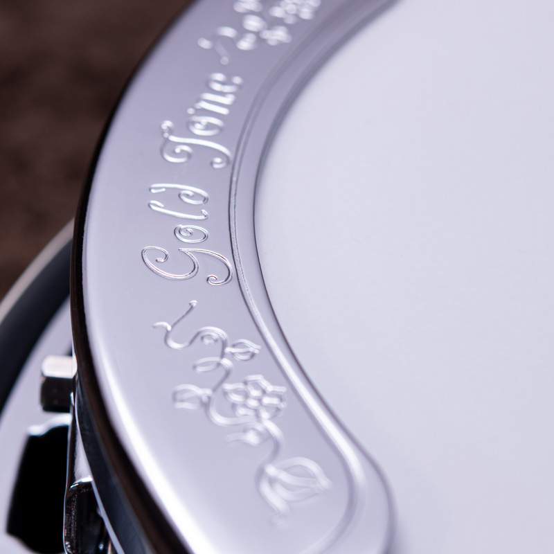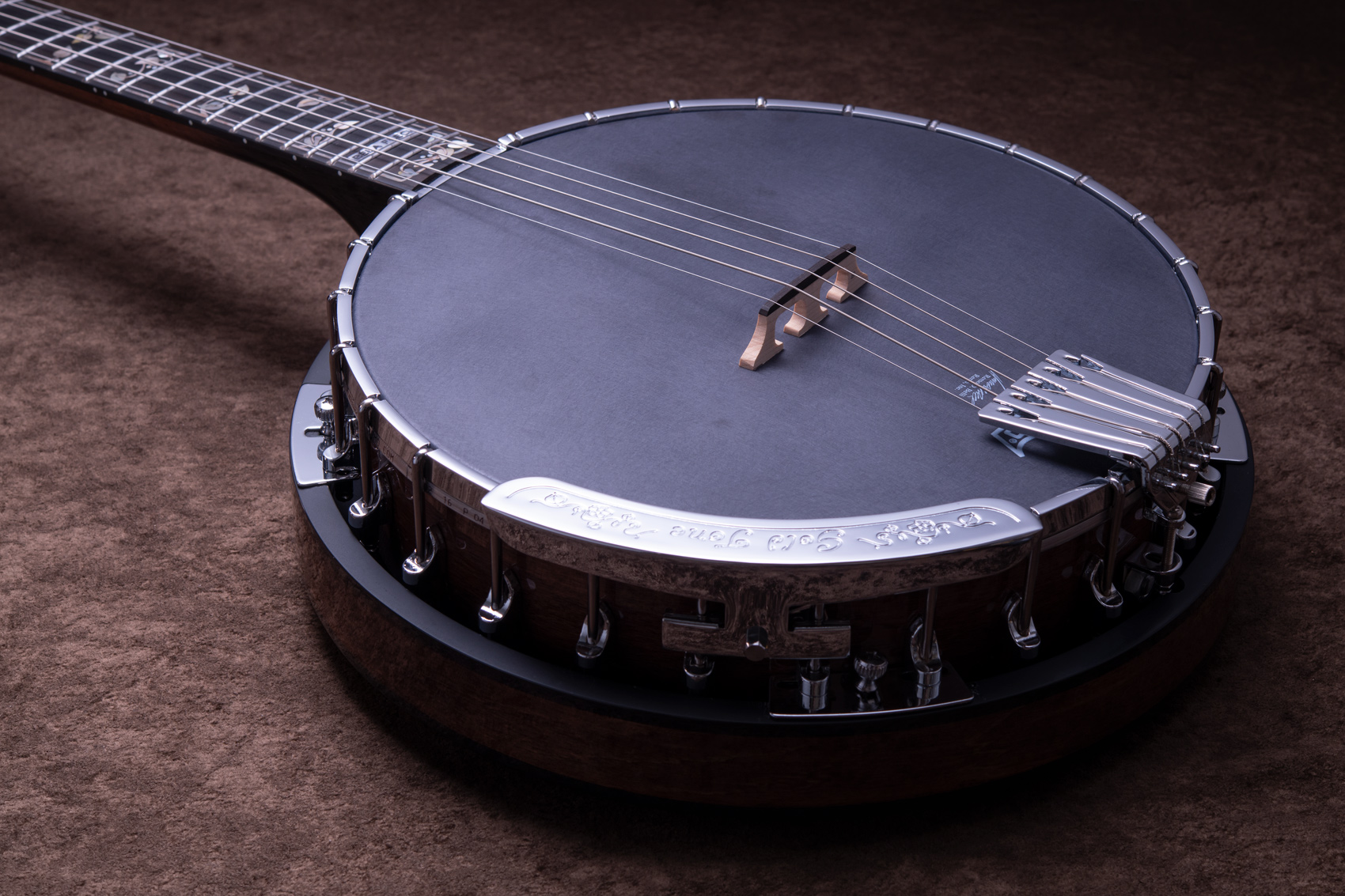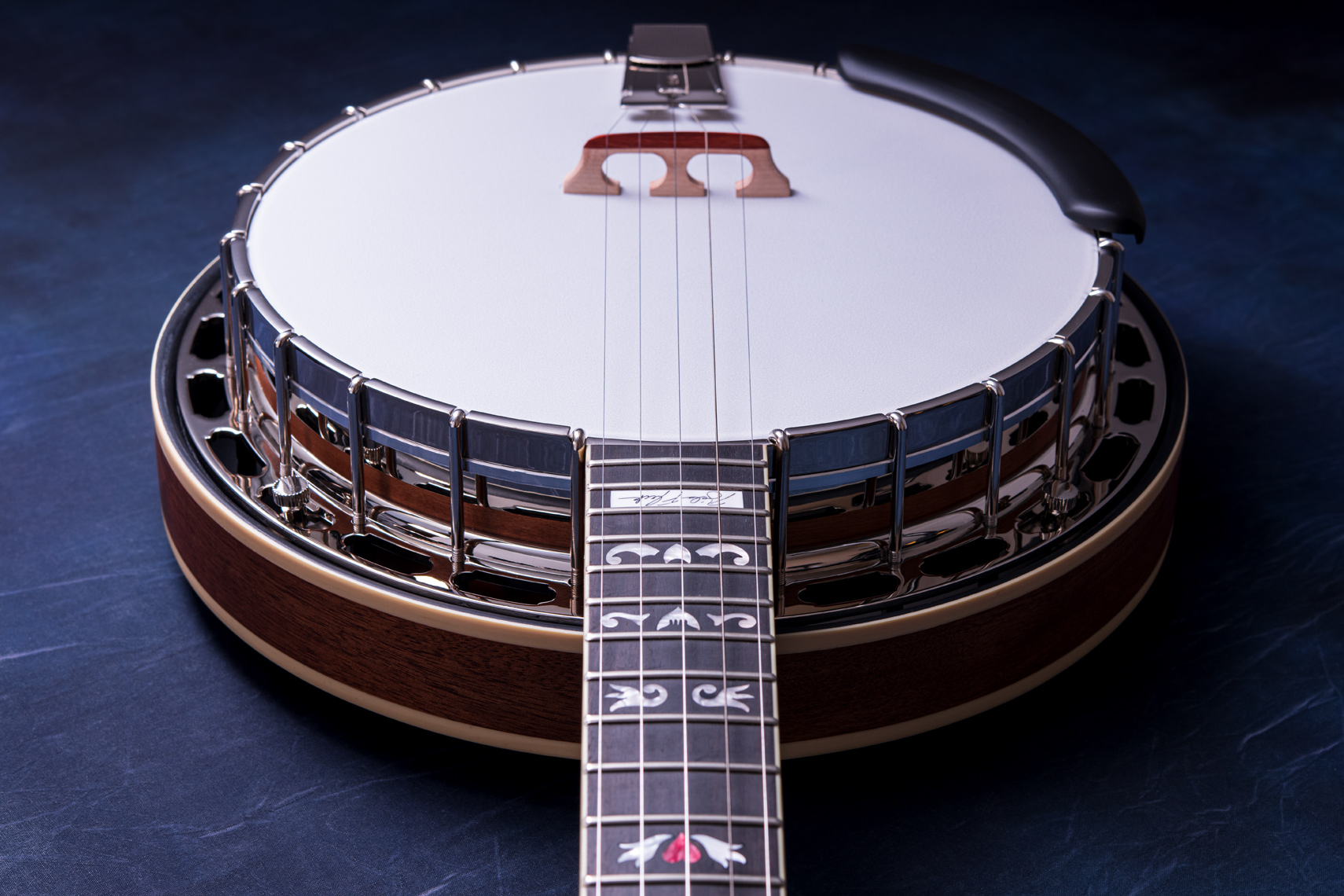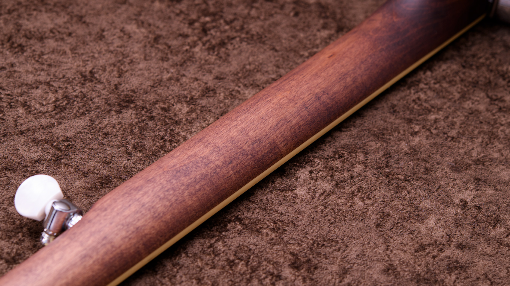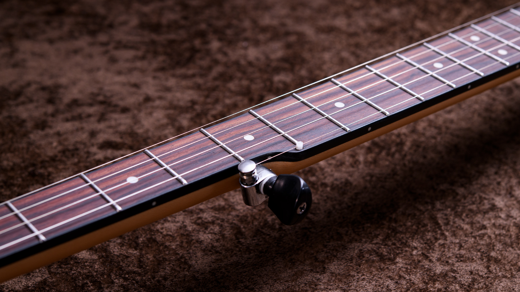 ペグには Rickard Cyclone チューナーがセレクトされており、10:1レシオの高精度なチューニングが可能です。ペグボタンは真鍮製になっており、ネック全体の重量を持たせることで独特の中低音と比較的ずっしりとした、あの独特なのサウンドを生み出しています。ネックの仕込み角度に至るまで、Bela のバンジョーを徹底的にセットアップに至るまで追求したプロフェッショナル仕様のバンジョーです。