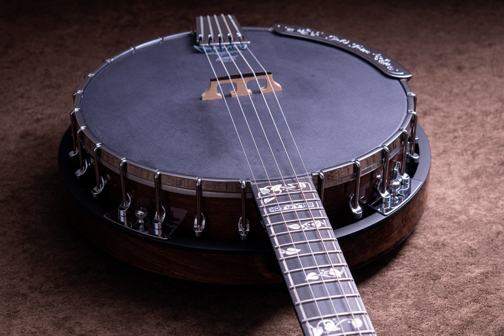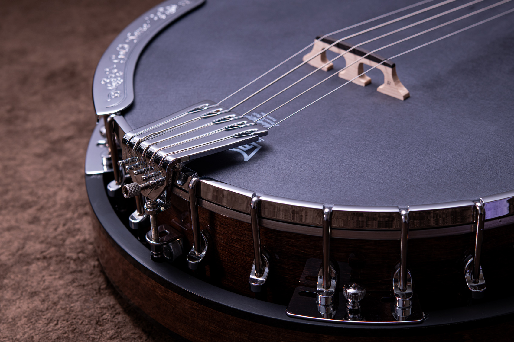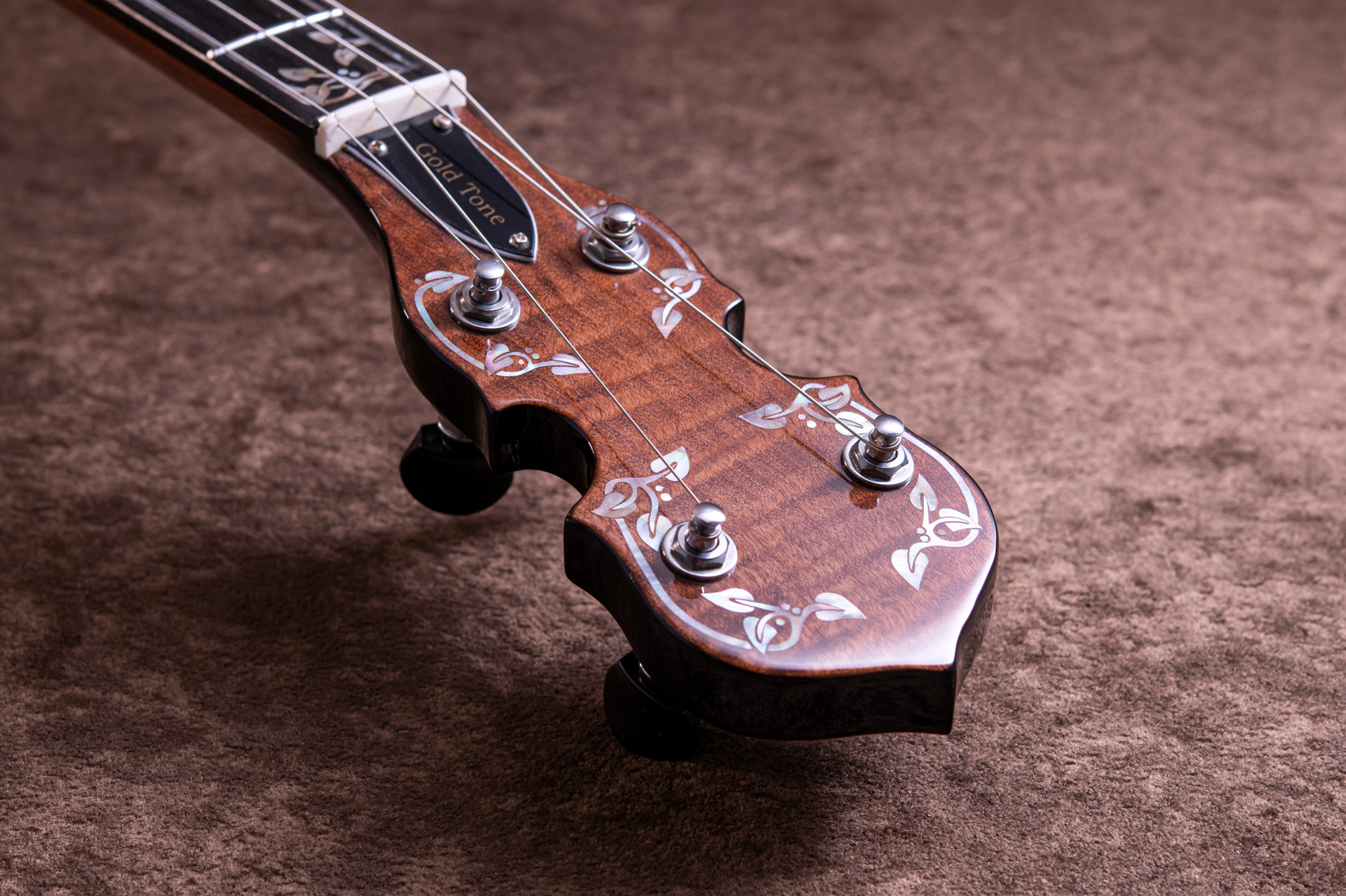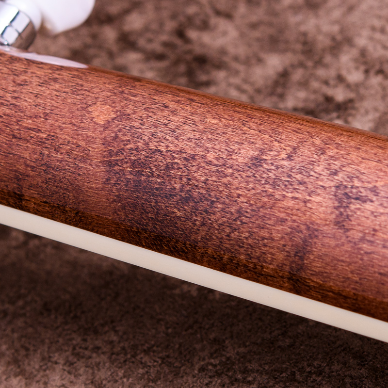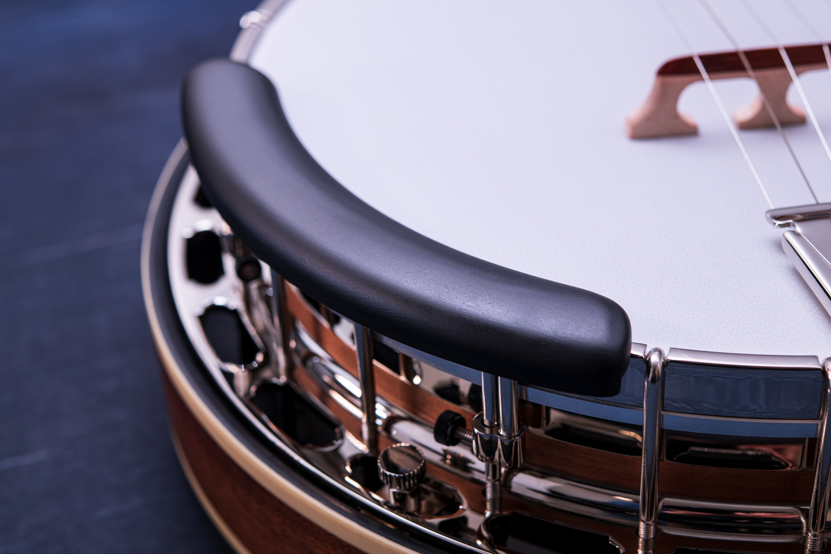 ペグには Rickard Cyclone チューナーがセレクトされており、10:1レシオの高精度なチューニングが可能です。ペグボタンは真鍮製になっており、ネック全体の重量を持たせることで独特の中低音と比較的ずっしりとした、あの独特なのサウンドを生み出しています。ネックの仕込み角度に至るまで、Bela のバンジョーを徹底的にセットアップに至るまで追求したプロフェッショナル仕様のバンジョーです。