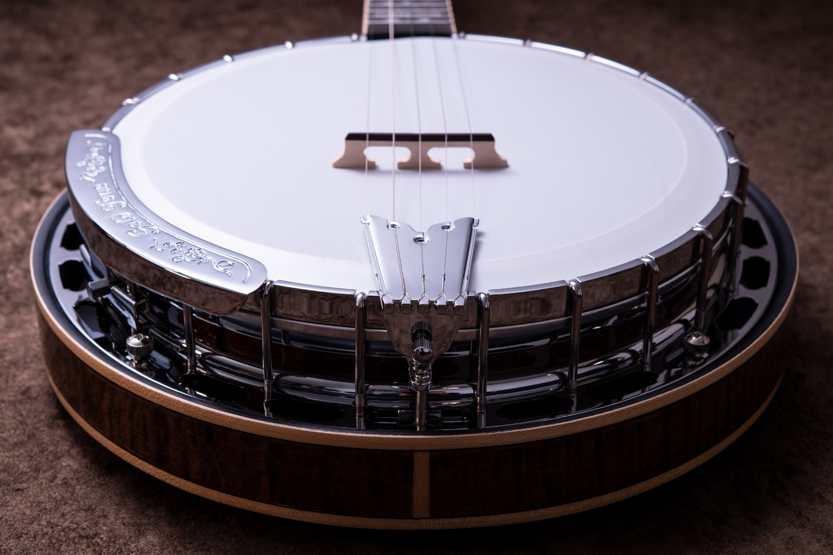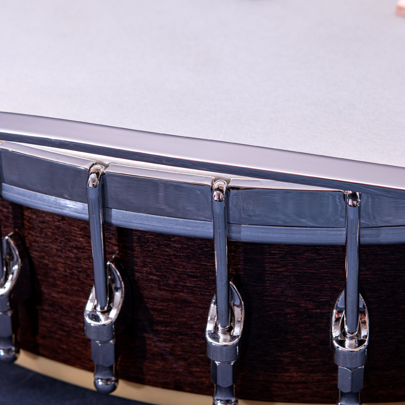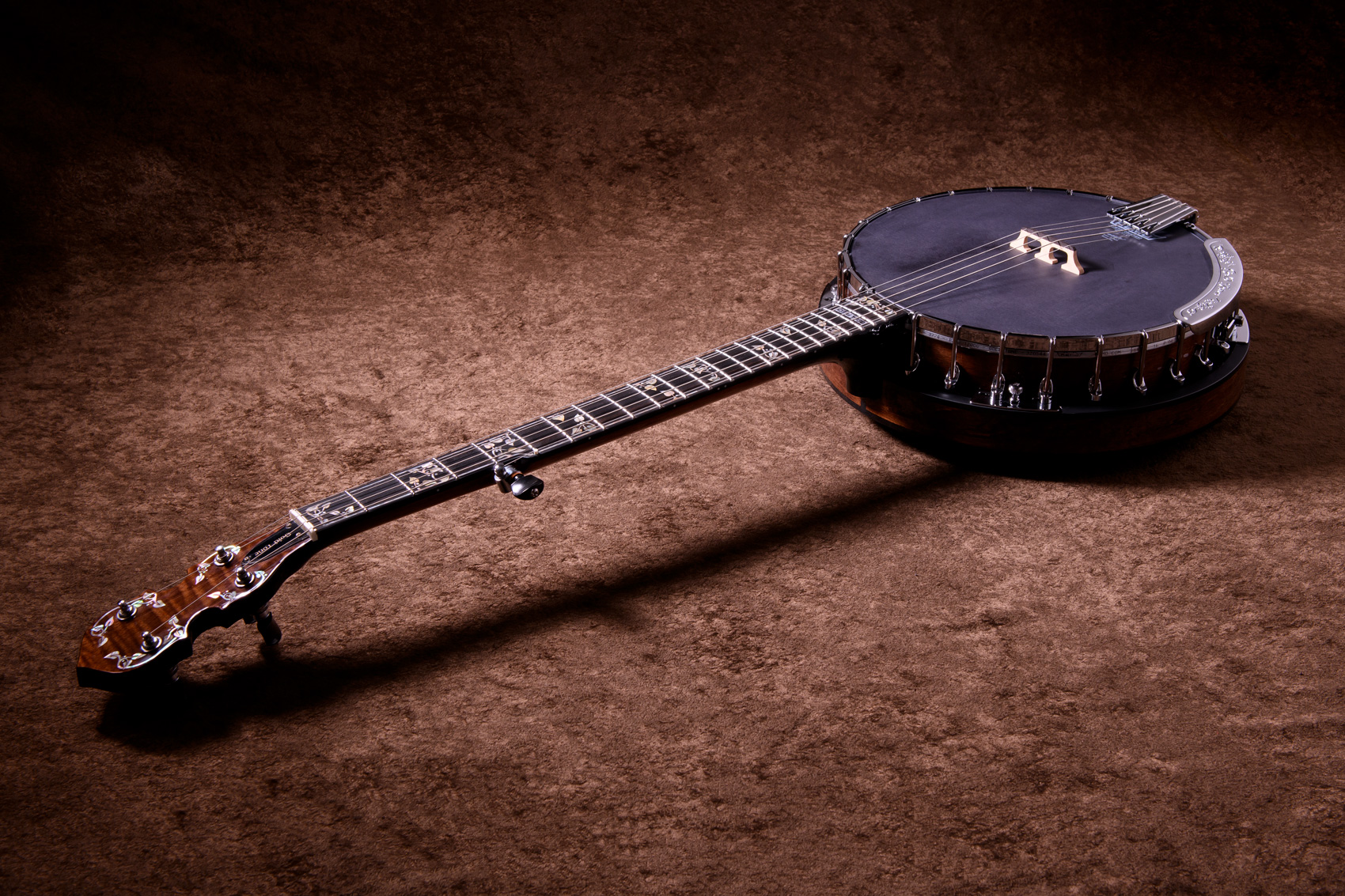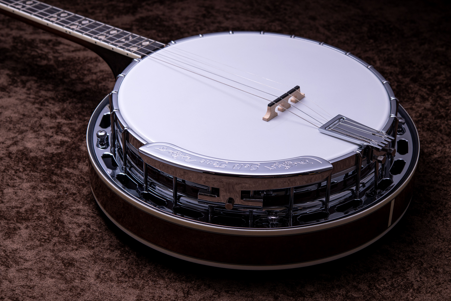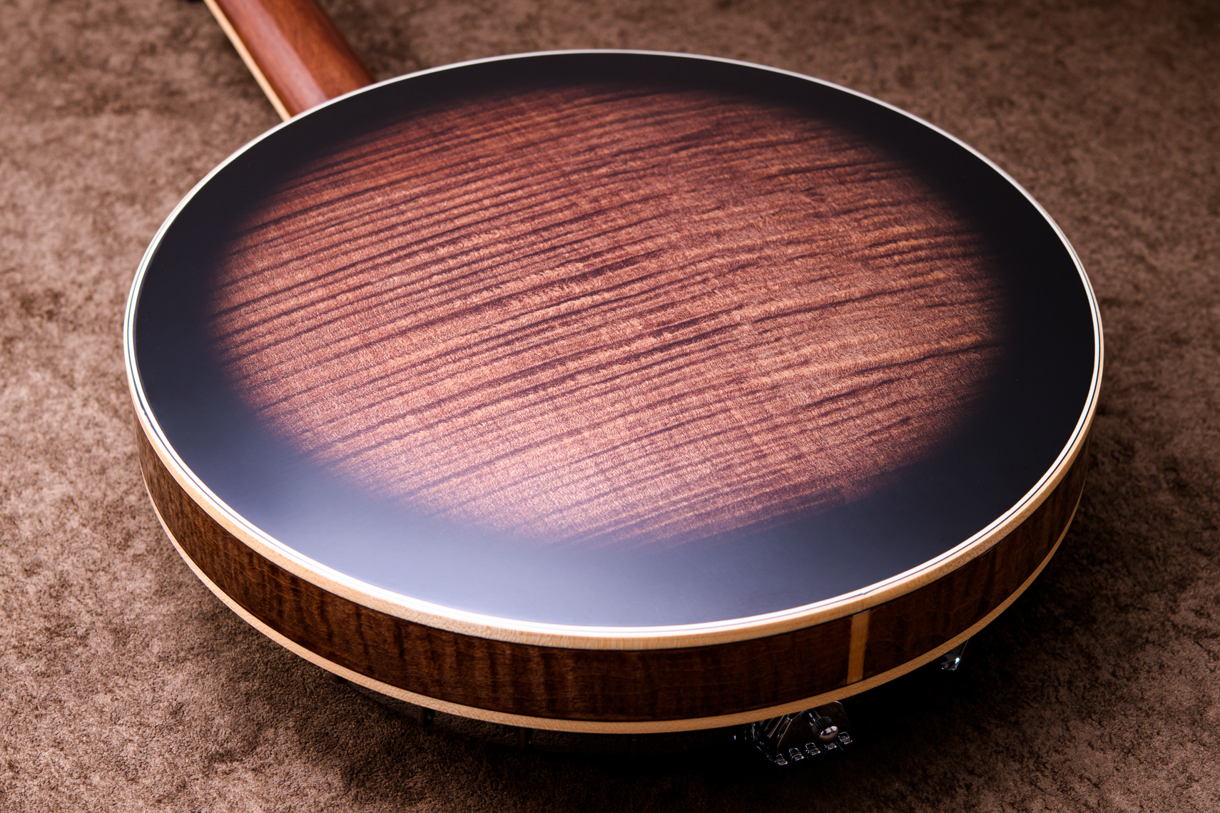 ペグには Rickard Cyclone チューナーがセレクトされており、10:1レシオの高精度なチューニングが可能です。ペグボタンは真鍮製になっており、ネック全体の重量を持たせることで独特の中低音と比較的ずっしりとした、あの独特なのサウンドを生み出しています。ネックの仕込み角度に至るまで、Bela のバンジョーを徹底的にセットアップに至るまで追求したプロフェッショナル仕様のバンジョーです。