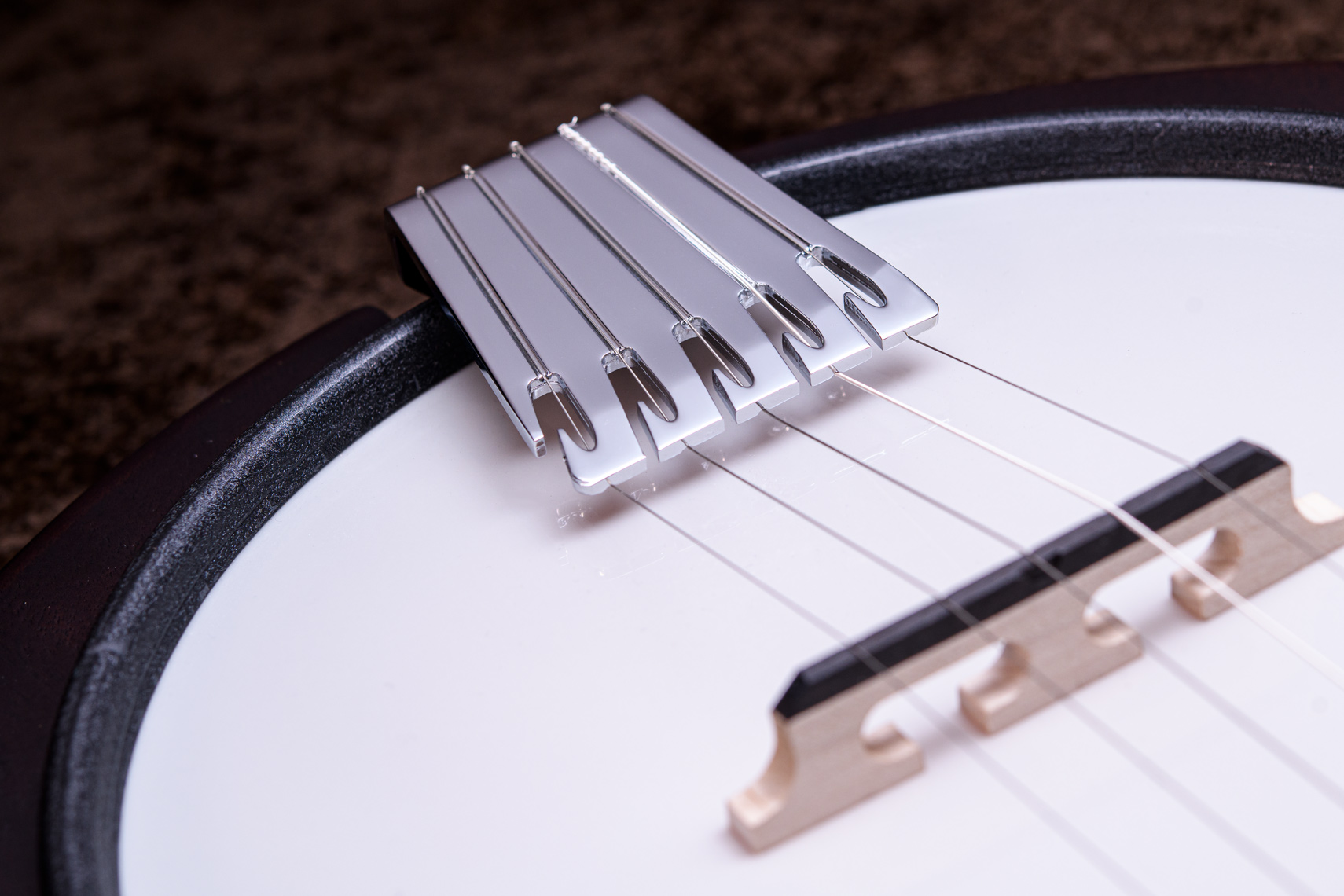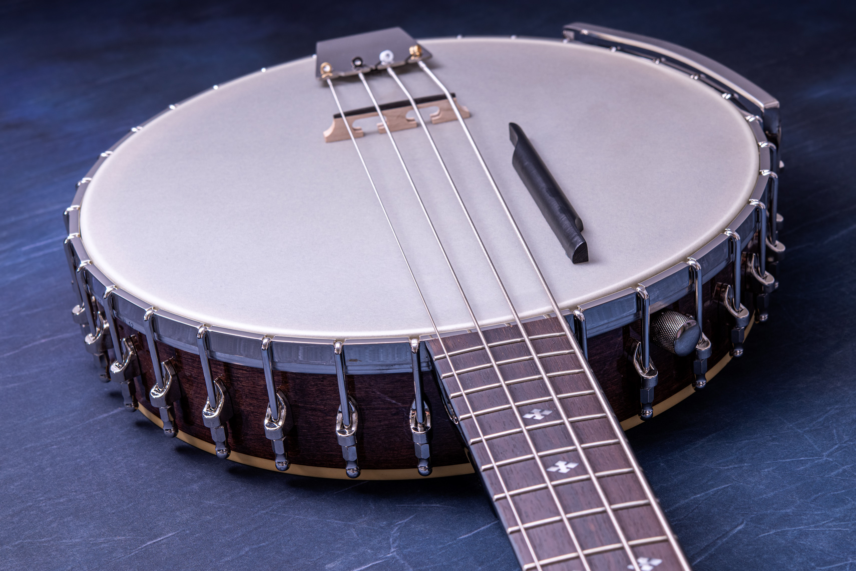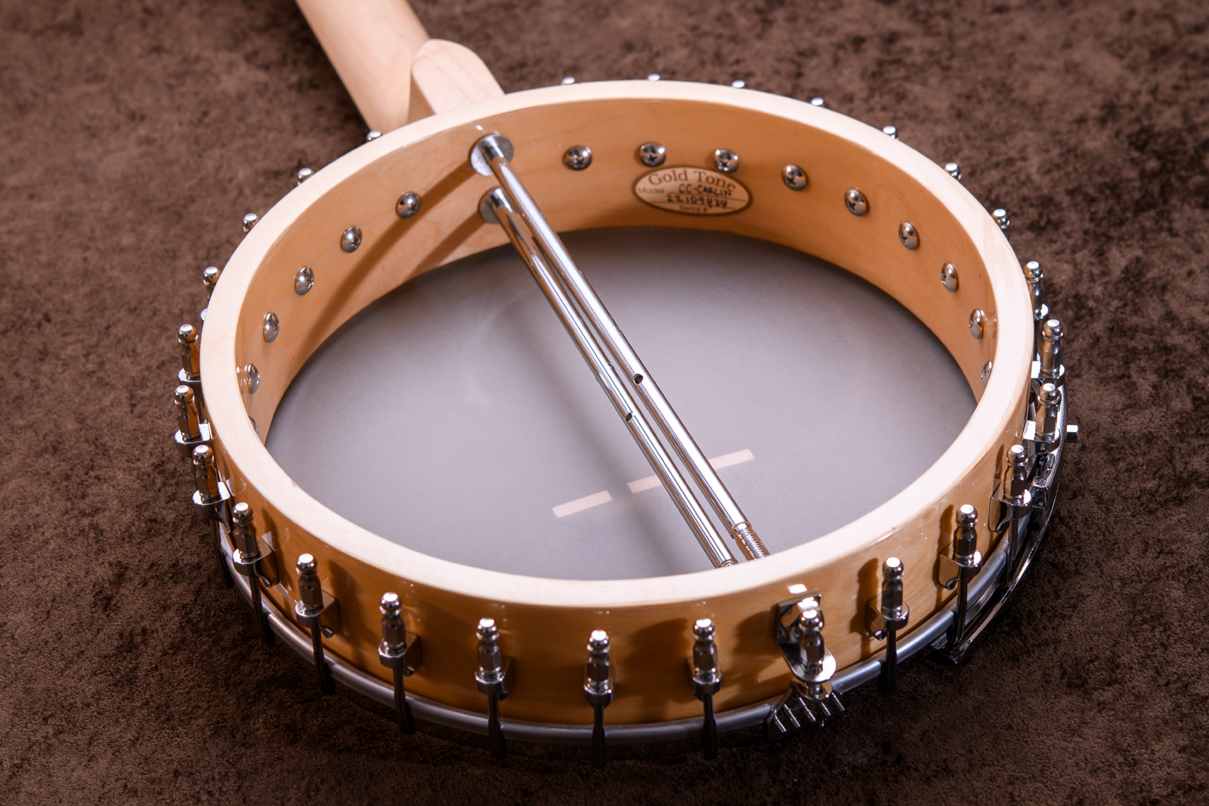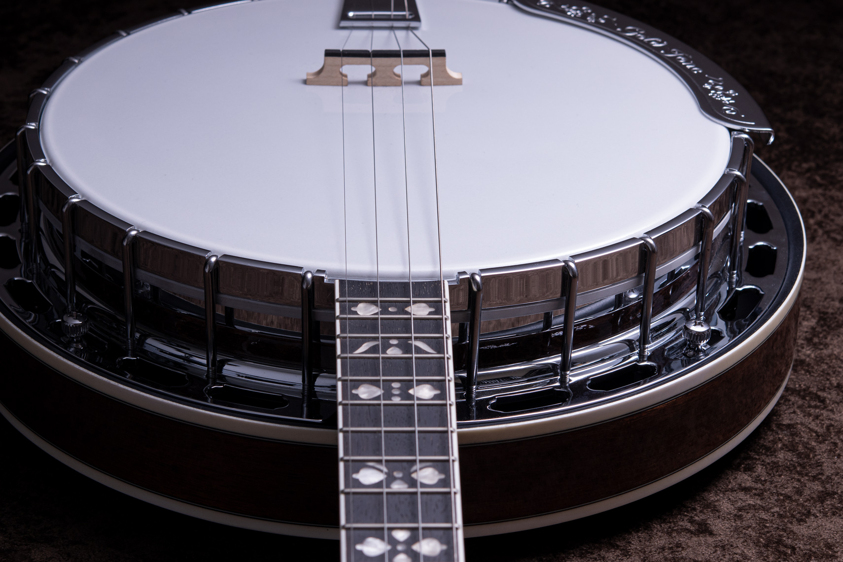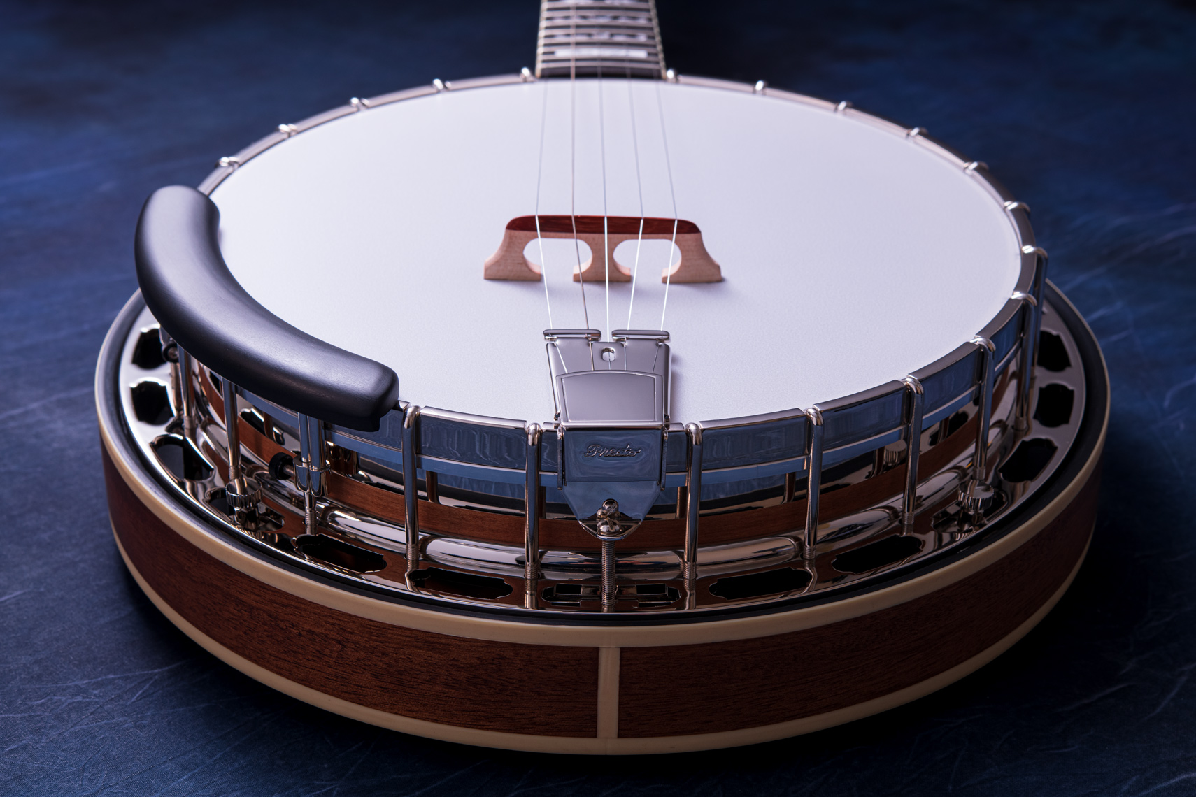 ペグには Rickard Cyclone チューナーがセレクトされており、10:1レシオの高精度なチューニングが可能です。ペグボタンは真鍮製になっており、ネック全体の重量を持たせることで独特の中低音と比較的ずっしりとした、あの独特なのサウンドを生み出しています。ネックの仕込み角度に至るまで、Bela のバンジョーを徹底的にセットアップに至るまで追求したプロフェッショナル仕様のバンジョーです。