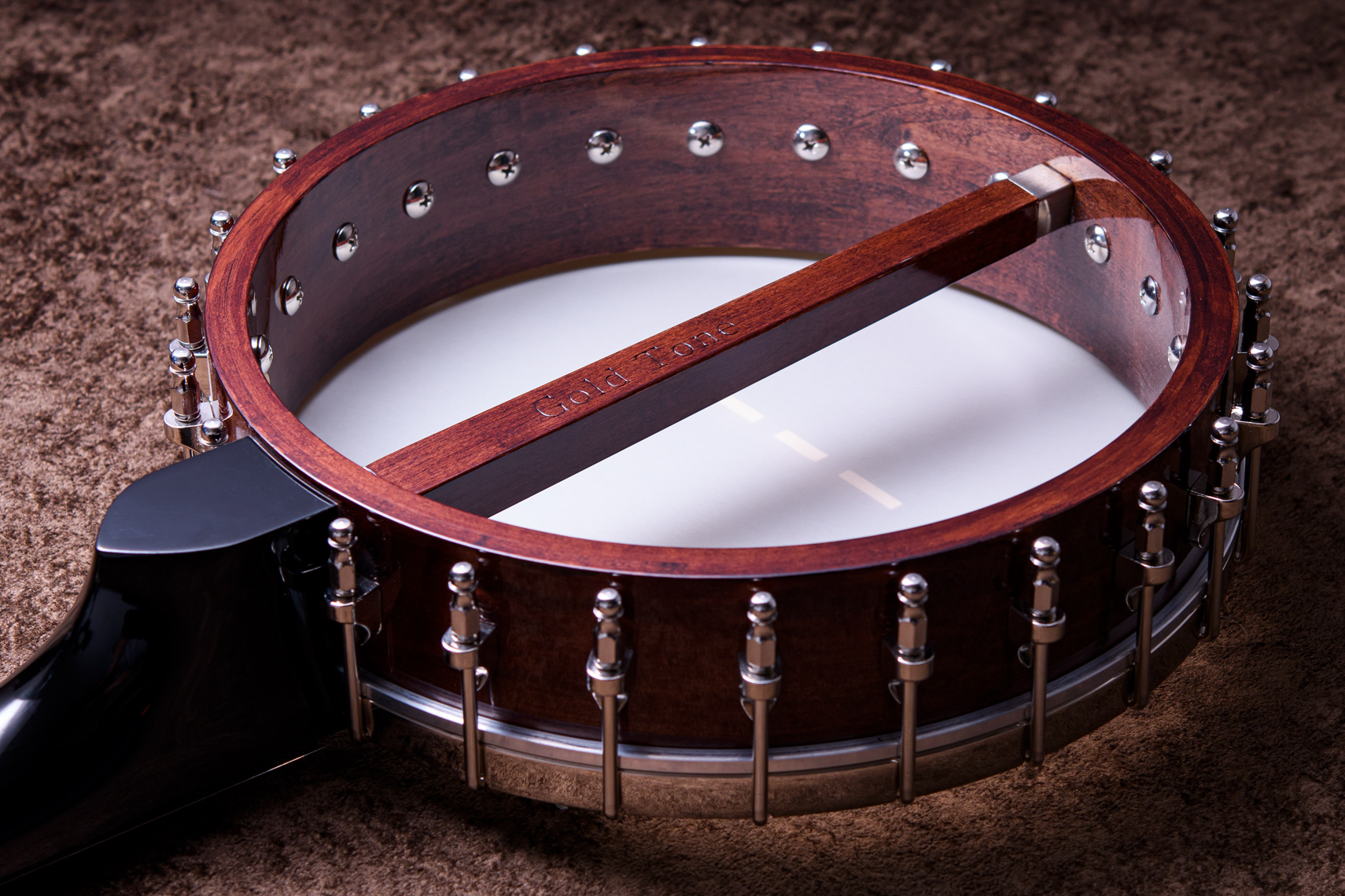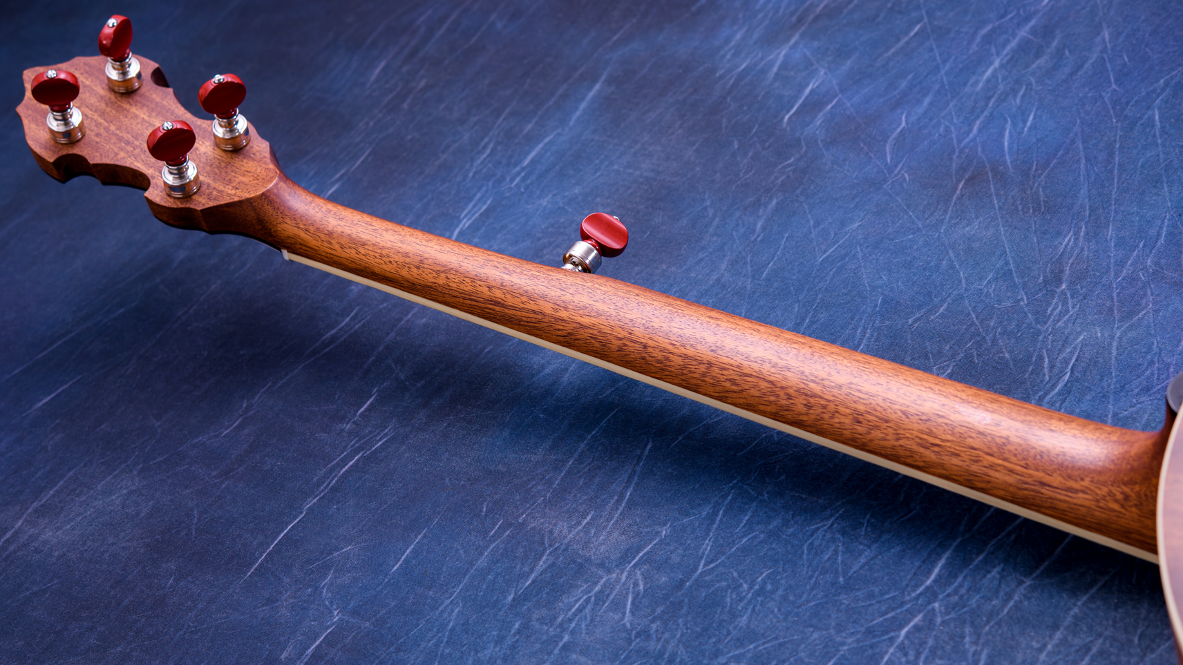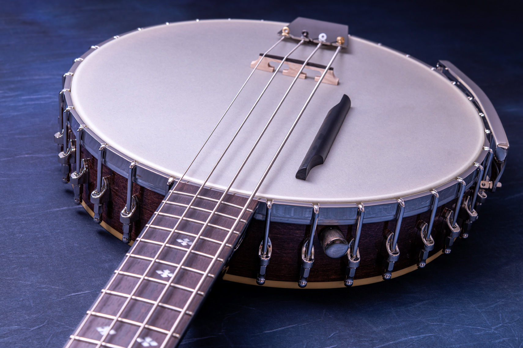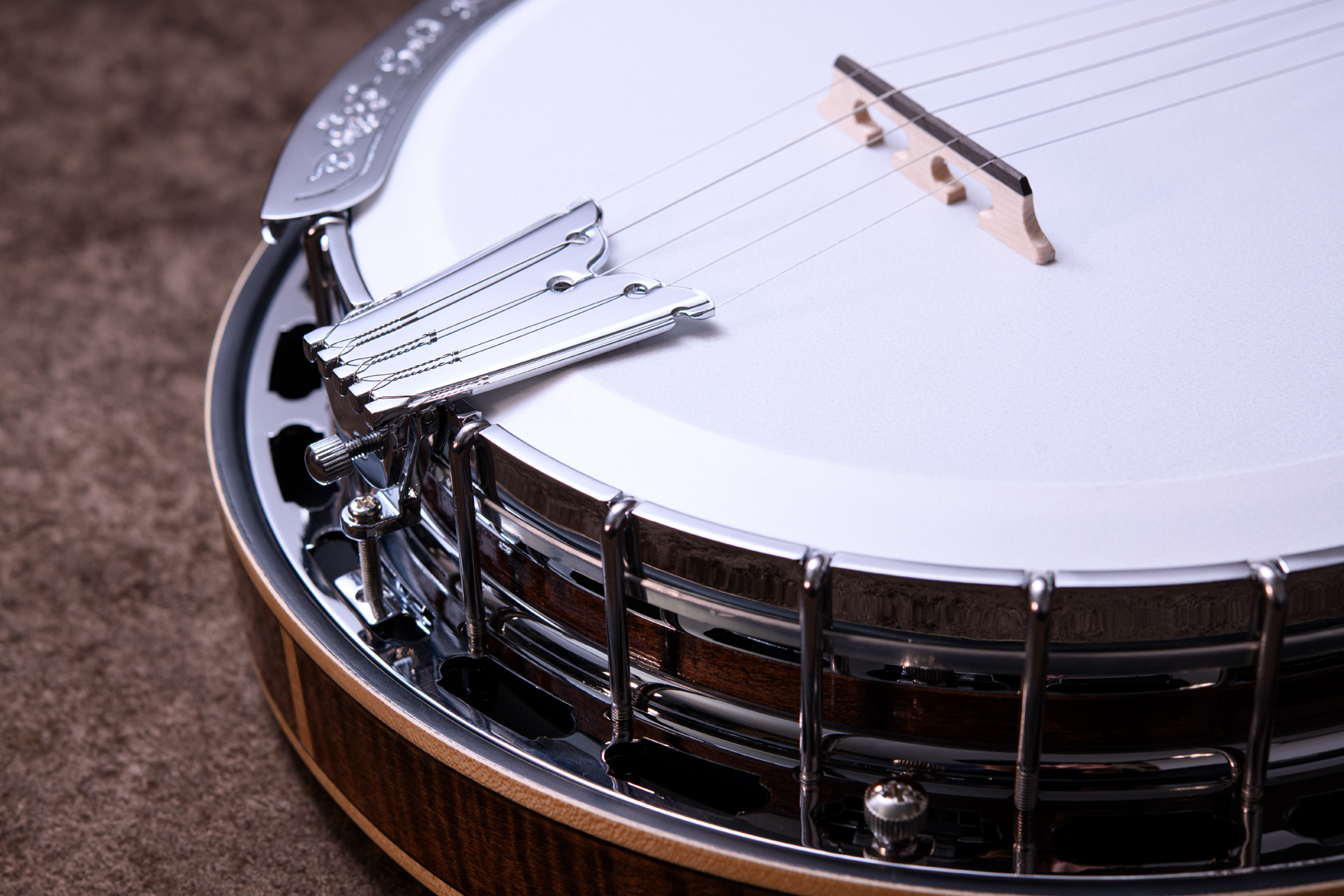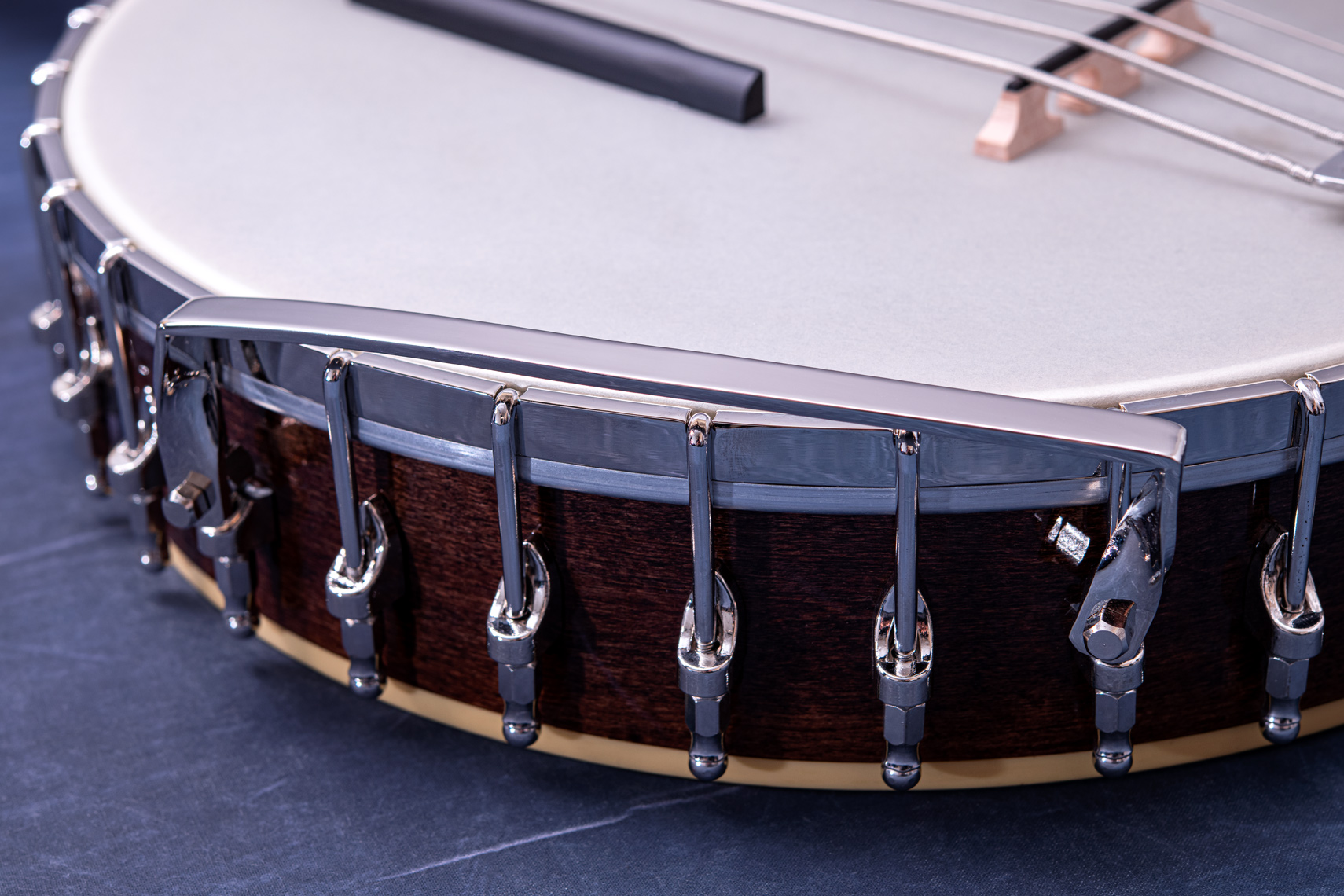ペグには Rickard Cyclone チューナーがセレクトされており、10:1レシオの高精度なチューニングが可能です。ペグボタンは真鍮製になっており、ネック全体の重量を持たせることで独特の中低音と比較的ずっしりとした、あの独特なのサウンドを生み出しています。ネックの仕込み角度に至るまで、Bela のバンジョーを徹底的にセットアップに至るまで追求したプロフェッショナル仕様のバンジョーです。