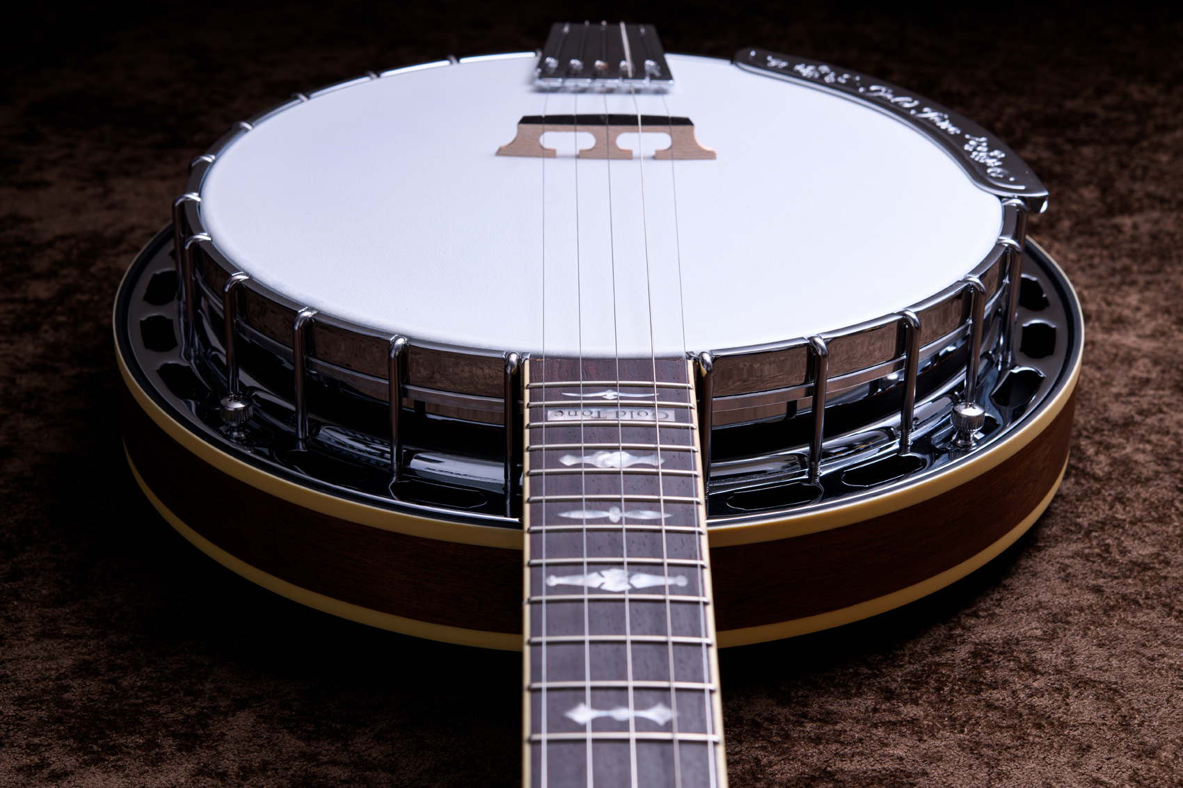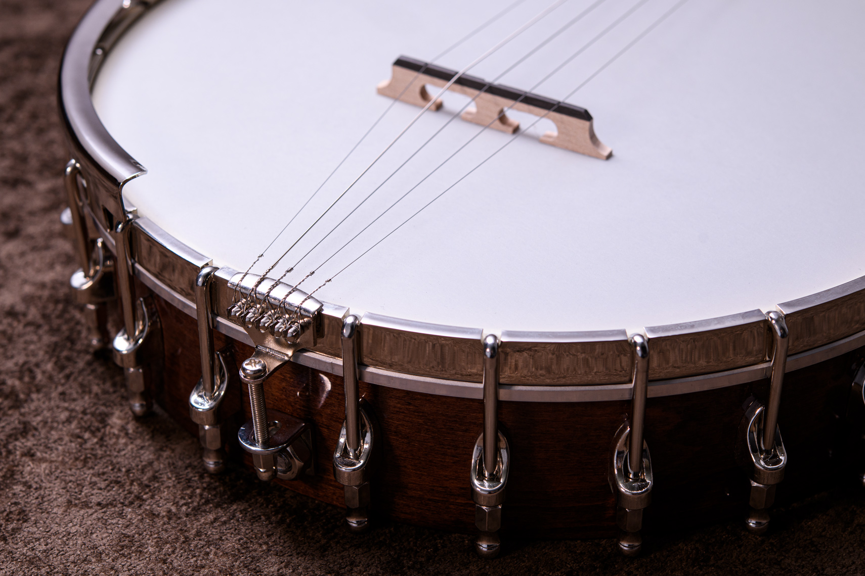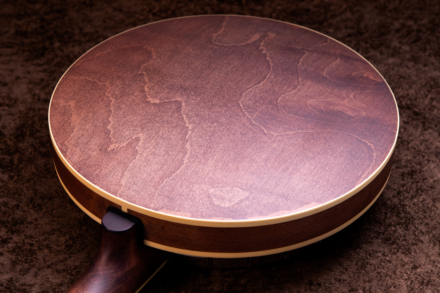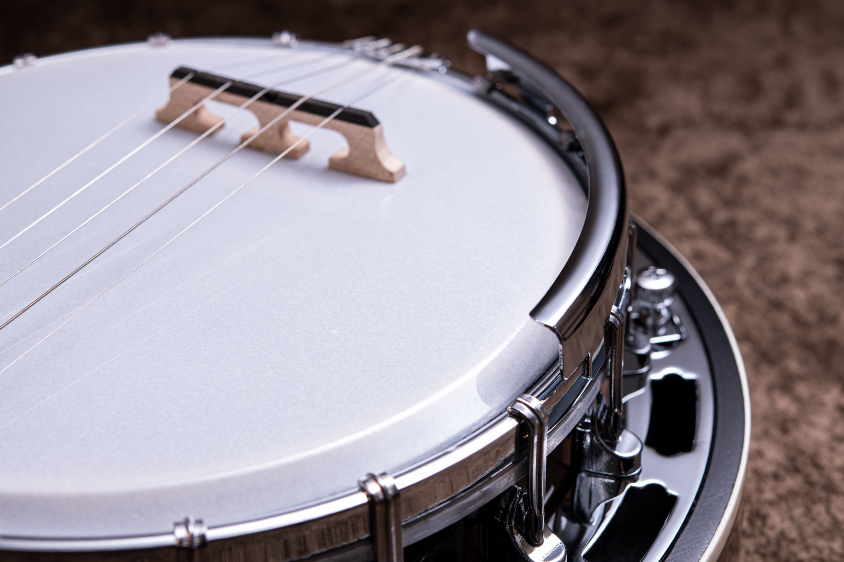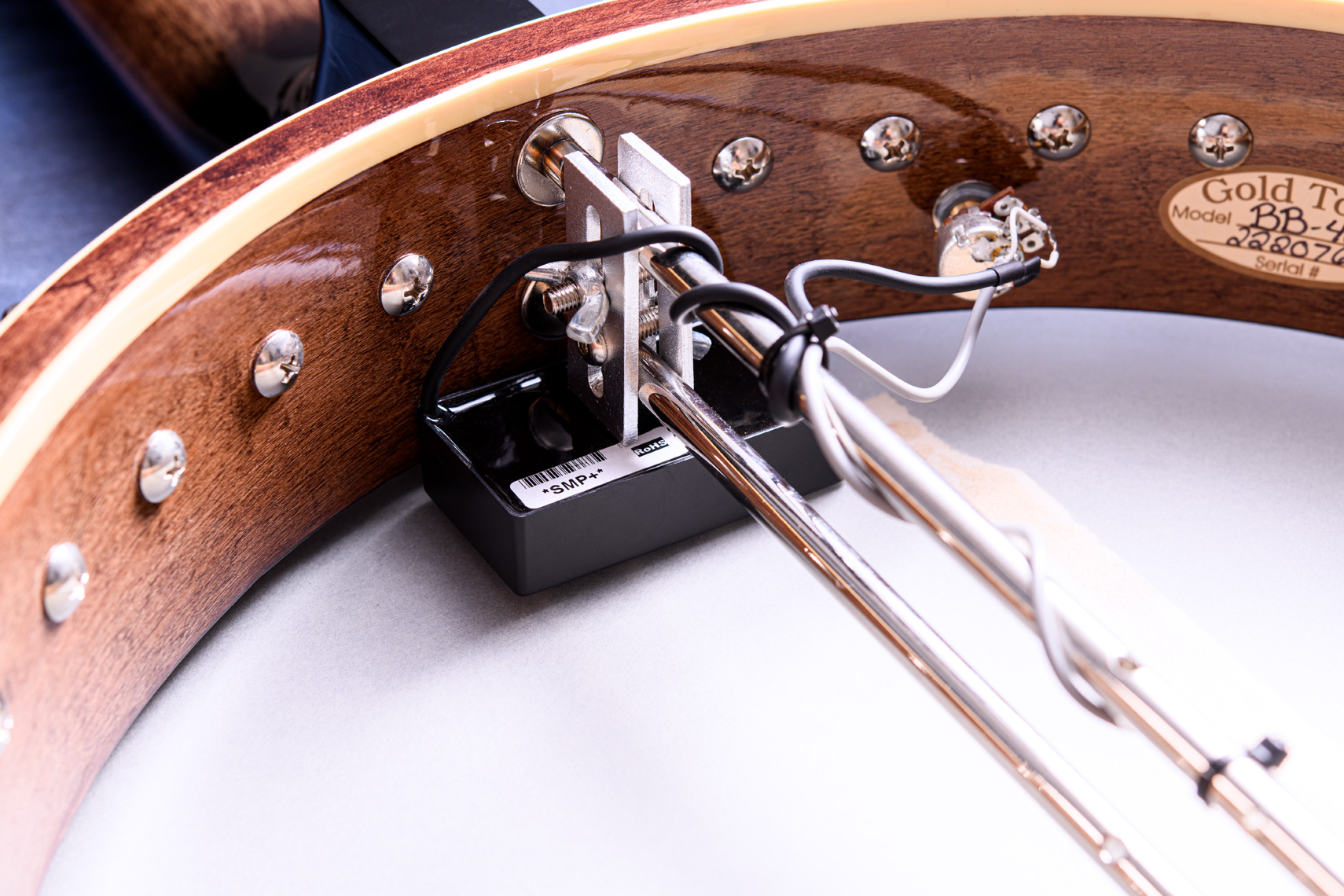 ペグには Rickard Cyclone チューナーがセレクトされており、10:1レシオの高精度なチューニングが可能です。ペグボタンは真鍮製になっており、ネック全体の重量を持たせることで独特の中低音と比較的ずっしりとした、あの独特なのサウンドを生み出しています。ネックの仕込み角度に至るまで、Bela のバンジョーを徹底的にセットアップに至るまで追求したプロフェッショナル仕様のバンジョーです。