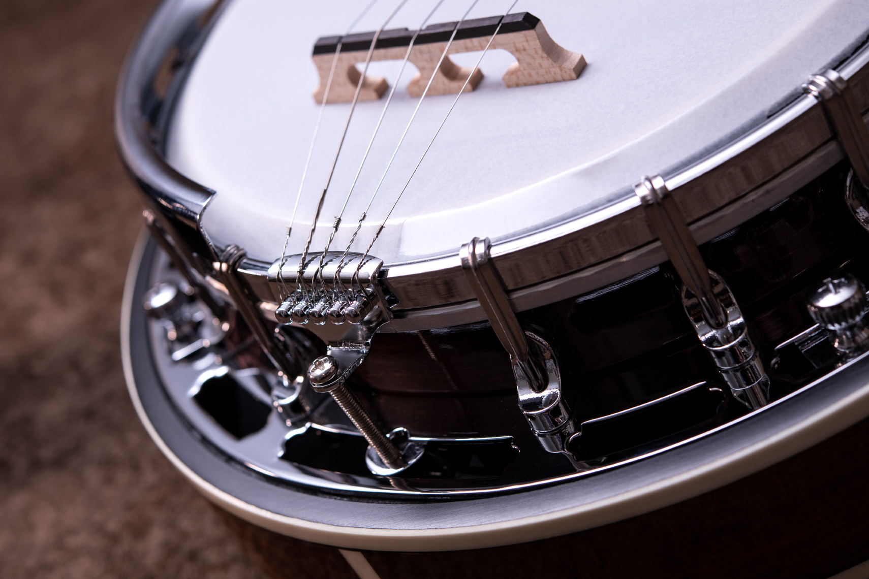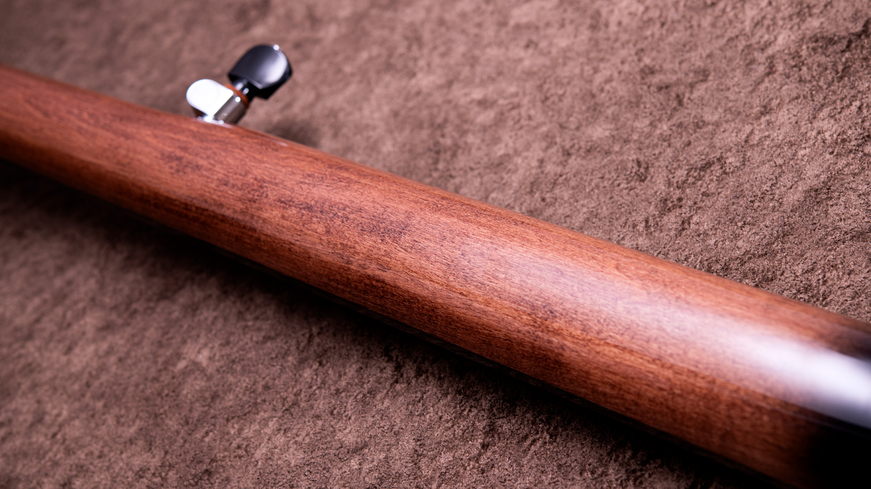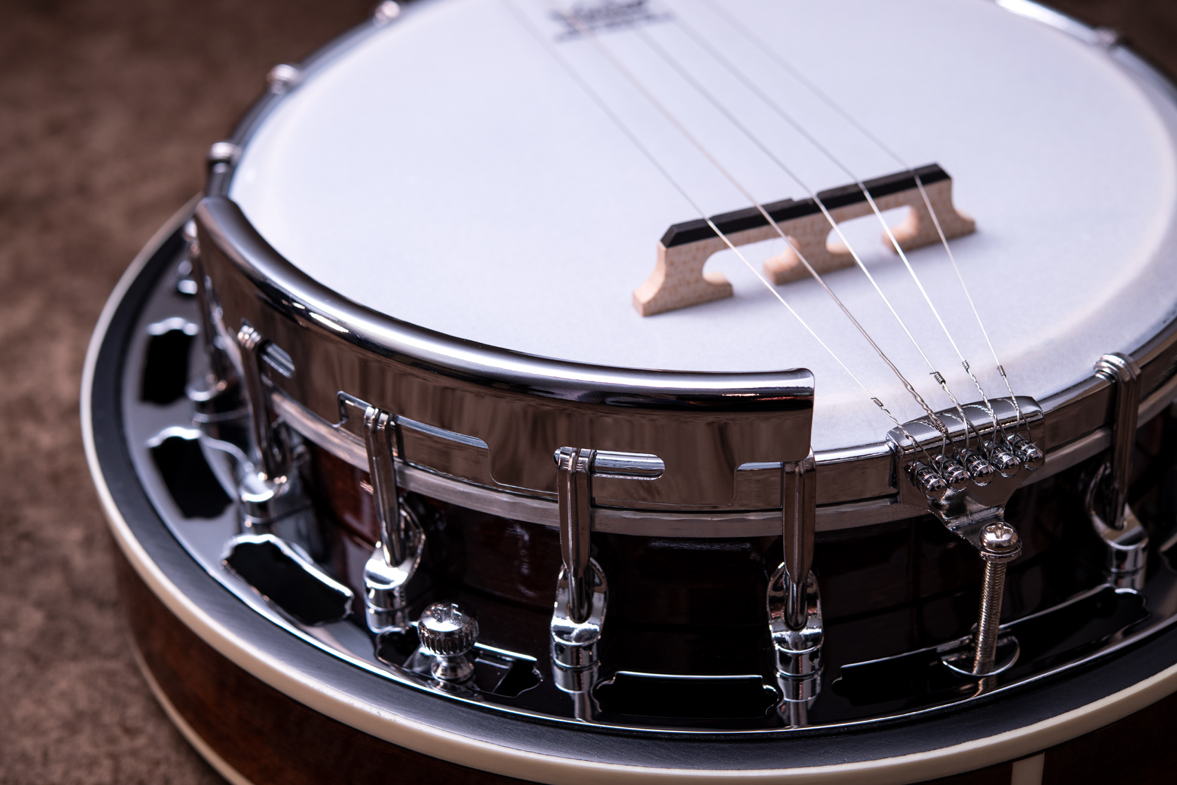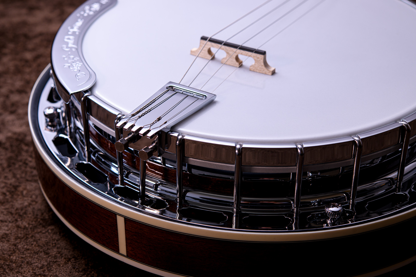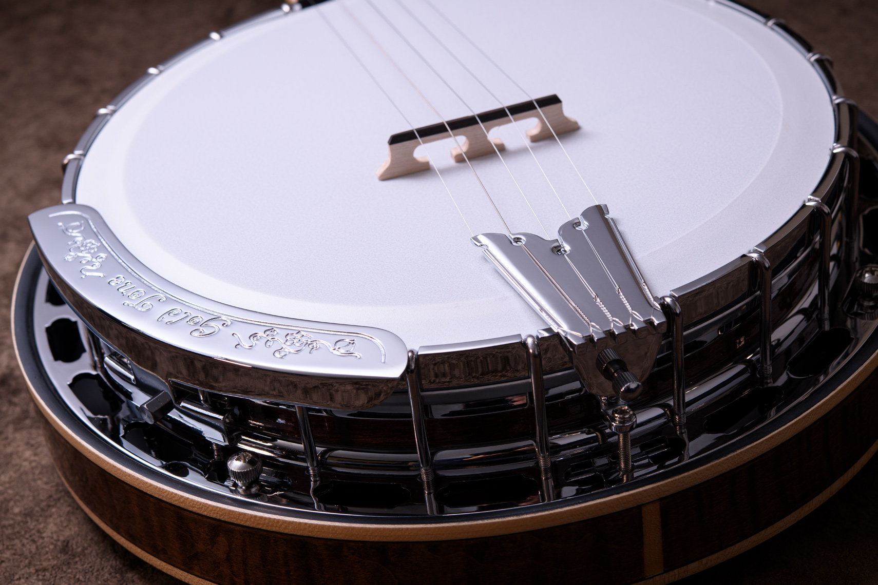 ペグには Rickard Cyclone チューナーがセレクトされており、10:1レシオの高精度なチューニングが可能です。ペグボタンは真鍮製になっており、ネック全体の重量を持たせることで独特の中低音と比較的ずっしりとした、あの独特なのサウンドを生み出しています。ネックの仕込み角度に至るまで、Bela のバンジョーを徹底的にセットアップに至るまで追求したプロフェッショナル仕様のバンジョーです。