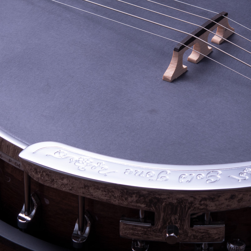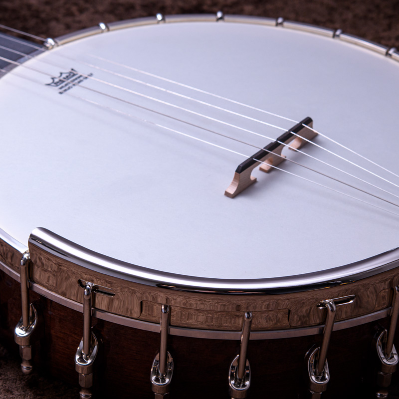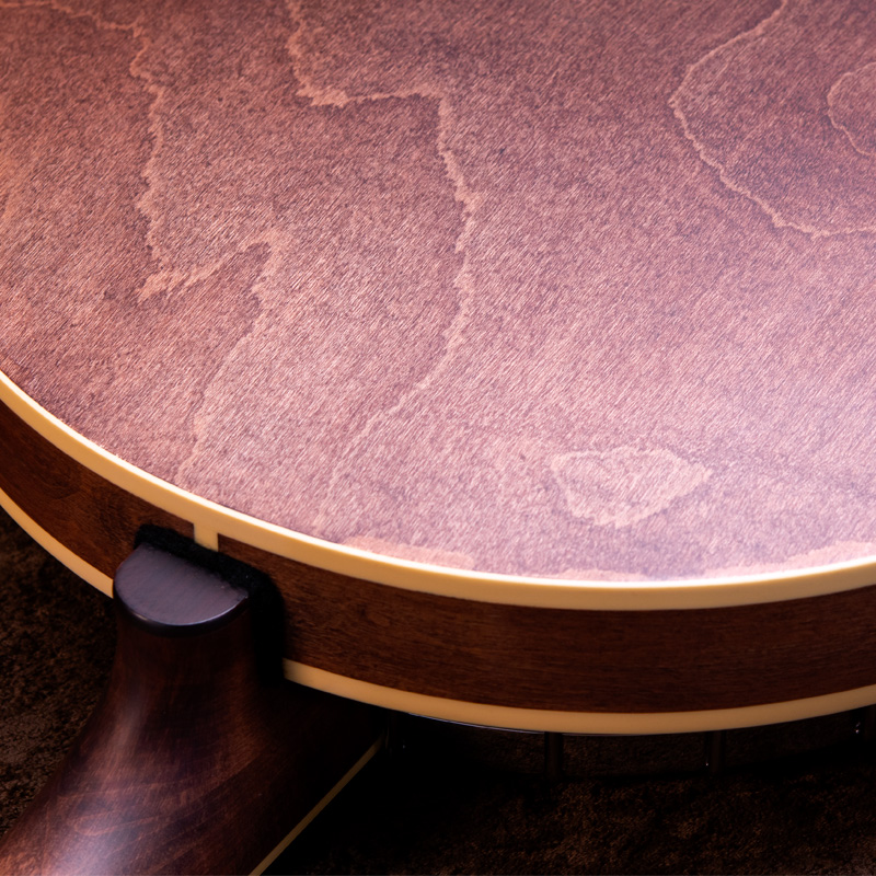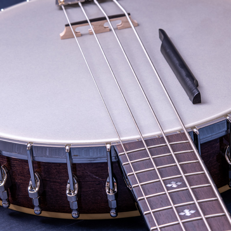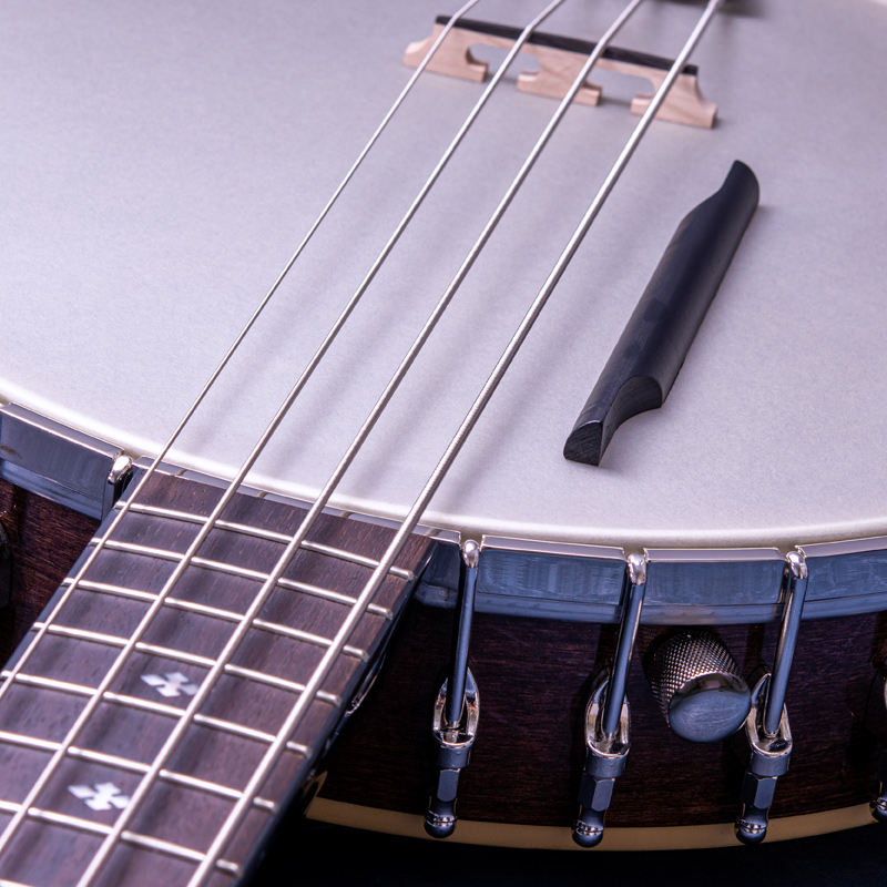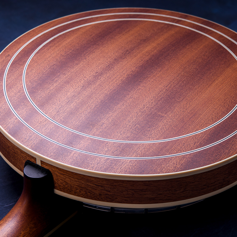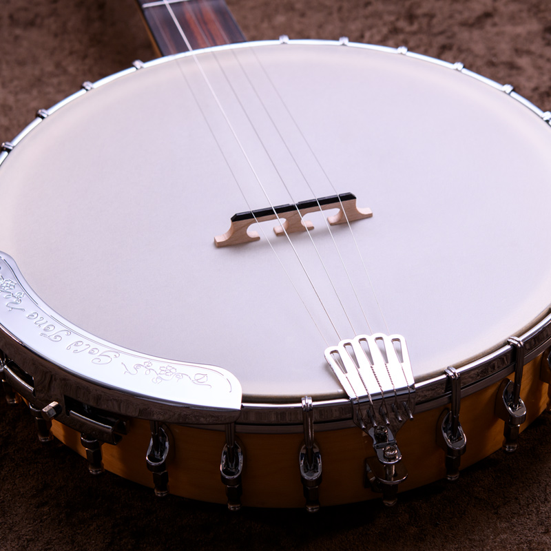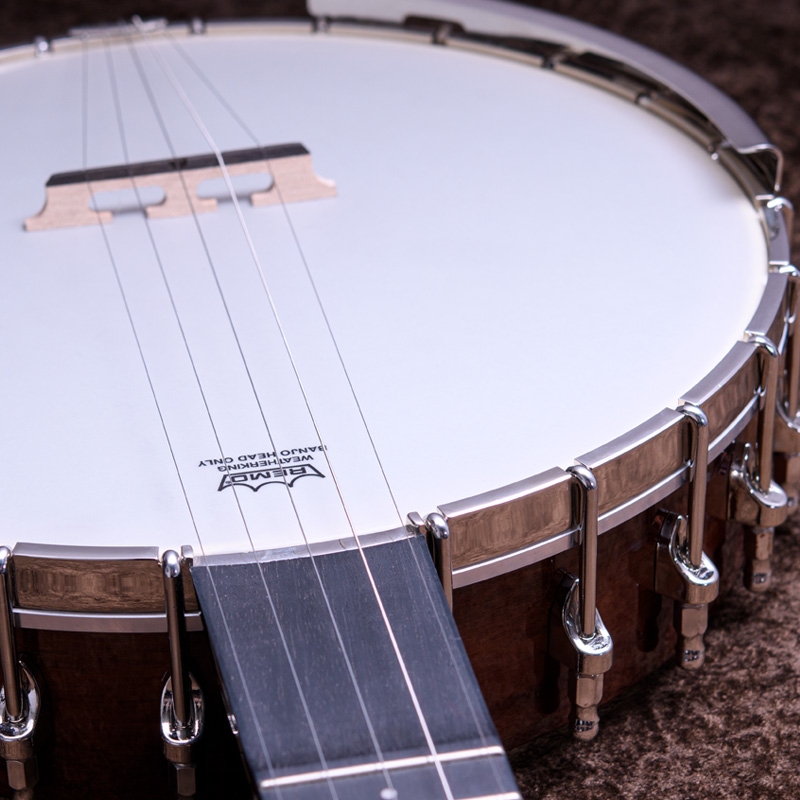 カナディアンハードメイプルネック、ポット部分は3プライリム&ブラス製チューブスタイルトーンリングとなっており、やや大きいバンジョーですが、取り回しは快適でバランス感もよく考えられていると思います。コンテンポラリーなスタイルはもちろん、オールドタイム系の演奏にもオススメの1本!ひと味違うサウンドをお探しのバンジョープレイヤーの皆様、一度手に取ってみてはいかがでしょうか。