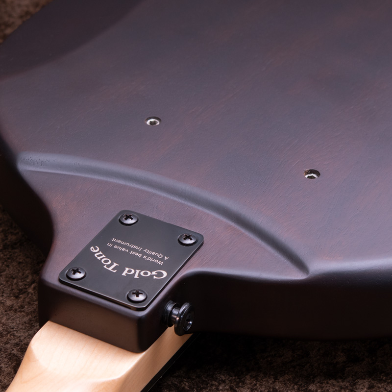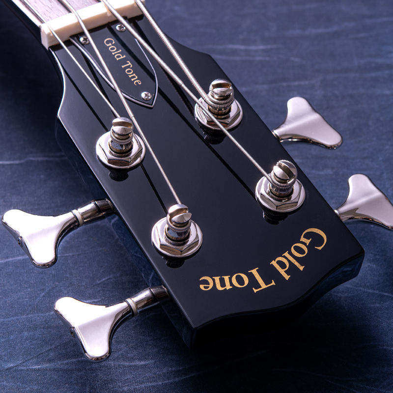 14インチものヘッド径をもつ Goldtone バンジョーシリーズでもド級の存在感の Banjo Bass。この構造による豊かな音量と温かみのある独特のサウンドが特徴的で、アコースティックベースの1つの選択肢として抜群の存在感と意外にも使い勝手の良さを併せ持った楽器だと思います。32インチスケール、ナット幅約44.4mm&スリムなネックシェイプで演奏性も良好です。ハムバッカータイプの Gold Tone SMP+ ピックアップによる、素直な印象のラインサウンドでライブやレコーディングにおいても実用も抜群だと思います。