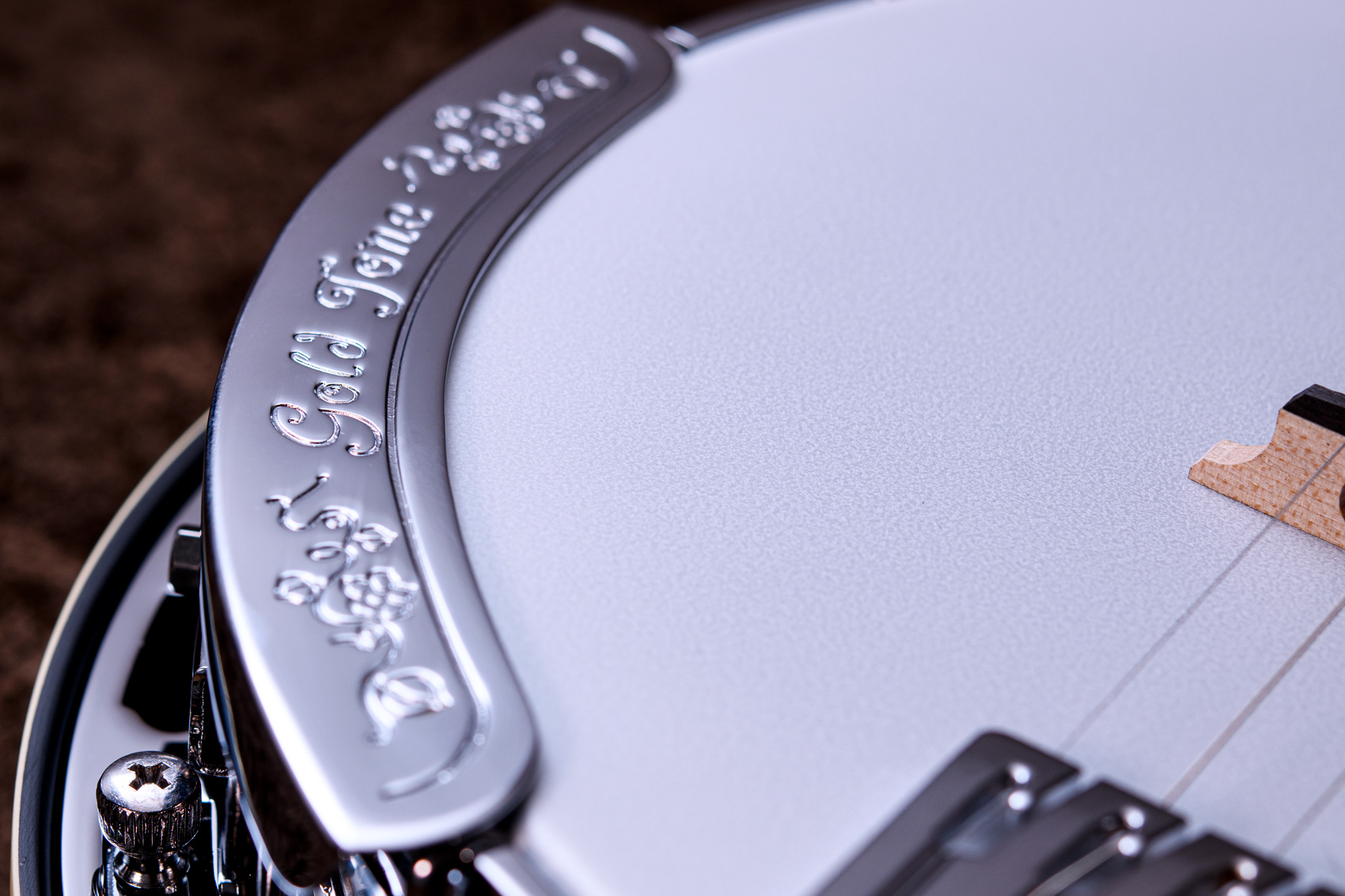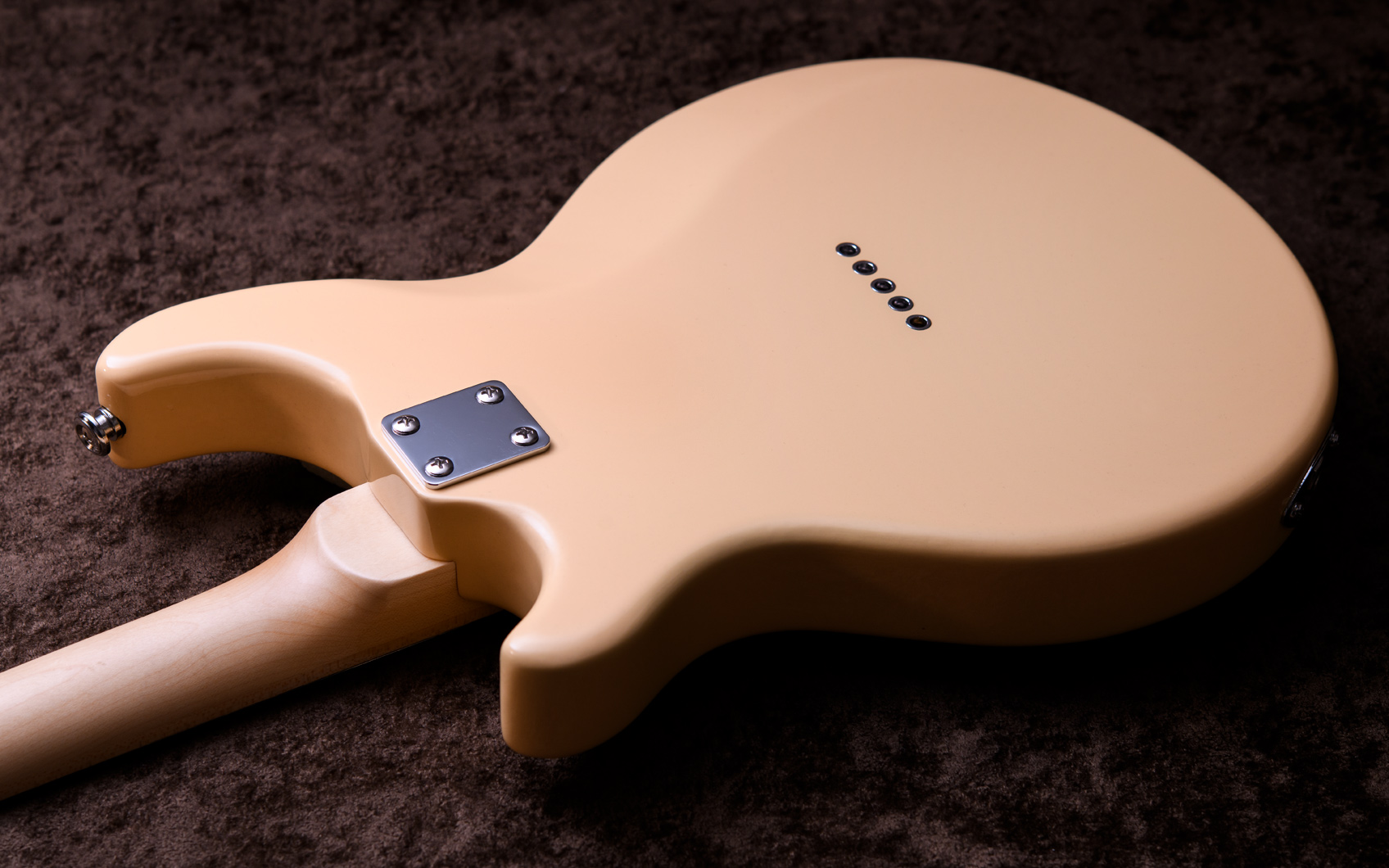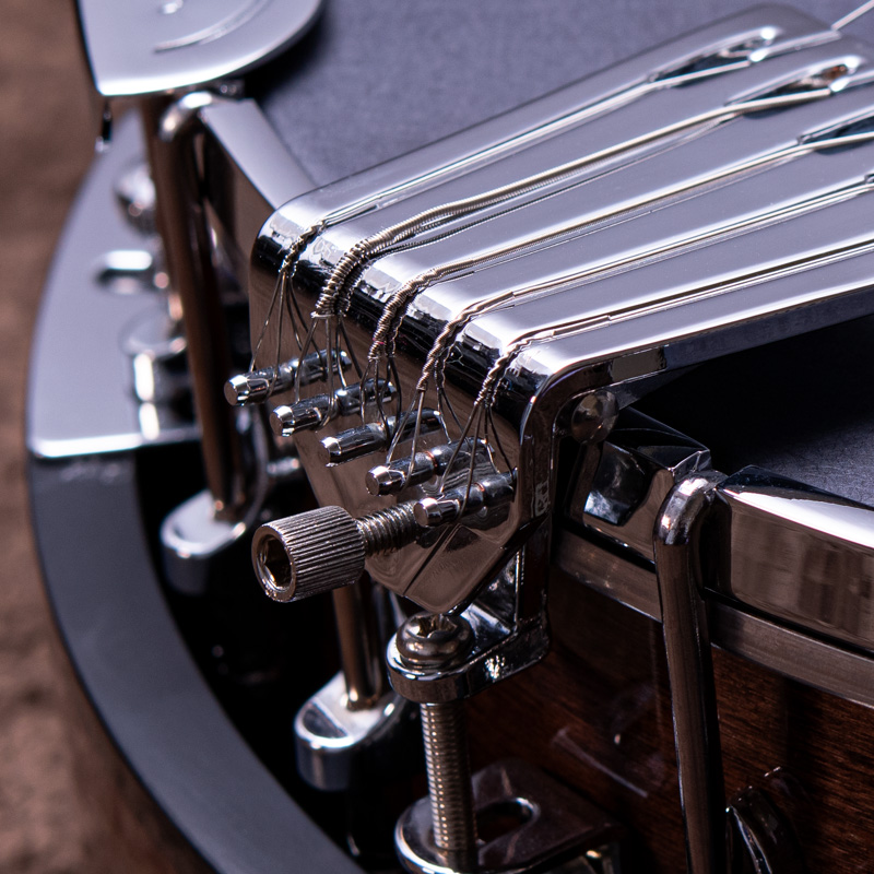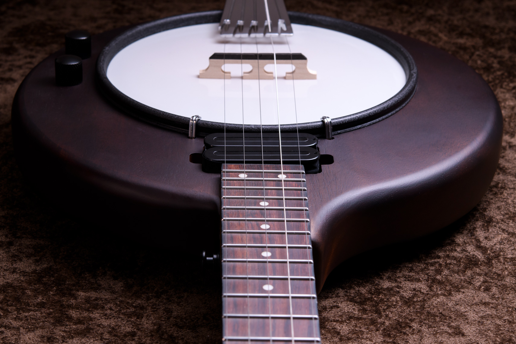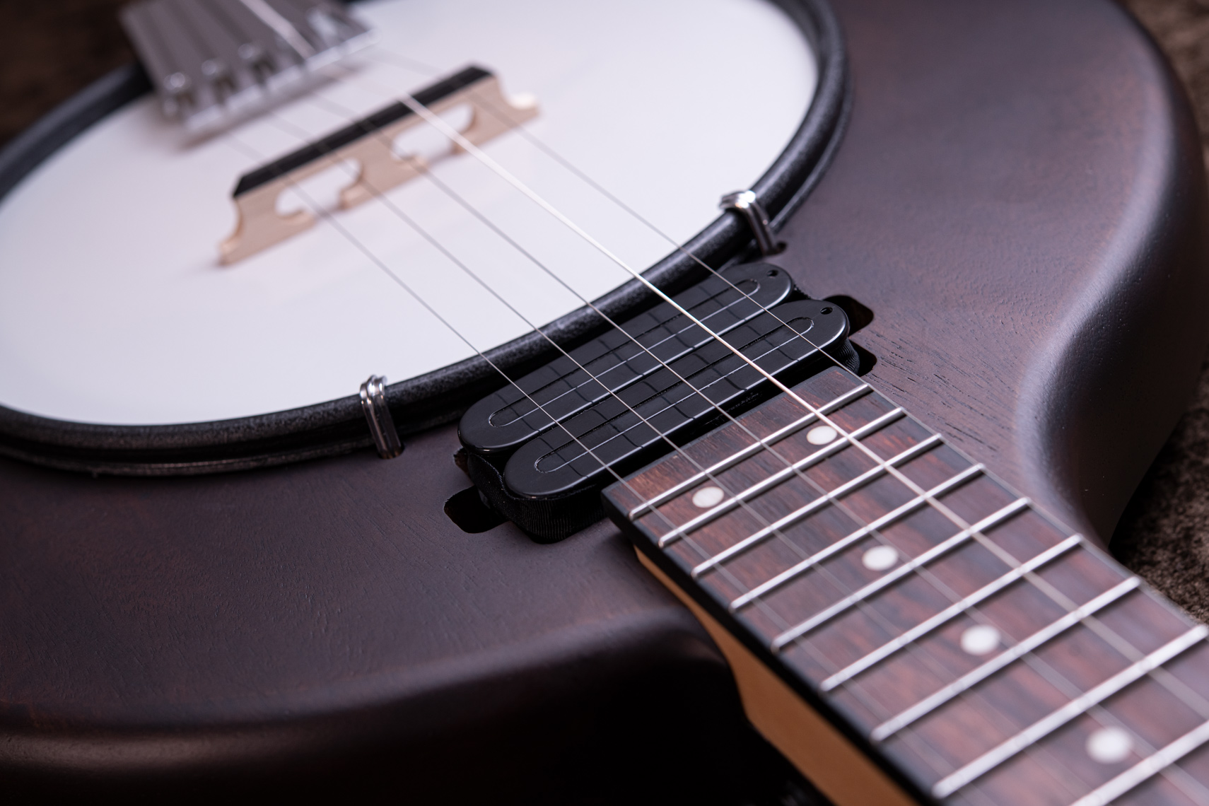 マホガニーリゾネーター、カナディアンメイプル3プライリム、キャスト1ピースフランジ、ベルブロンズノーホールフラットヘッドトーンリングといった仕様のポットに専用ブリッジ、Prucha製テールピース、Little Mountain スタイルアームレストといったセレクトされたハードウェアを採用しています。