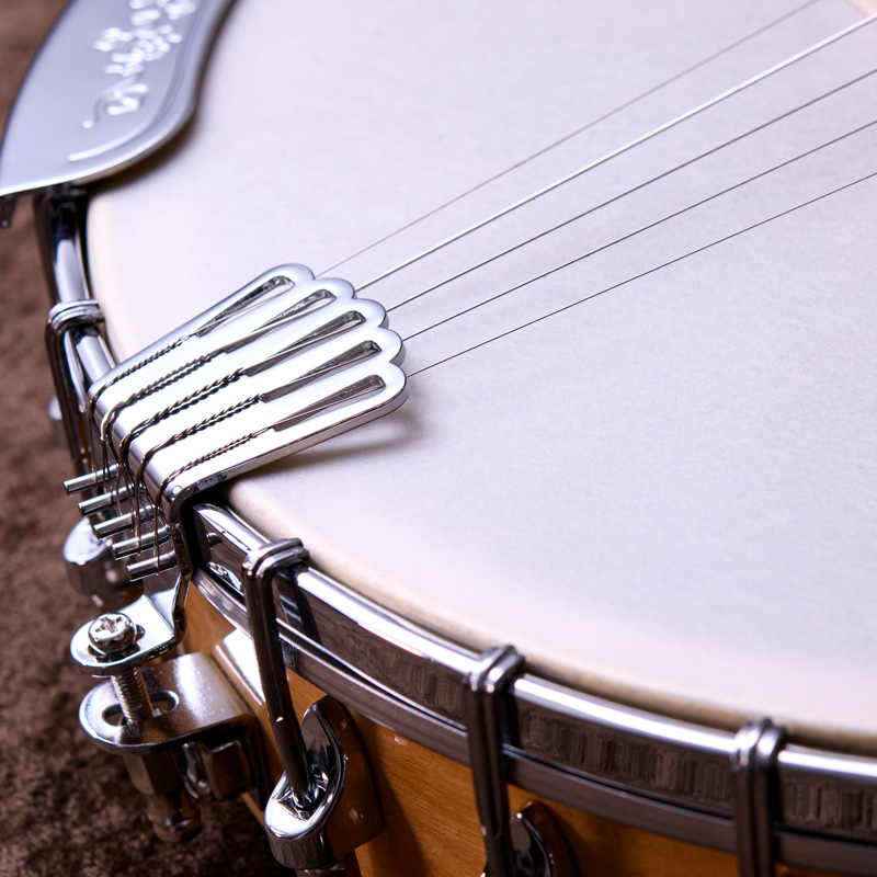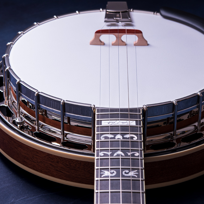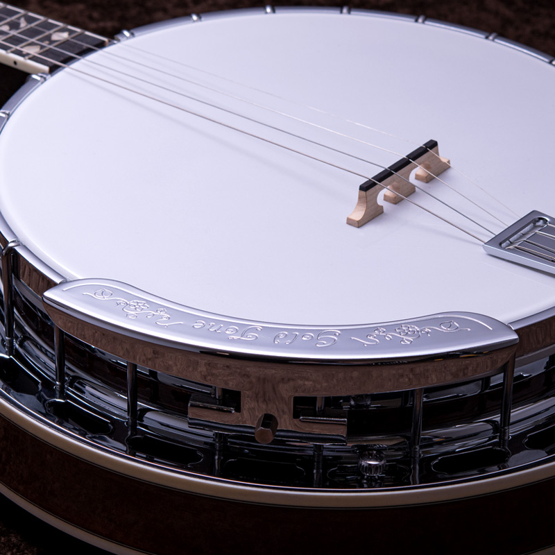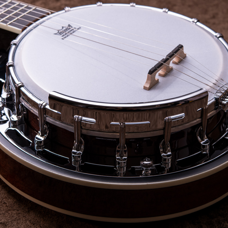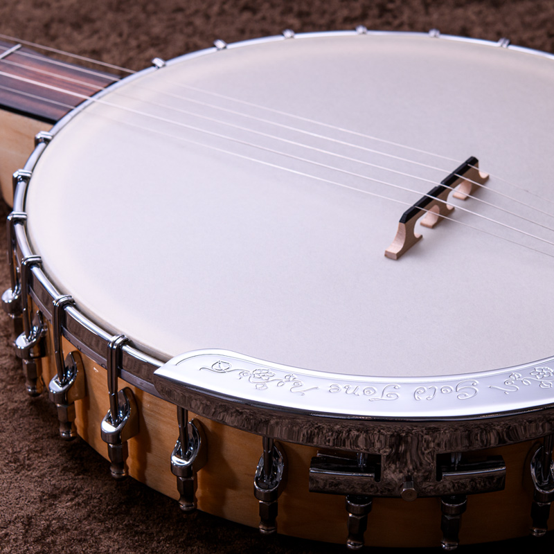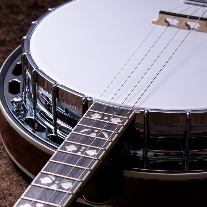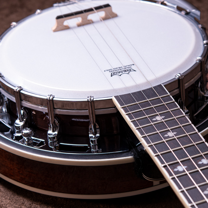 メイプルネック/エボニー指板、3プライメイプルリム&サンドキャスト・40ホールブラストーンリングといったプロフェッショナルな仕様の5弦・レギュラーバンジョーです!30.1mmナット幅、2ウェイアジャスタブルトラスロッドといった、現代的で扱いやすいプレイアビリティも魅力的なバンジョーです。