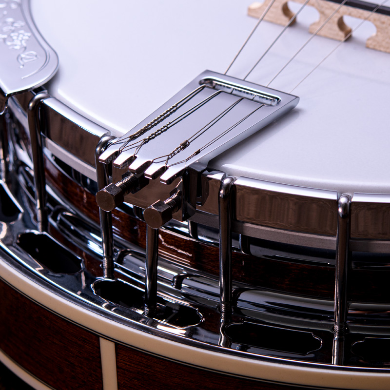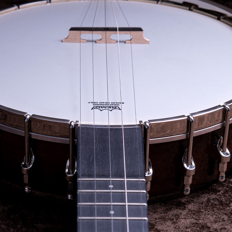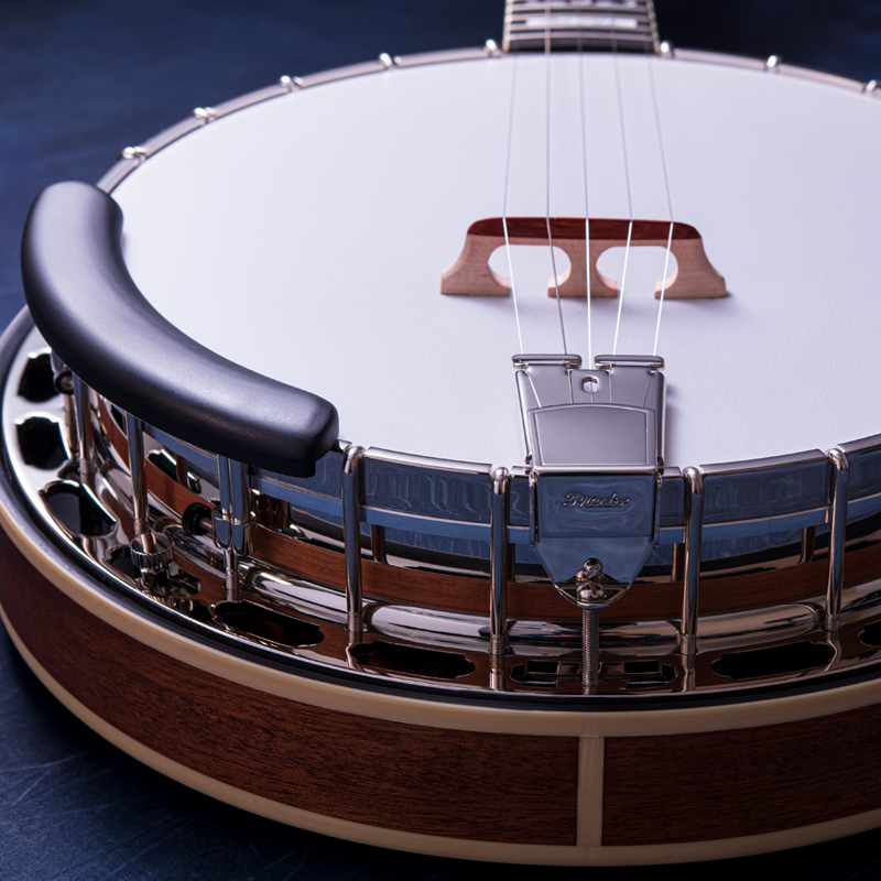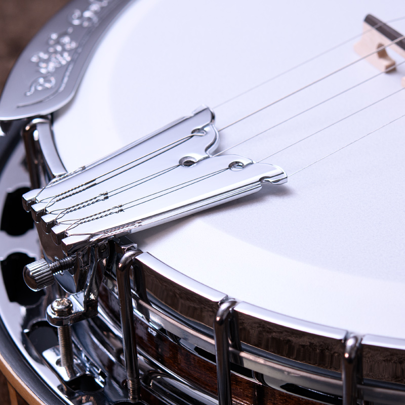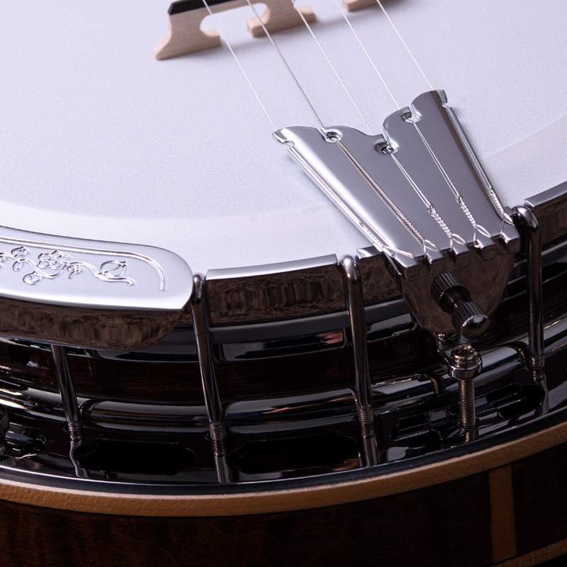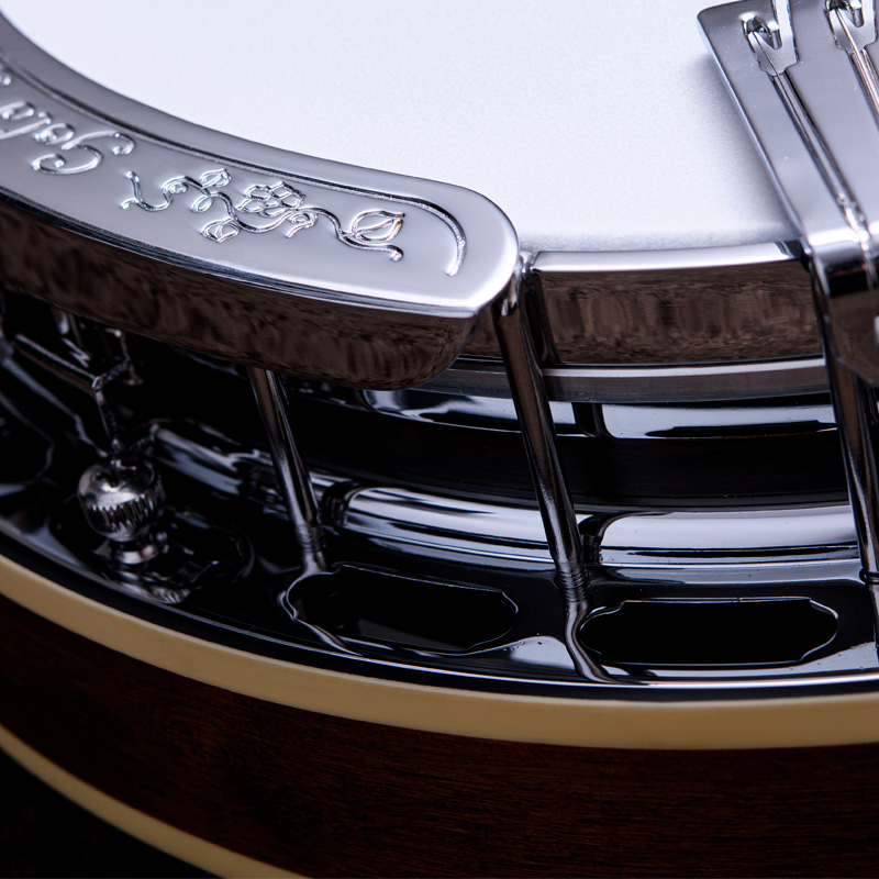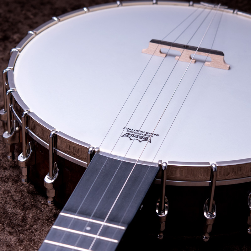 メイプルネック/エボニー指板、3プライメイプルリム&サンドキャスト・40ホールブラストーンリングといったプロフェッショナルな仕様の5弦・レギュラーバンジョーです!30.1mmナット幅、2ウェイアジャスタブルトラスロッドといった、現代的で扱いやすいプレイアビリティも魅力的なバンジョーです。