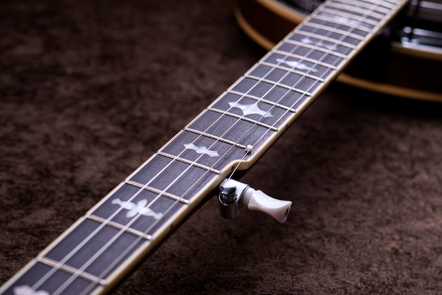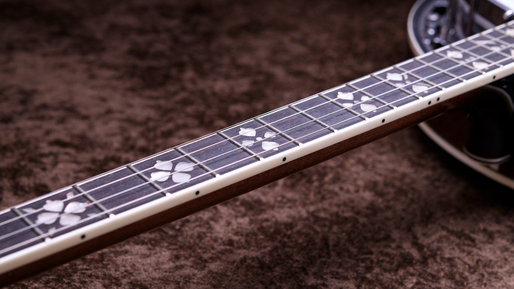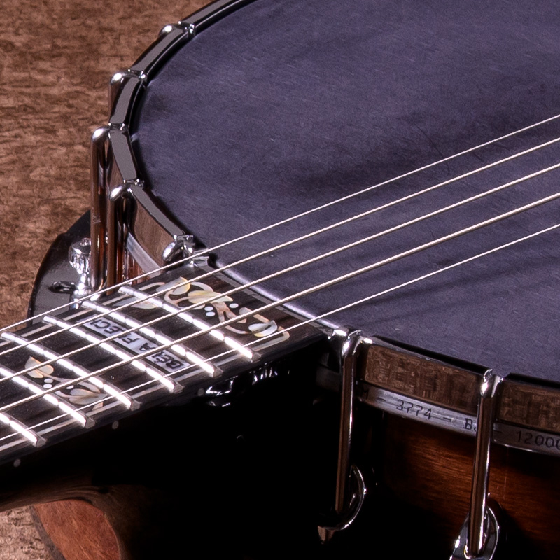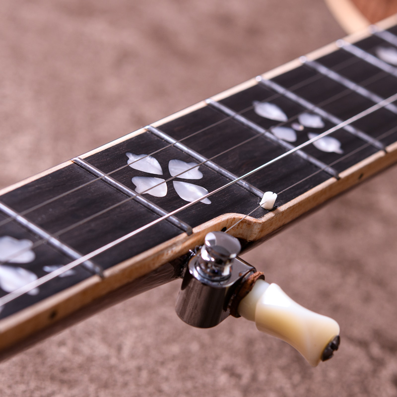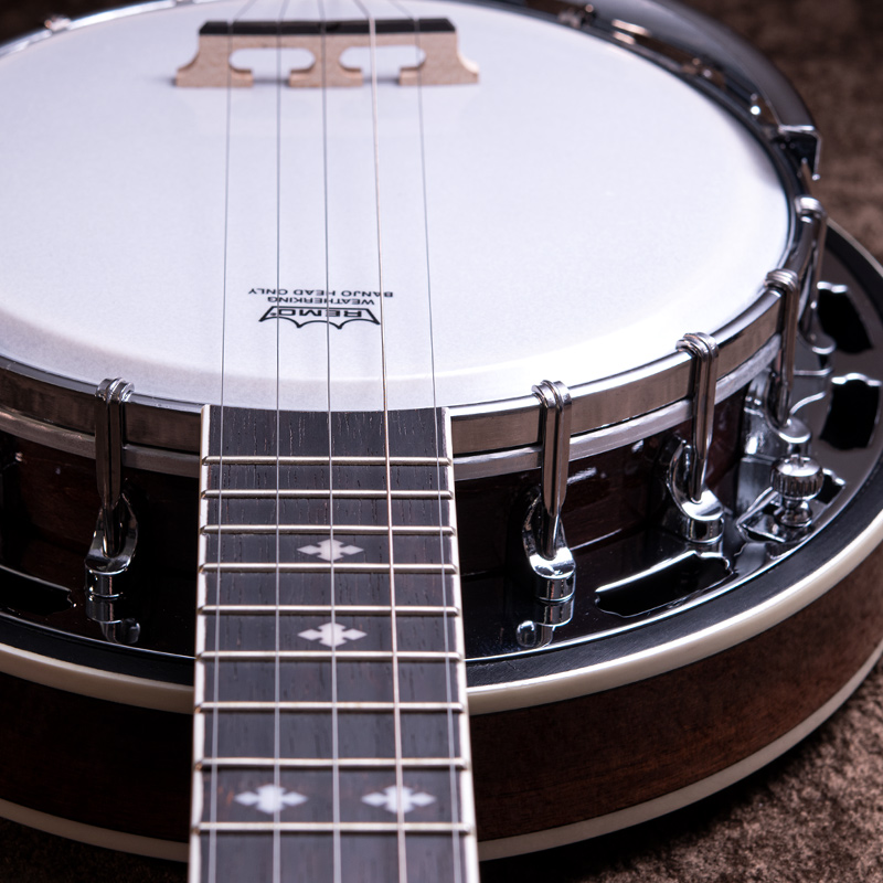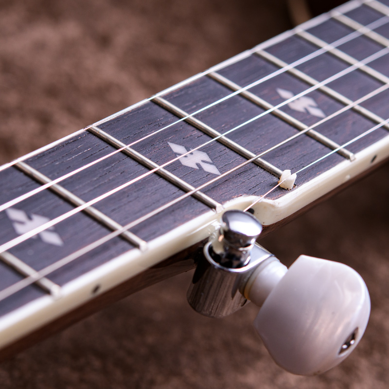 17フレット以降はスクープ加工が施されており、クローハンマースタイルの演奏に最適です。1本目のバンジョーとして、またすでにバンジョーを弾いている方の軽量な楽器としてもおすすめの1本!