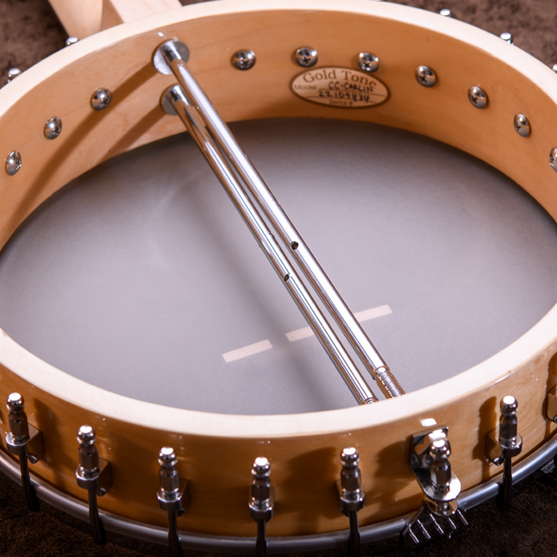 オールドタイムスタイルの演奏に最適な、その名も "Clawhammer Banjo" CB-100。ネック取り付けにはボルトではなく木製(Dowel-Stick)に拘りつつ、高いコストパフォーマンスを実現しています。芯のしっかりとした暖かみのあるサウンドが特徴的で、初心者~中上級者まで満足できるバンジョーだと思います。17フレット以降はスクープフィンガーボードとなっており、クローハンマースタイルには演奏しやすい仕様です。11インチヘッド、1/2インチ厚メイプルリム&ブラス製フープスタイルトーンリングにより、素朴ながらしっかりと音量のある、古い雰囲気ながら現代的な扱い易さを併せ持つ、オープンバックバンジョーです。