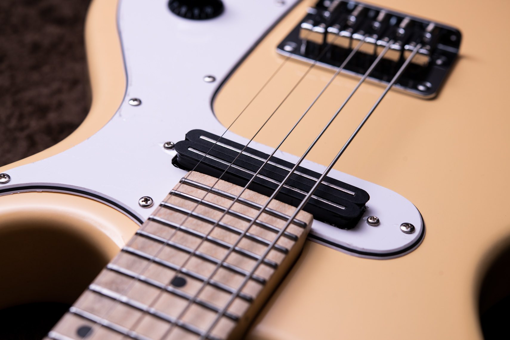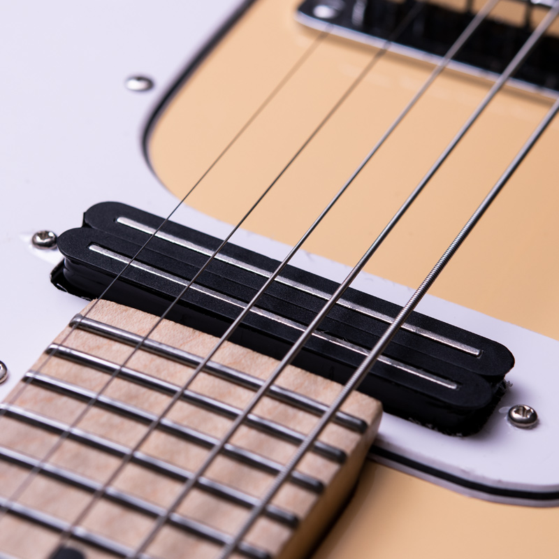 4弦よりG-D-A-Eとなるマンドリンに5弦Cが加わることで、マンドラやテナーバンジョーと同様のC-G-D-A-(E)の両方の楽器の音域が使える5弦エレクトリックマンドリン。さほど違和感なく持ち替えが可能で、移調やバッキングでのバリエーションが増やせると思います。アルダーボディ&メイプルネック/指板といったエレキギターライクなマテリアルとルックスがGood!ハムバッカータイプの専用P.U.が1基と1ボリューム、1トーンとシンプルで使いやすい仕様になっています。5連サドルとなっており、プレイヤーの好みの弦ごとにセッティングする場合も行いやすいと思います。