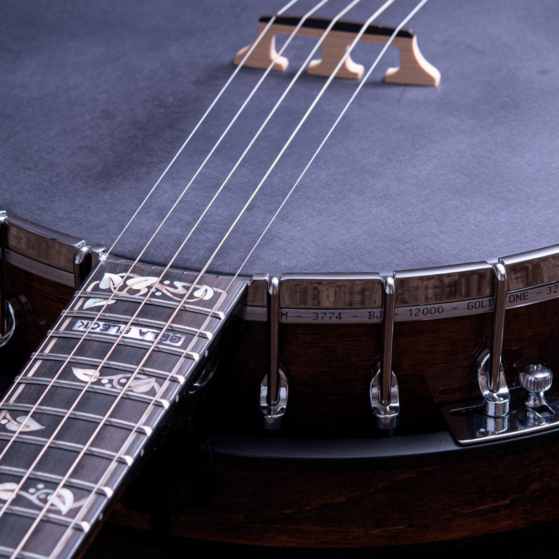 Gold Tone バンジョーとベラ・フレックのコラボレーションにより登場した自身のシグネイチャーモデル。ベラのバンジョースタイルに大きな影響を与えたジョン・ハートフォードのバンジョー(A.A.Farland 製)の12インチヘッドを持った豊かな低音の響き、まろやかなサウンドを狙っています。オープンCチューニング(レギュラーバンジョーの5カポ/Cの1オクターブ下)となっており、バンジョーらしい軽やかさがありながらも落ち着いた重厚感のあるボイシングが体感できます。プロトタイプを複数台製作し、ようやく完成した新設計のバンジョーで、指板は5~9インチのコンパウンドラディアス指板にジャンボフレット仕様といった、バンジョーではあまり見られないシグネイチャーモデルならではのスペックになっています。