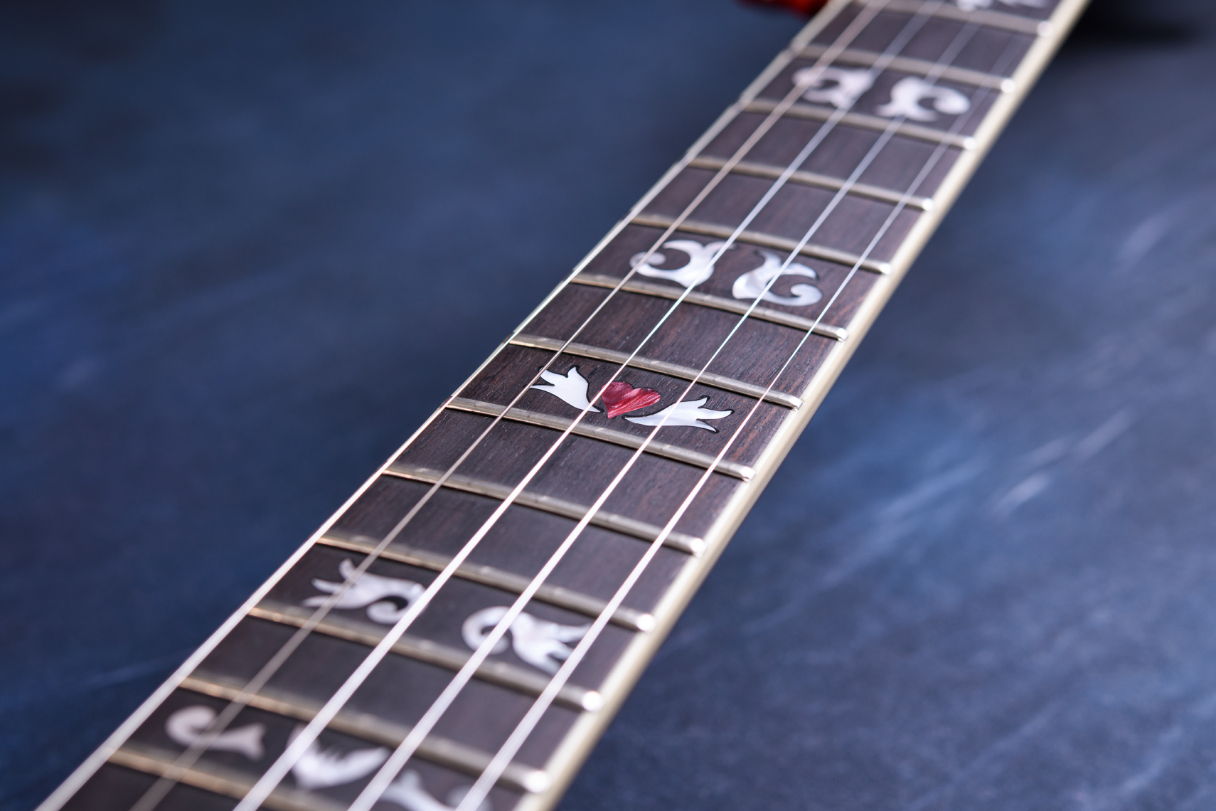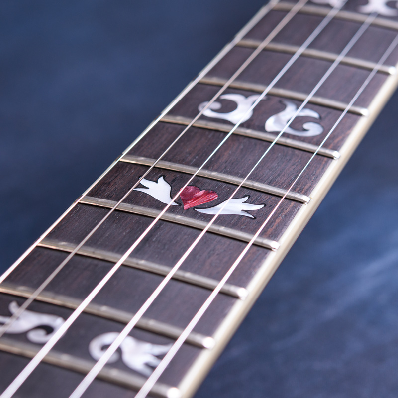 ベラ・フレックの新しいシグネチャーモデル、Bluegrass Heart が待望の入荷です。Gold Tone バンジョーとタッグを組んだシグネーチャーモデル第二弾となるバンジョーで自身がメインで使用しているStyle-75にセットされているモンテレオーネ製作によるネックを完全再現しています。マホガニーネック(ネック裏サテン仕上げ)、指板はエボニー材でラディアス仕様となっています。ナット幅は1 3/8インチ(34.9mm)と幅広です。(Zeroグライドナット搭載)