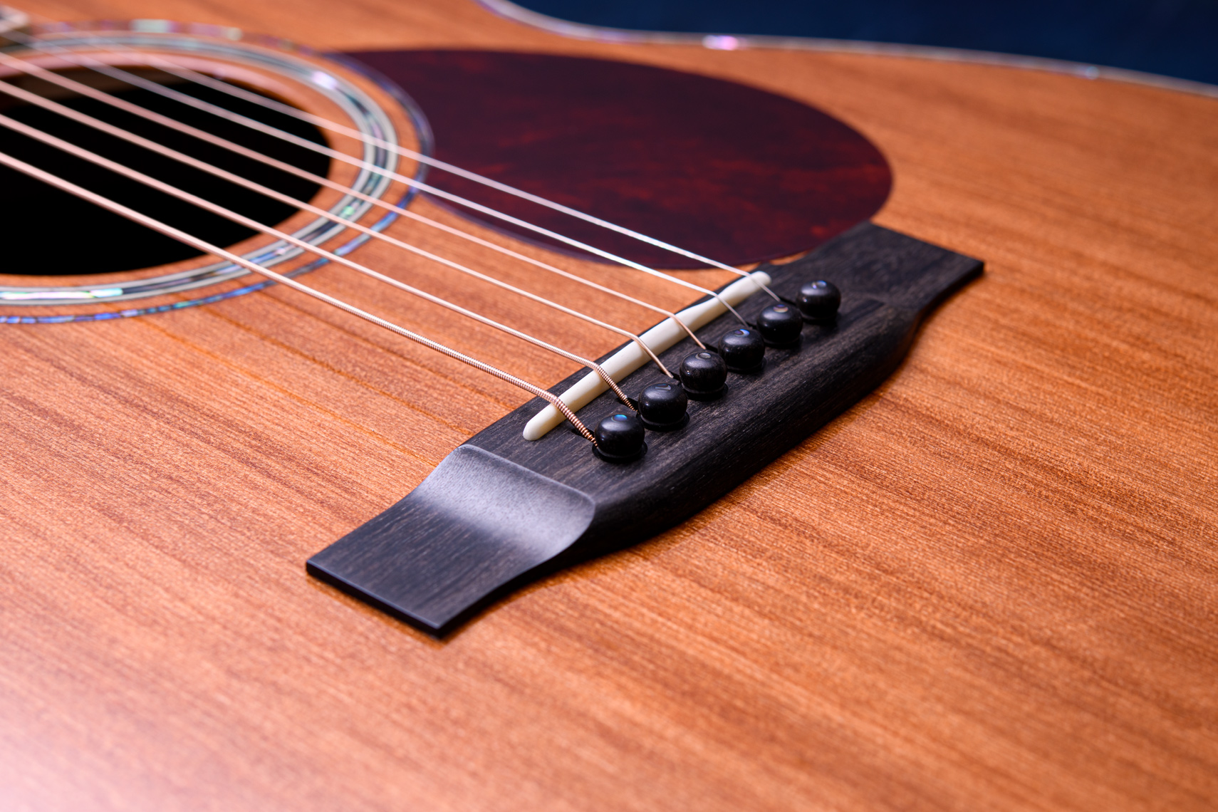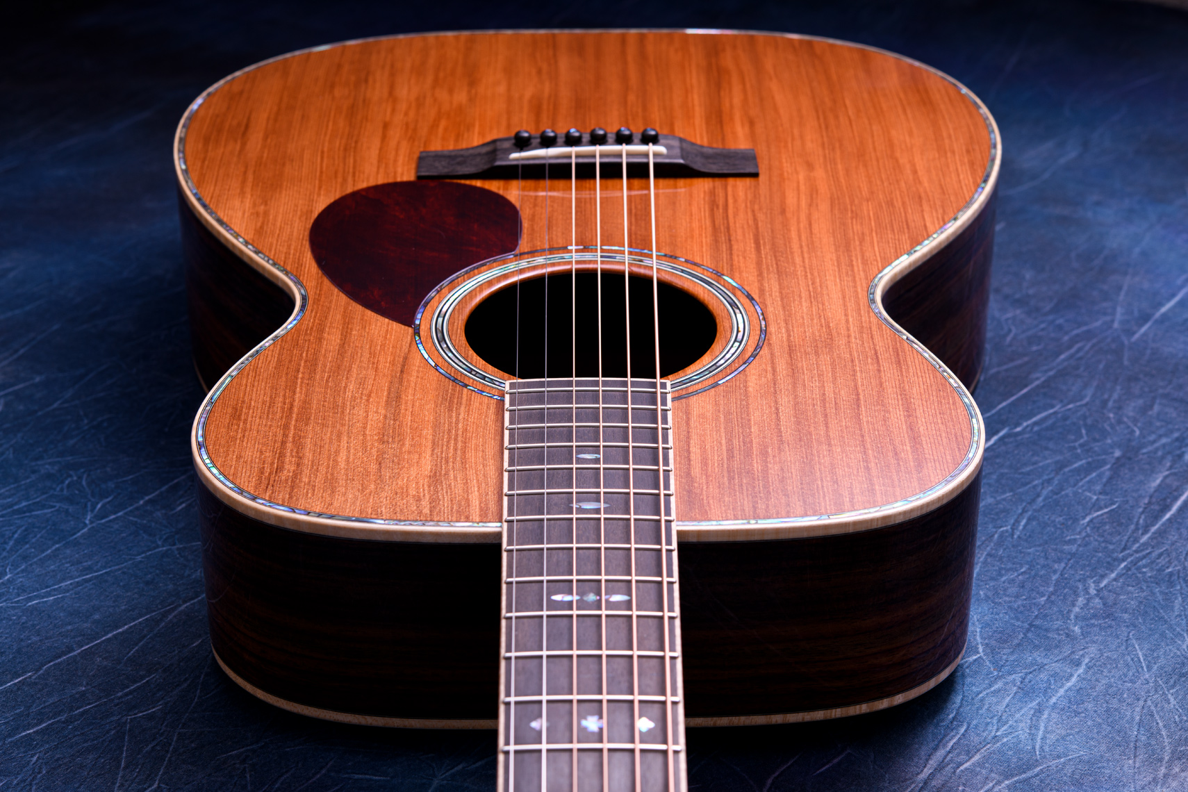 通常よく使用されるシトカスプルーストップに比べ、軽いタッチでもトップ材がしっかりと振動してくれる印象です。倍音も豊かでキラキラとした音色。OMらしく中高域が強く出ておりまっすぐと前に音が飛んでくれるように感じます。