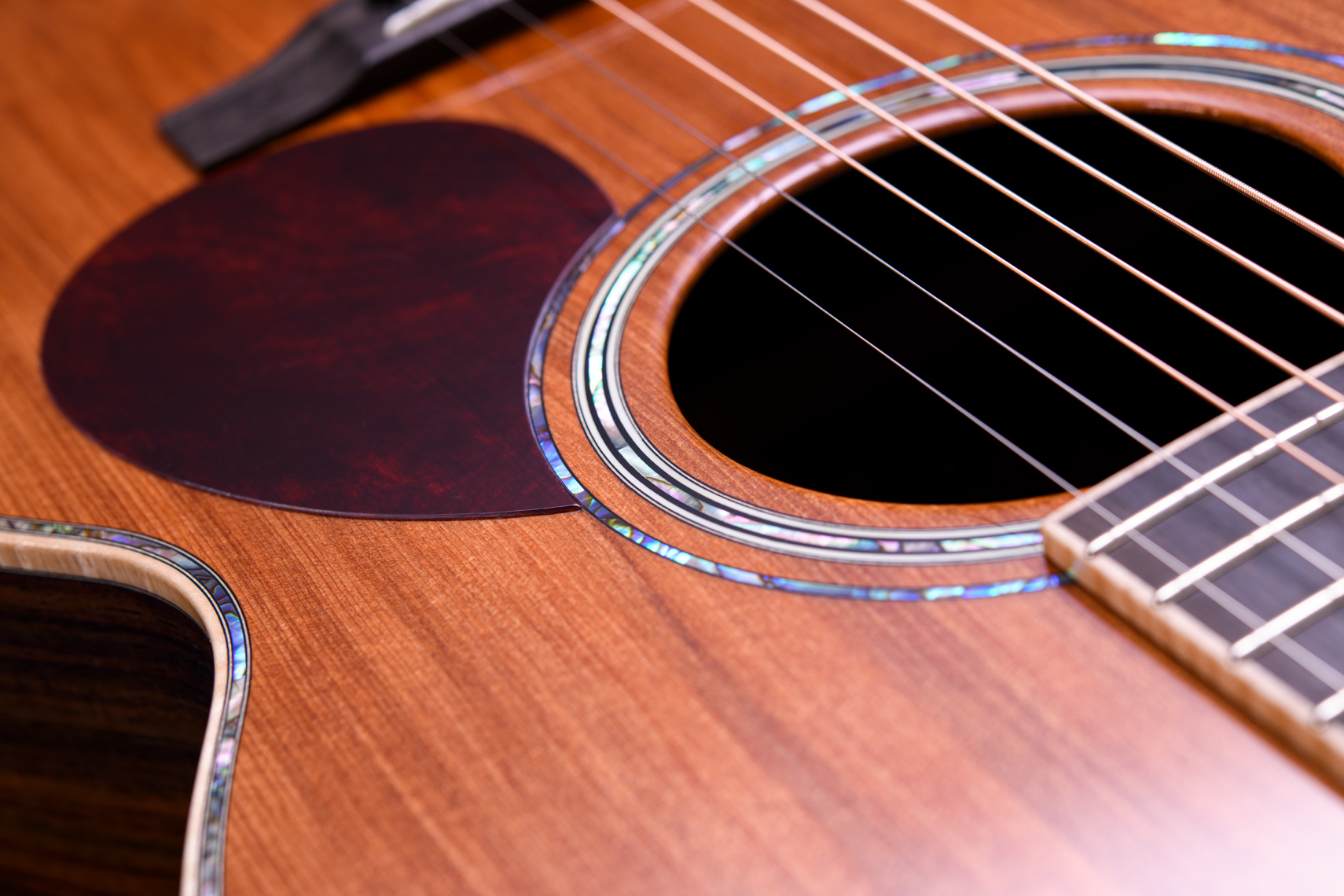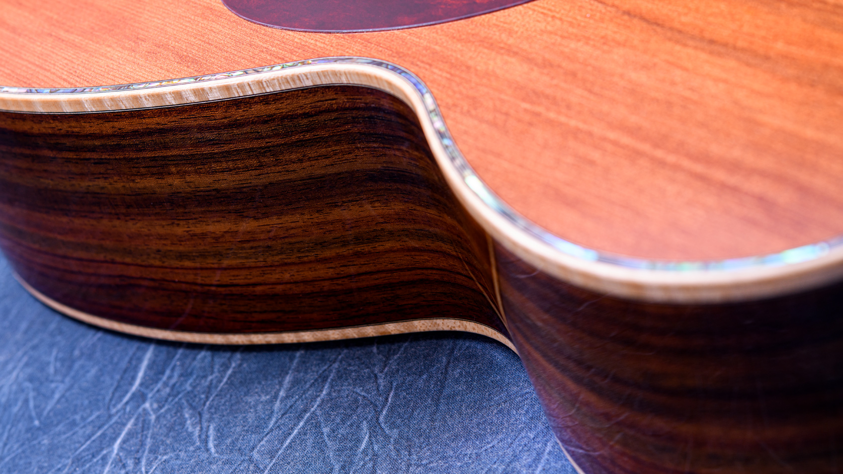 サイドバックには厳選されたインディアン・ローズウッド。トップ材には珍しいシンカーレッドウッドが使用されています。シンカーレッドウッドとは100年単位の長い年月、湖などの底に沈んでいたレッドウッドをサルベージしたもの。水の底では微生物が繁殖しないため、腐ること無く時を超えて今、ギターとして新たな命が吹き込まれました。