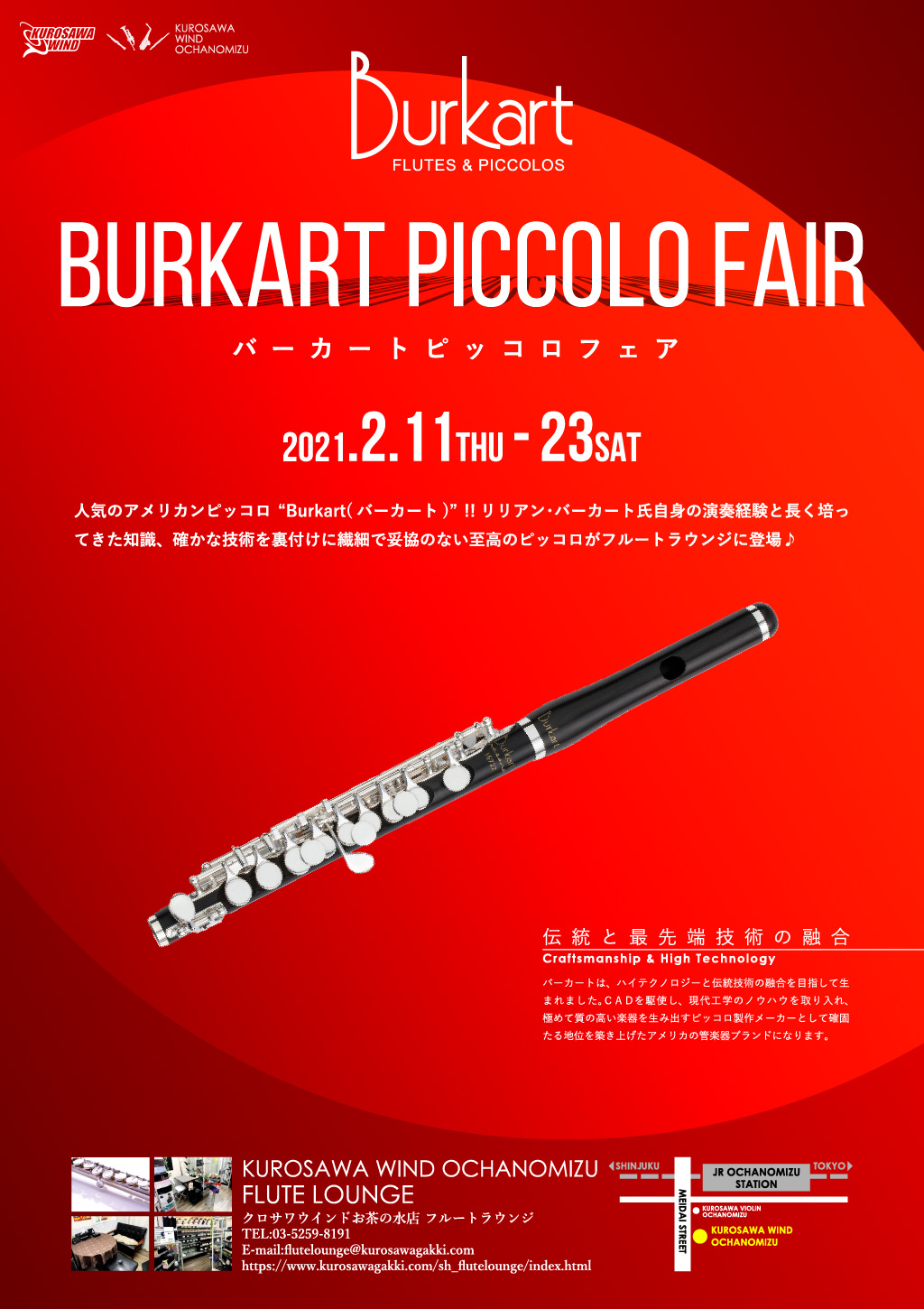 人気のアメリカンピッコロ“Burkart(バーカート)”!! リリアン・バーカート氏自身の演奏経験と長く培ってきた知識、 確かな技術を裏付けに繊細で妥協のない至高のピッコロがフルートラウンジに登場♪