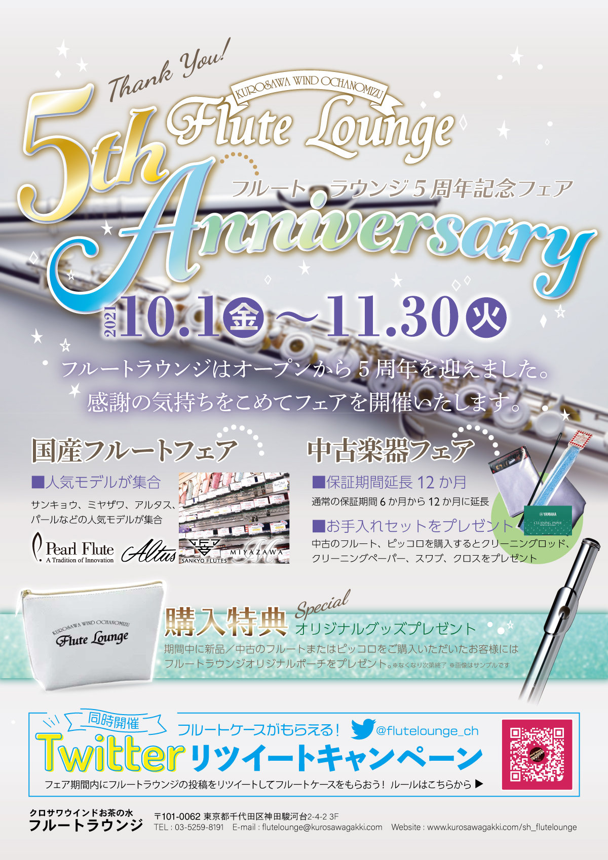 フルートラウンジはオープンから5周年を迎えました。感謝の気持ちをこめてフェアを開催いたします。