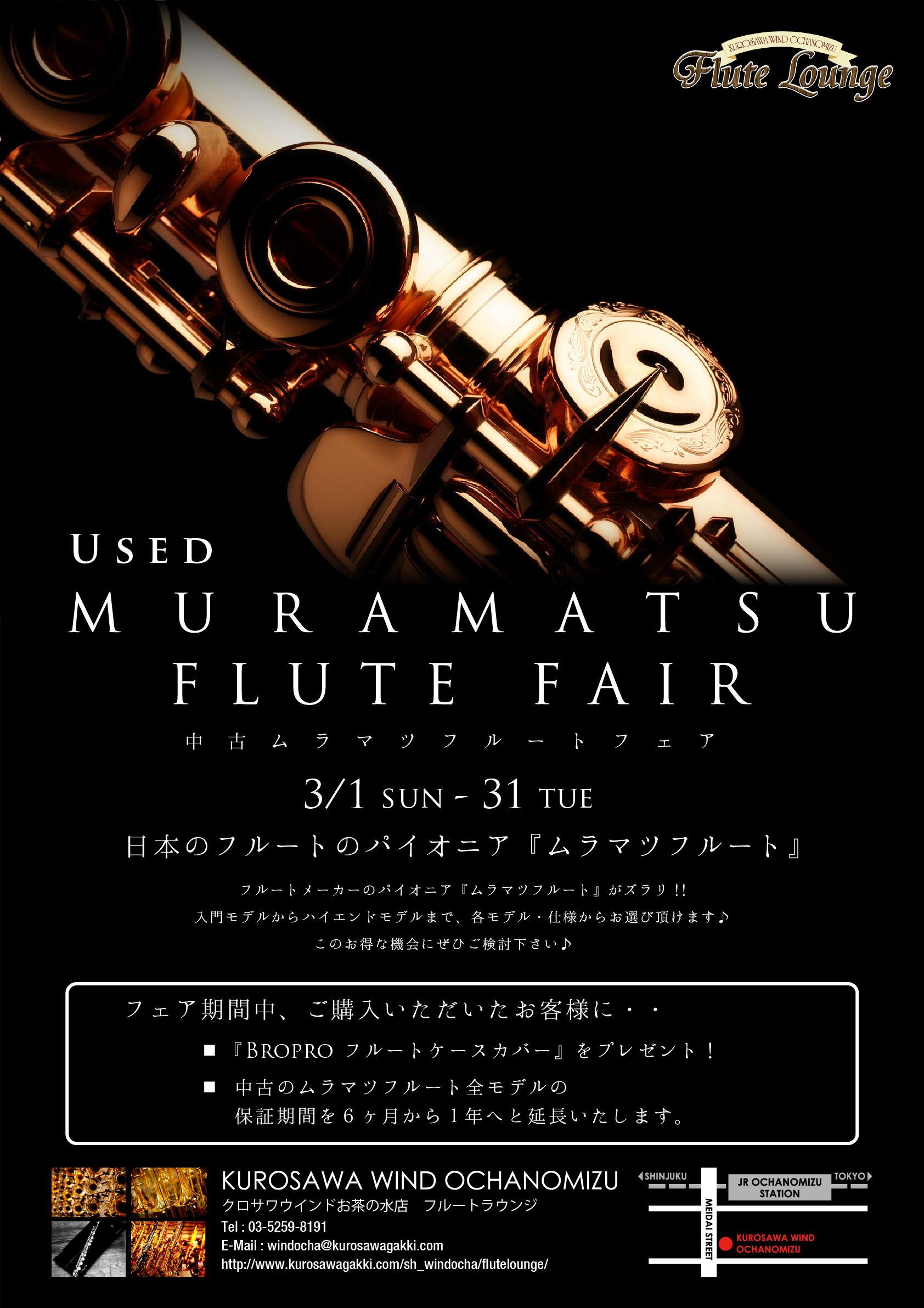 クロサワウインドお茶の水 フルートラウンジ では中古ムラマツフルートのフェアを開催いたします。日本のフルートメーカーのパイオニア『ムラマツフルート』がズラリ!!