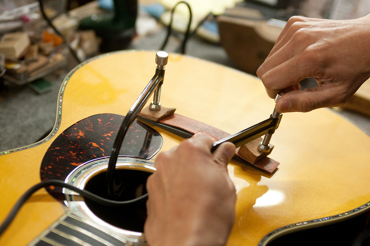 店内にはリペア工房を併設し、リペアマンが常駐しています。点検・調整から修理まで専門のリペアマンが正確な技術とスピードでお客様の楽器をお直しいたします。ぜひお気軽にお問い合わせ、ご相談ください。