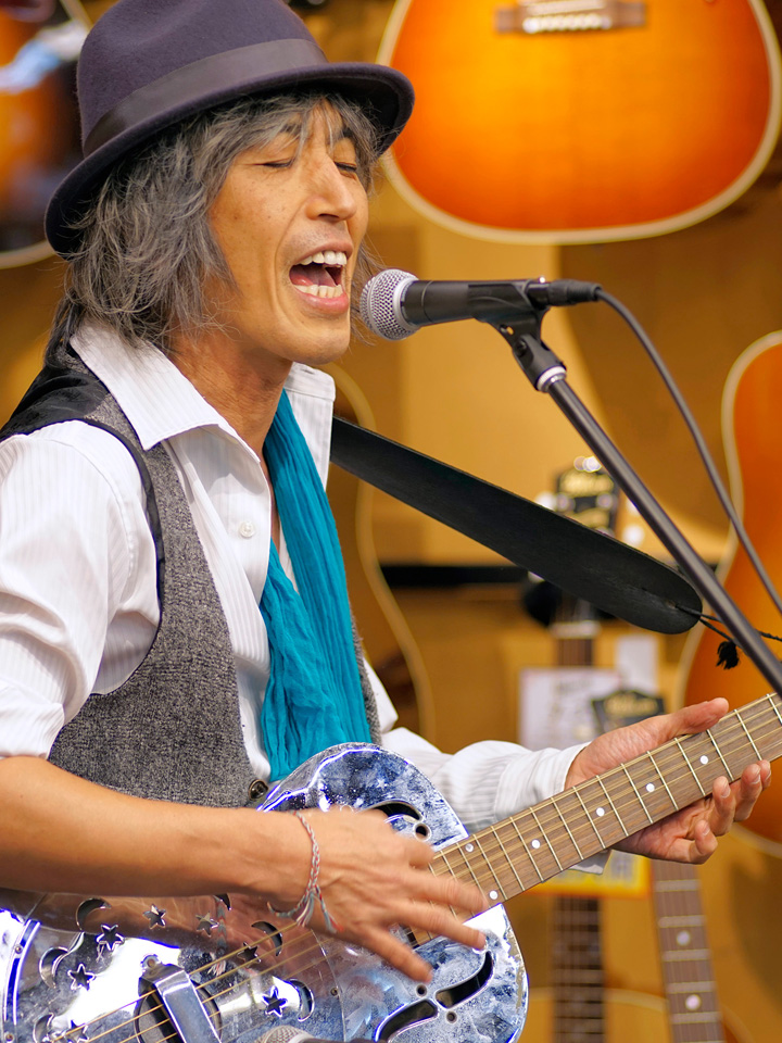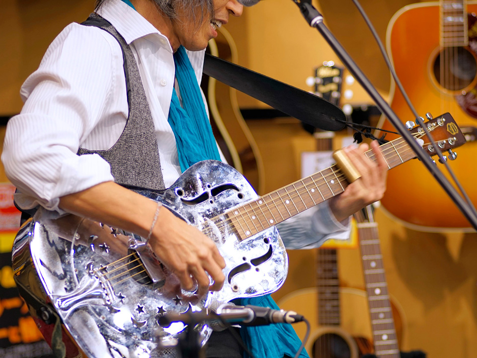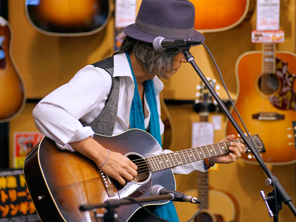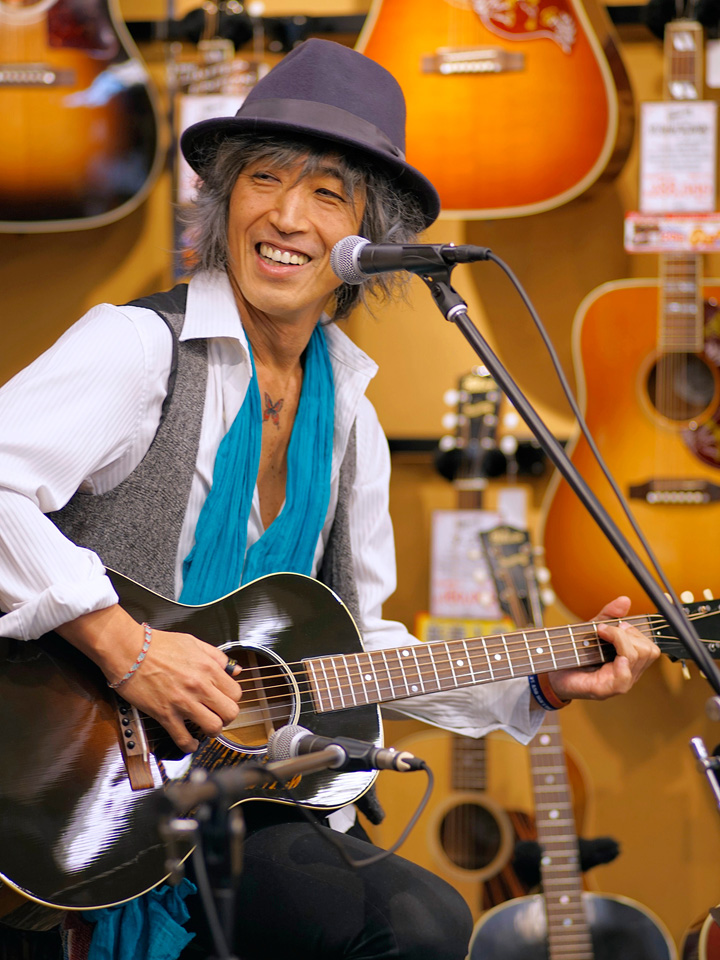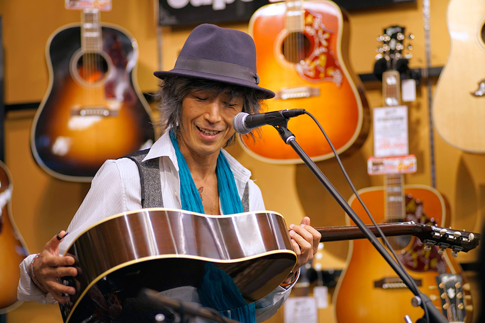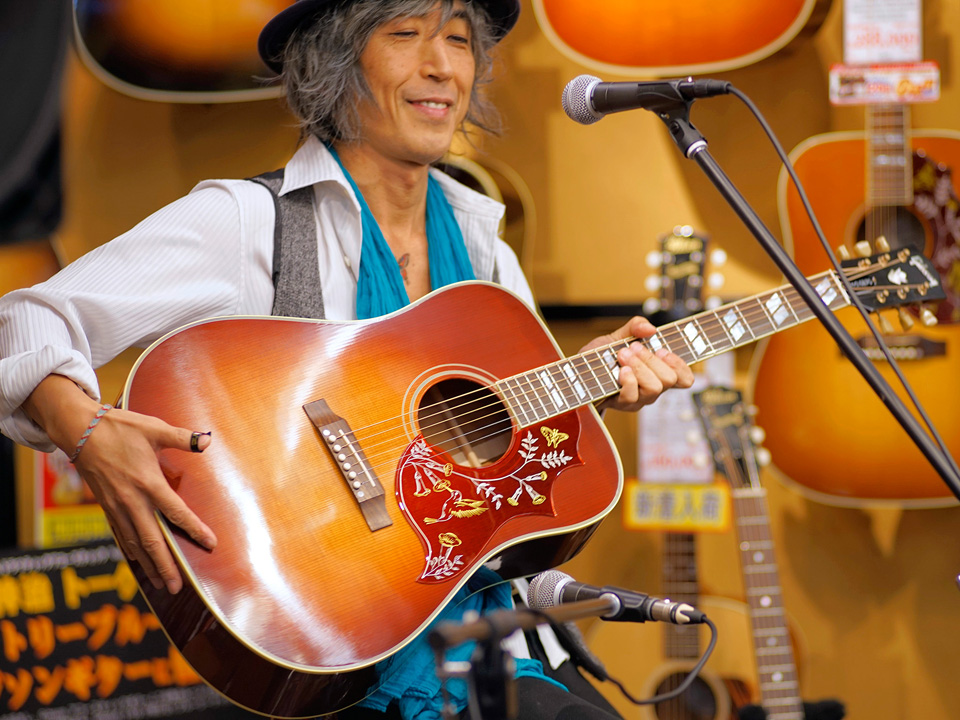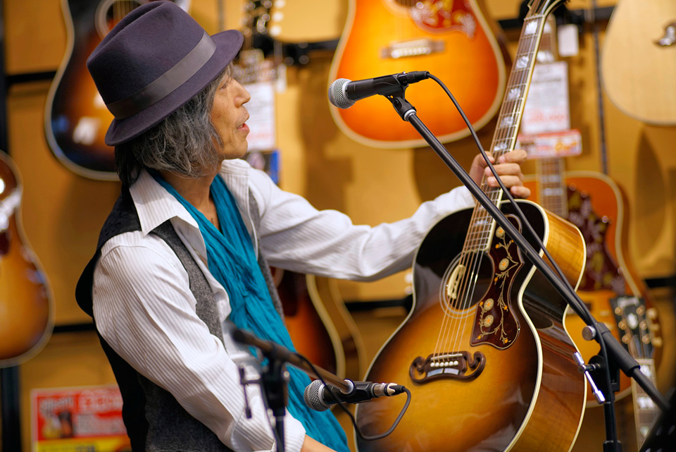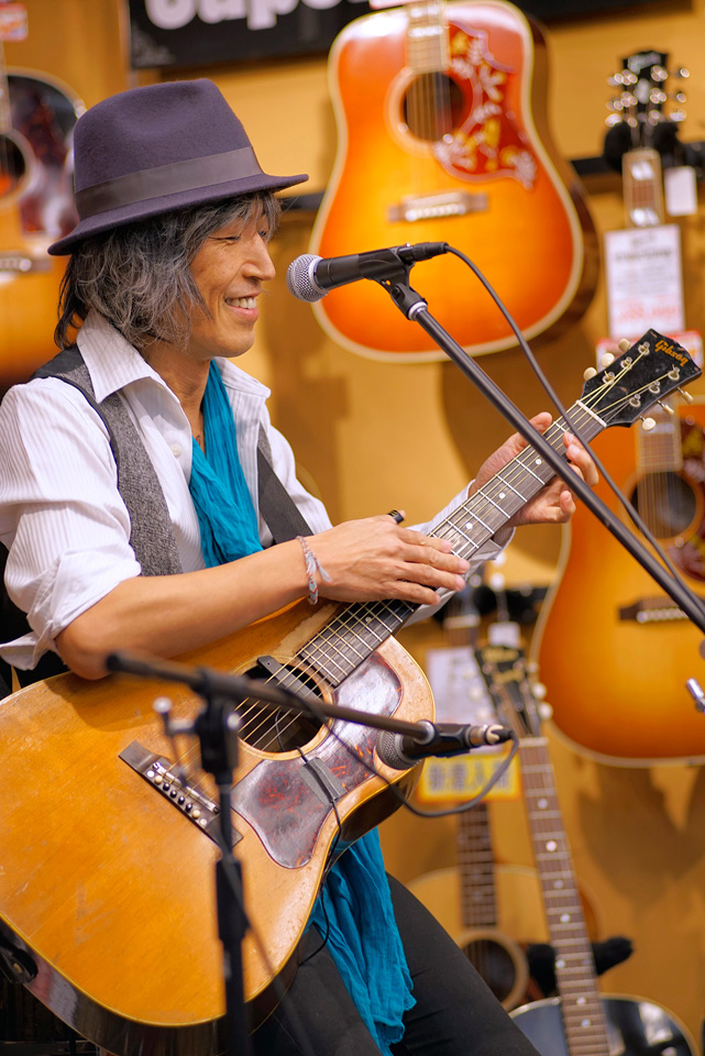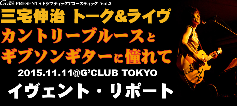 さる2015年11月11日、G'CLUB TOKYO では三宅伸治氏をお迎えして、【ドラマティック・アコースティック】Vol.2 を行いました。三宅氏にはご自身の J-50 とDobro をご持参頂き、更に当店の在庫の中から厳選した数本を演奏して頂き、それぞれのインプレッションなどをお話しして頂きました。