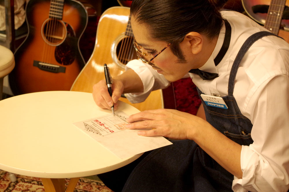 お店がオープンしたら、ギターの選定を始めます。