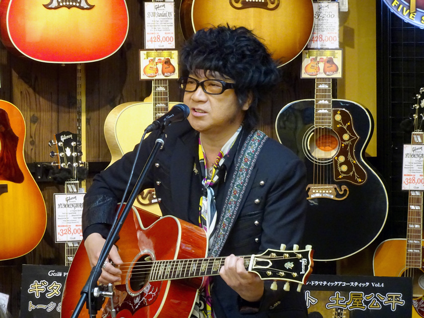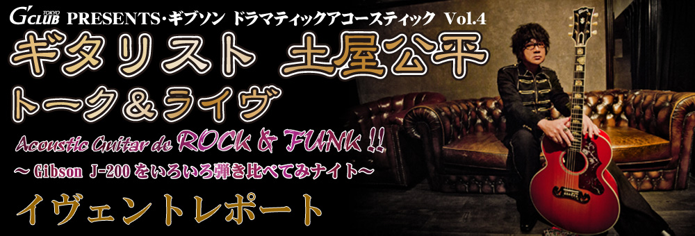 さる2016年5月13日、G'CLUB TOKYO では(ex)The Street Slidersの土屋公平氏をお迎えして、【ドラマティック・アコースティック】Vol.4 を開催いたしました。今回は土屋氏の愛器でもあるGibson J-200にスポットを当て、当店の在庫の中から厳選したJ-200を何本か演奏して頂き、そのインプレッションなどをお話しして頂きました。