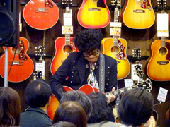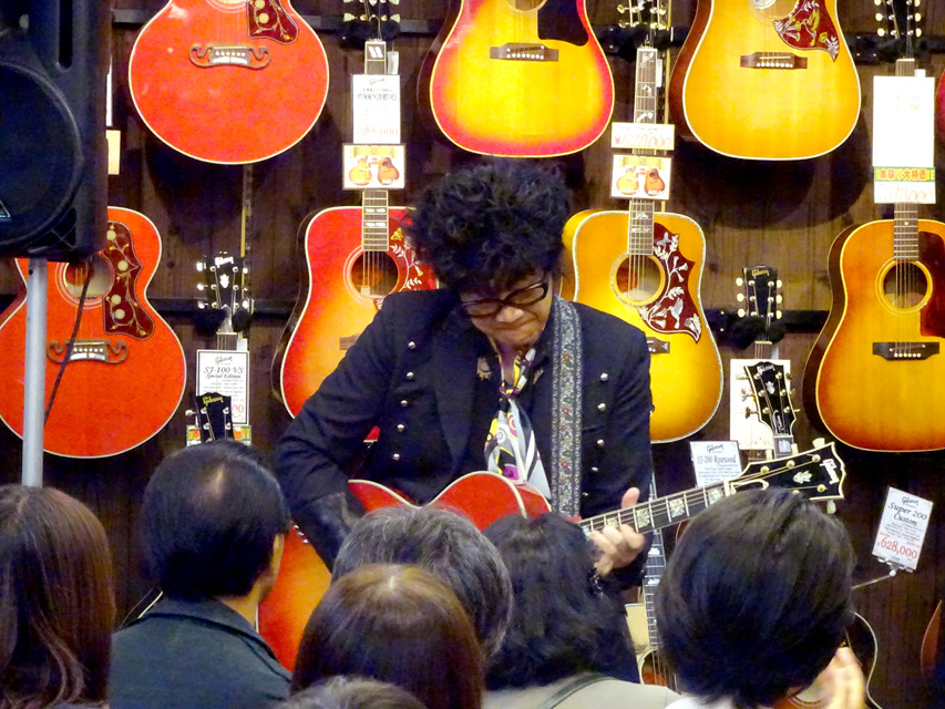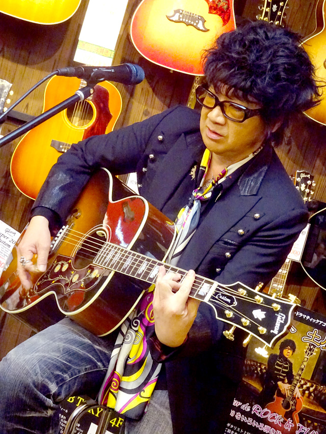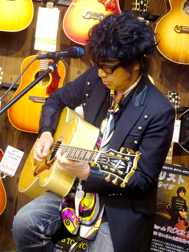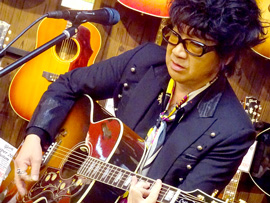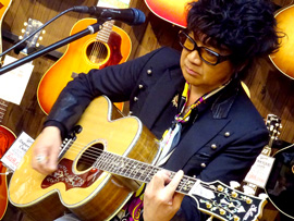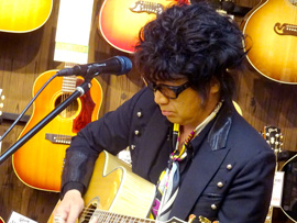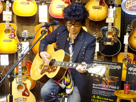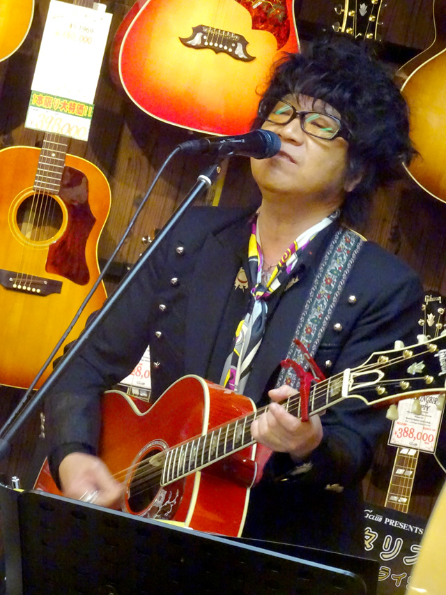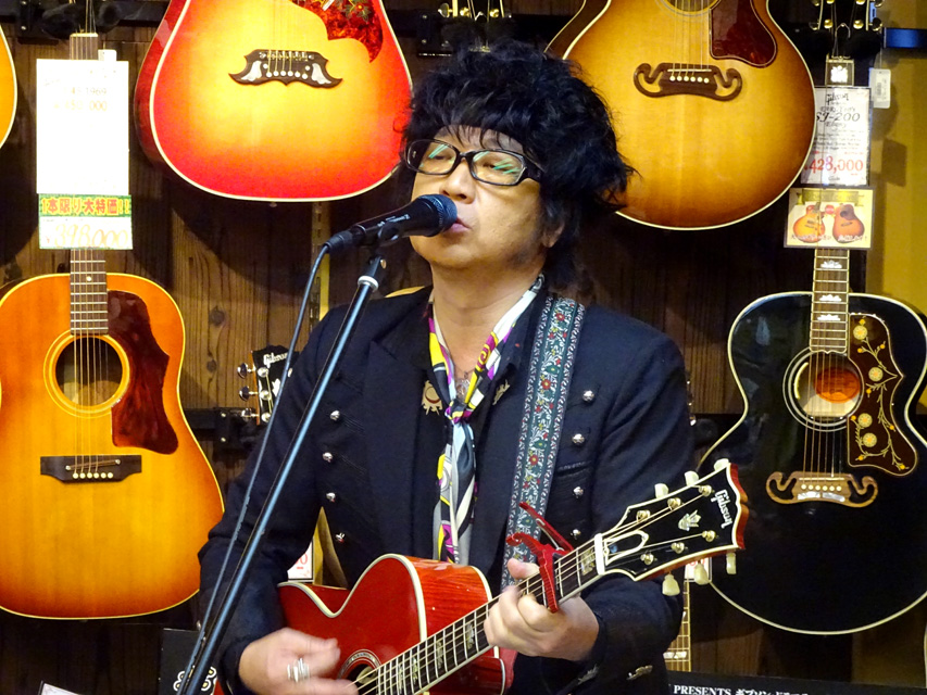 後半戦では、愛用のJ-200を抱えオケをバックに弾き語りを披露。終盤では客席にまで下りてきてギターソロを弾きまくり、ラストはジミヘンのナンバーが飛び出すなど大サービス!絶妙なMCも相まって会場は大いに盛り上がりました。ご来場いただいた皆様、ありがとうございました。