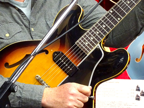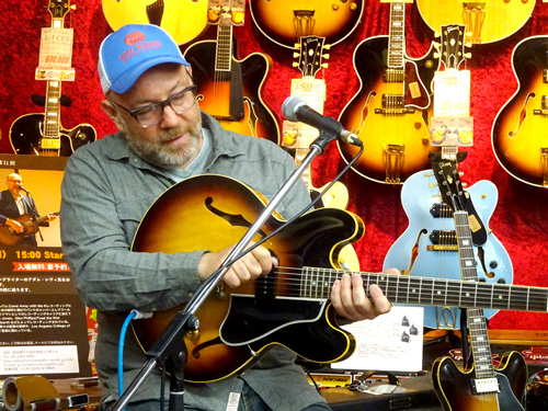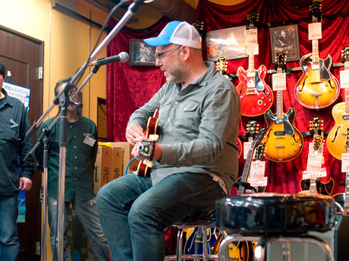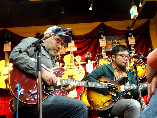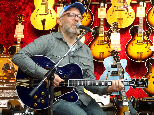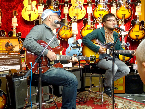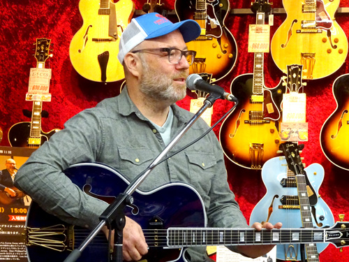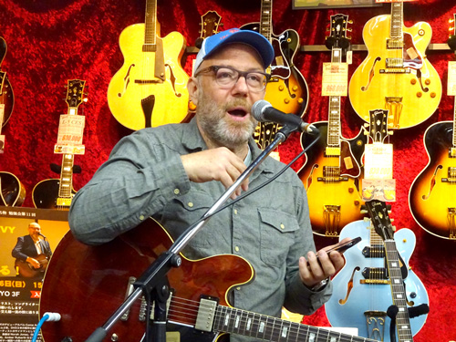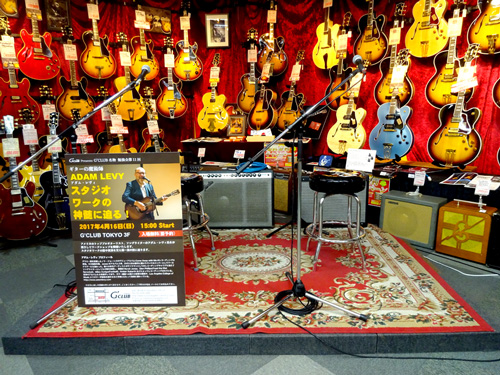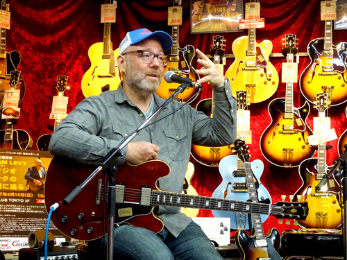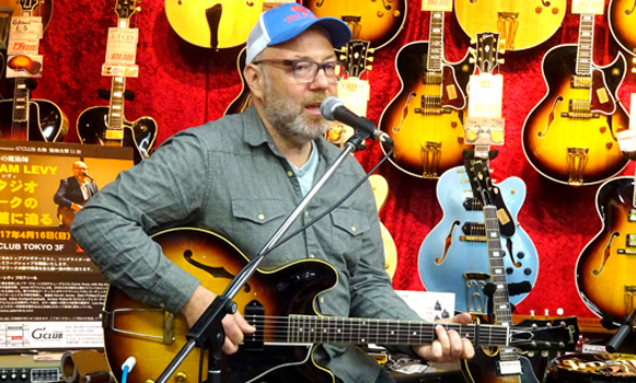 去る2017年4月16日、ノラ・ジョーンズの1st アルバムにギタリスト、ソングライターとして参加したことでも知られるアダム・レヴィ氏を迎えて、恒例企画勉強会の第11回を行いました。まずはインストナンバーの演奏からスタート、続けて歌入りのナンバーを弾き語りした後、カポタストの有用性やメトロノームを使った練習の重要性などを実際に演奏を交えながらレクチャー。どのお話も「実際にこういうことがあった」→「だからこういう練習が重要」というふうに、自身のレコーディング時における経験に基づいてお話しされるので、実に説得力があり、勉強になるものばかり。客席からの質問に対しても実に丁寧に、わかりやすく解説してくださいました。終盤にはお互いのライヴ、レコーディングで交流のあるギタリスト/シンガーの井上大地氏がステージに登場し、お二人の共演も披露していただきました。とにかく、一つ一つ丁寧に、たっぷりと時間をかけてお話してくださるので、予定の時間を大幅にオーヴァーしてしまいましたが(笑)、終始暖かい雰囲気に包まれた、とても楽しいイヴェントとなりました。ご来場いただいたお客様、ありがとうございました!
