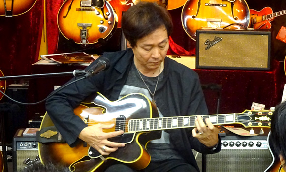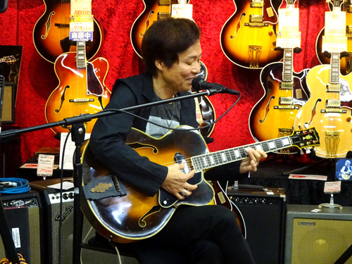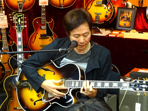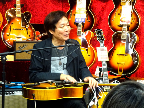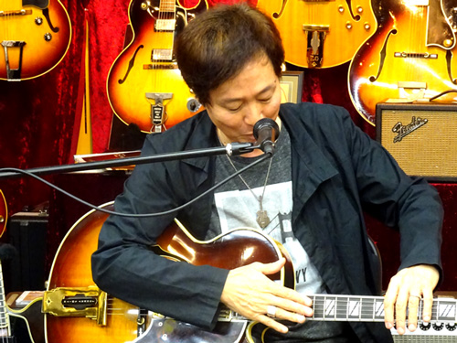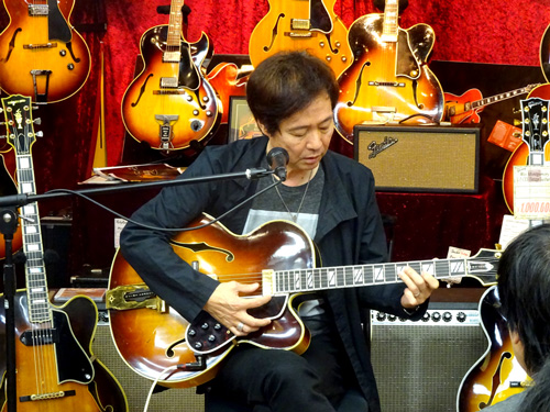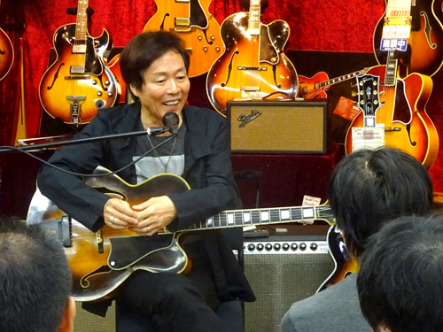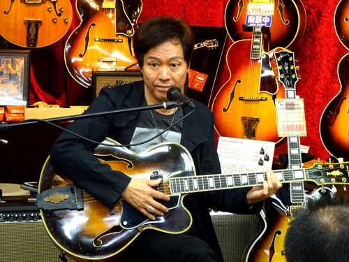 去る2017年9月9日、ジャズギタリスト、宮之上貴昭和氏をお迎えして、恒例企画勉強会の第12回を行いました。今回のテーマはウェス・モンゴメリー奏法解説という事で、まずは氏とウェスの出会いのお話からスタート。その後は終始客席からの質問に答える形で実演を交えながらウェスの奏法を分析、解説。ギター初心者の方からの質問から、コードソロについての質問、はたまた宮之上氏独自の奏法についてまで、一つ一つ懇切丁寧に、要所要所で冗談を挟みながらわかりやすく解説していただく様は、まさに氏の人柄が伺えるところでした。最後のCD即売会、サイン会も含め大盛況であっというまの時間でした。ご来場頂きました皆さま、ありがとうございました。