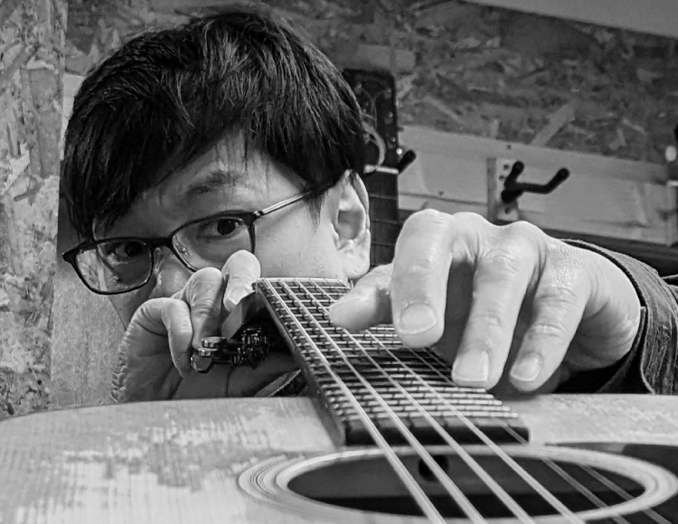 大学卒業後に音響会社に就職し、三味線や琴、雅楽などを中心とした日本古典音楽の音響業務に従事。3年勤務した後、自分の道はここではないと思い、退社してギター製作学校へ。卒業後、友人とギター製作を行い、2010年に黒澤楽器店入社。現在は、マーティン社公認のリペアスタッフのひとりとして、主に西日本エリアを広く担当している。
