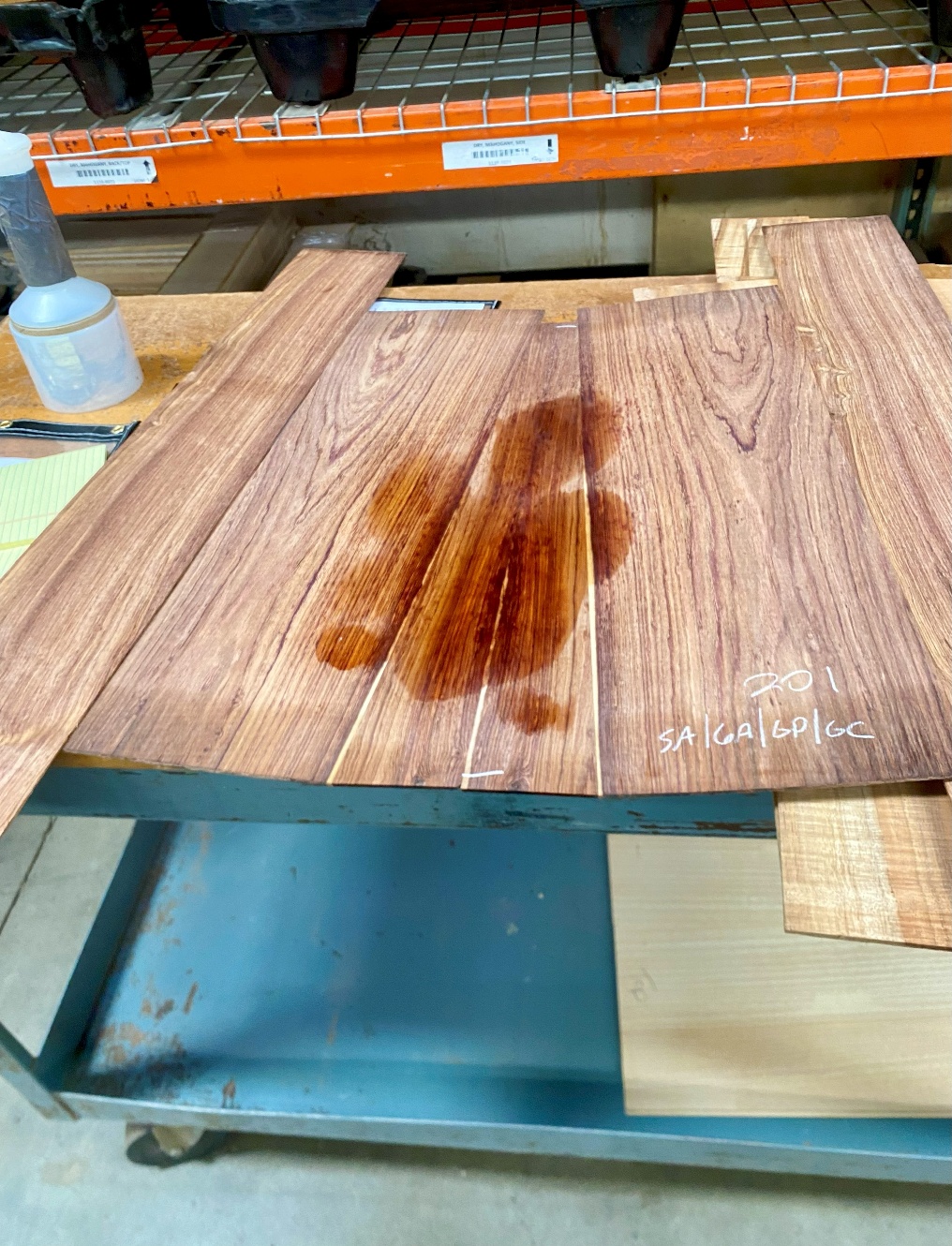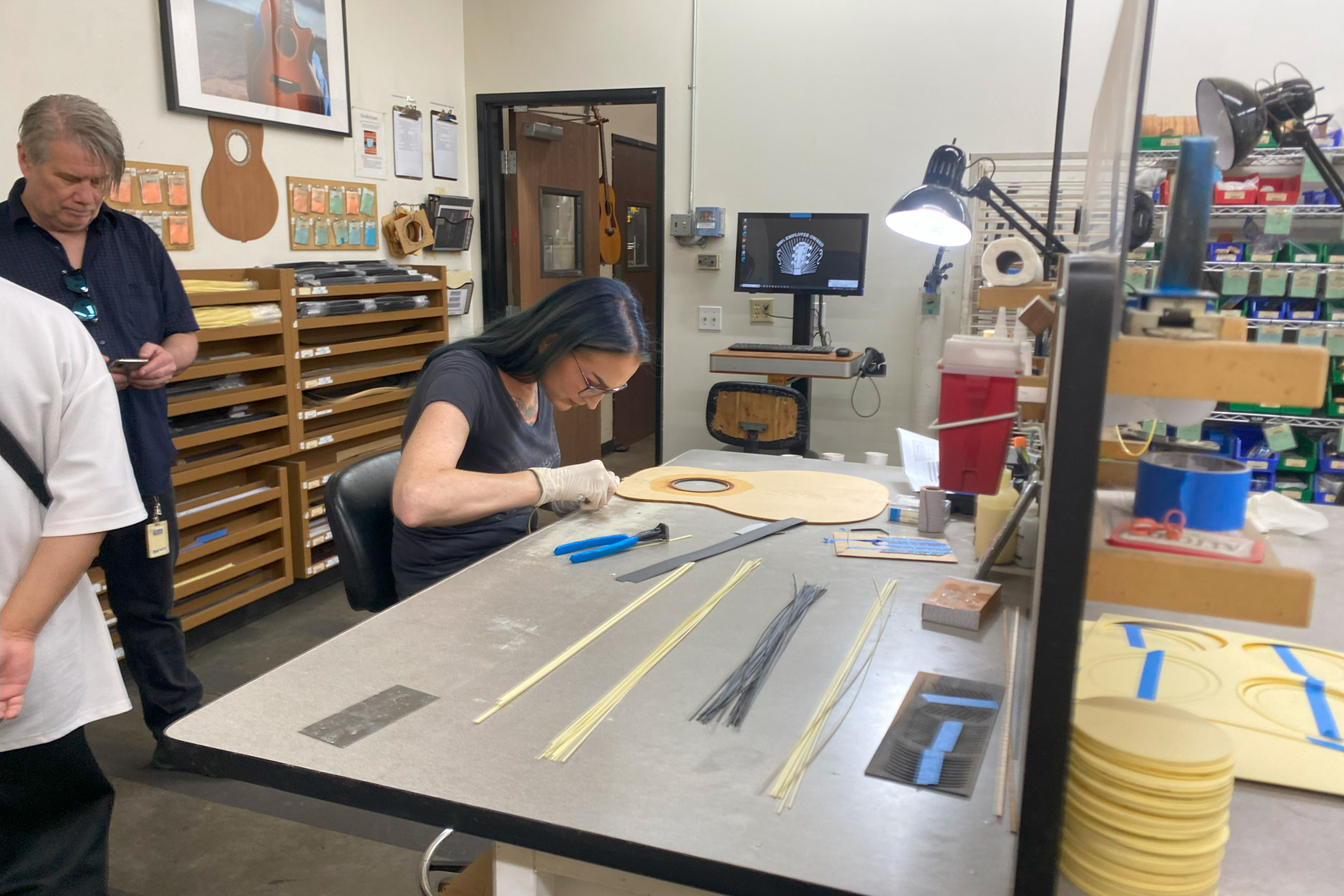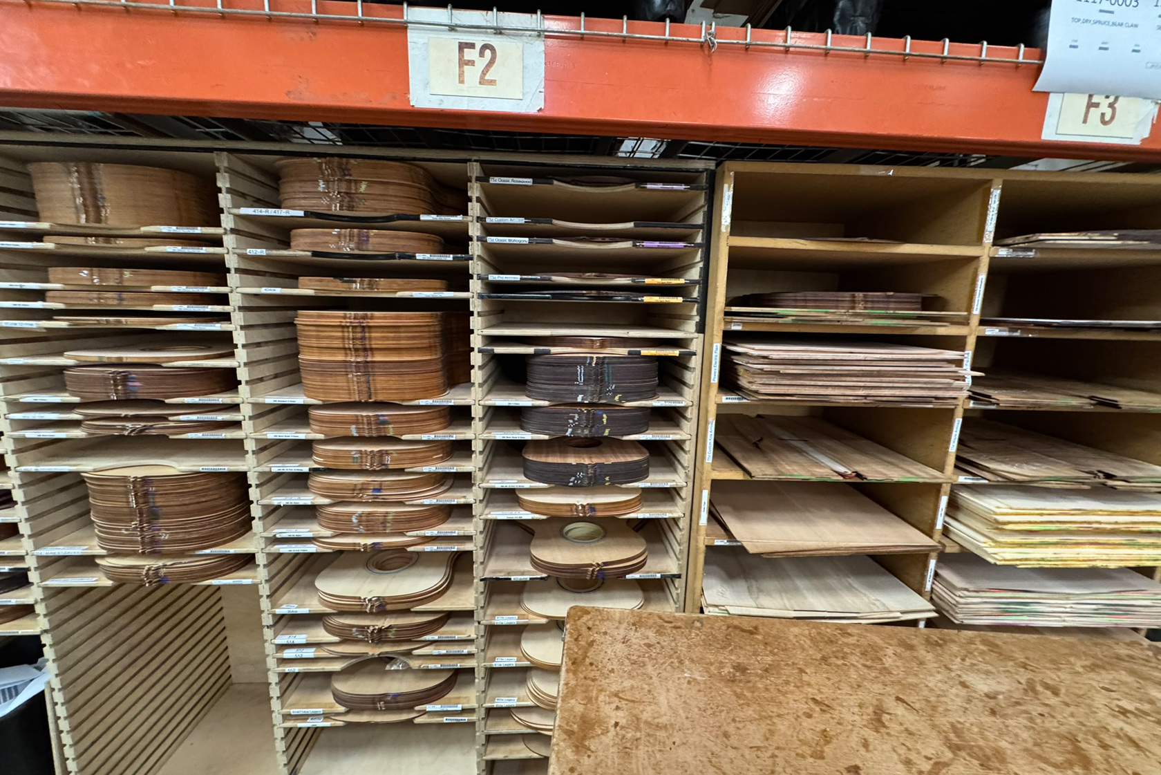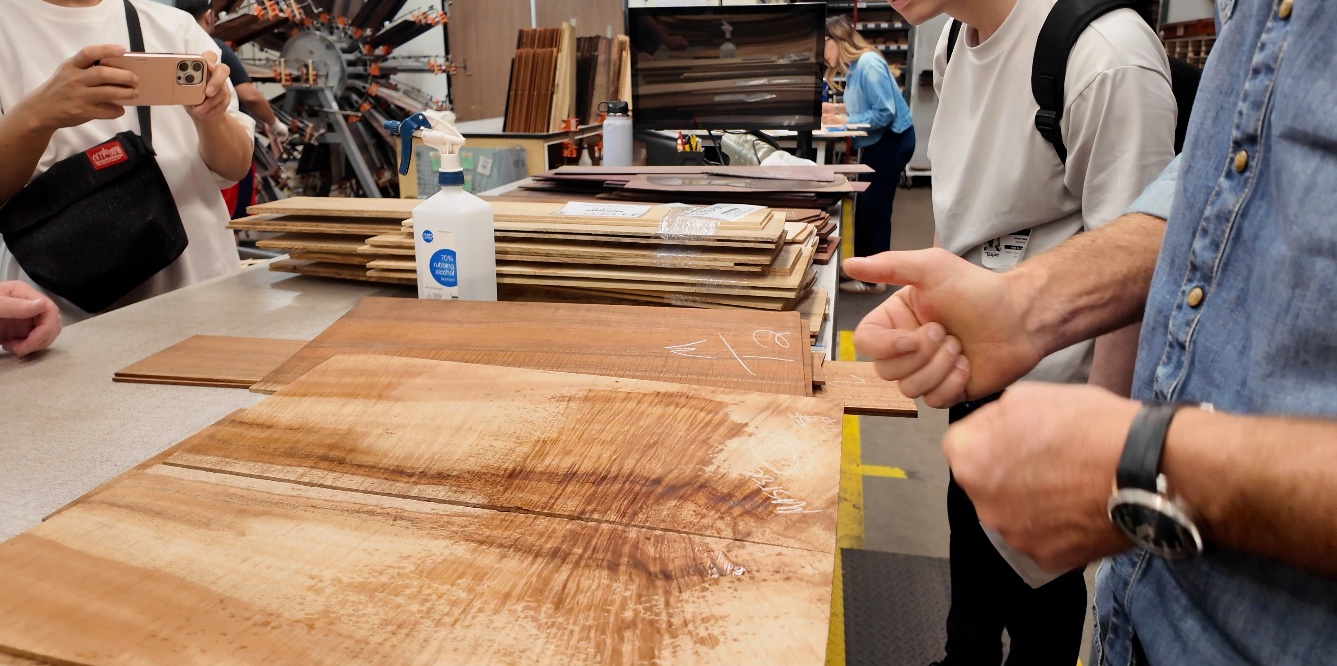 2025年7月にエルカホン工場に訪問。現在のCEO&チーフギターデザイナーを務めるアンディー・パワーズ氏と木材専任のスペシャリスト、ロクサーヌ氏と共に厳選された木材のストックから拘り抜いた木材を選定して参りました。