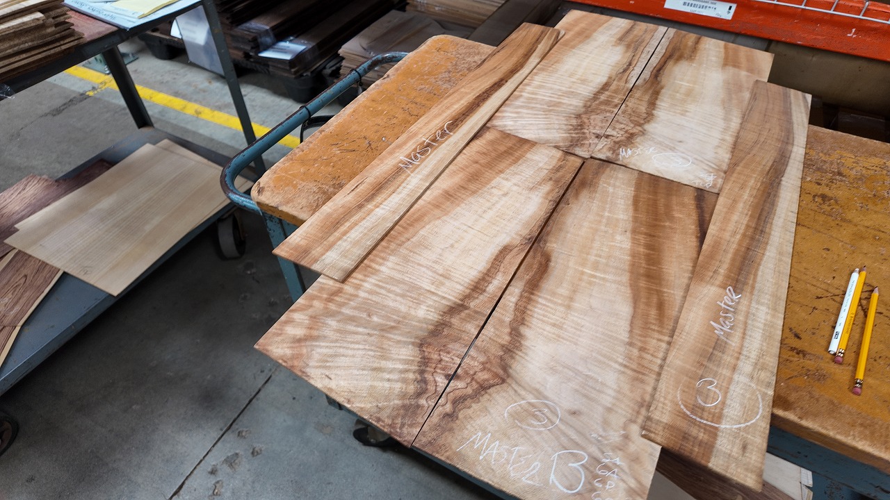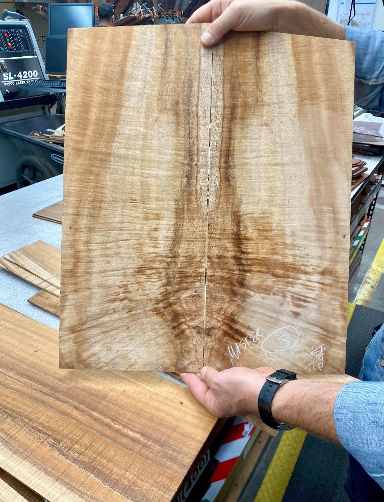 希少材として知られている Hawaiian Koa。今回、選定した Master Grade Hawaiian Koa はアンディー・パワーズ氏と共に複数ある板の中から選び抜いた、渾身の木材です。