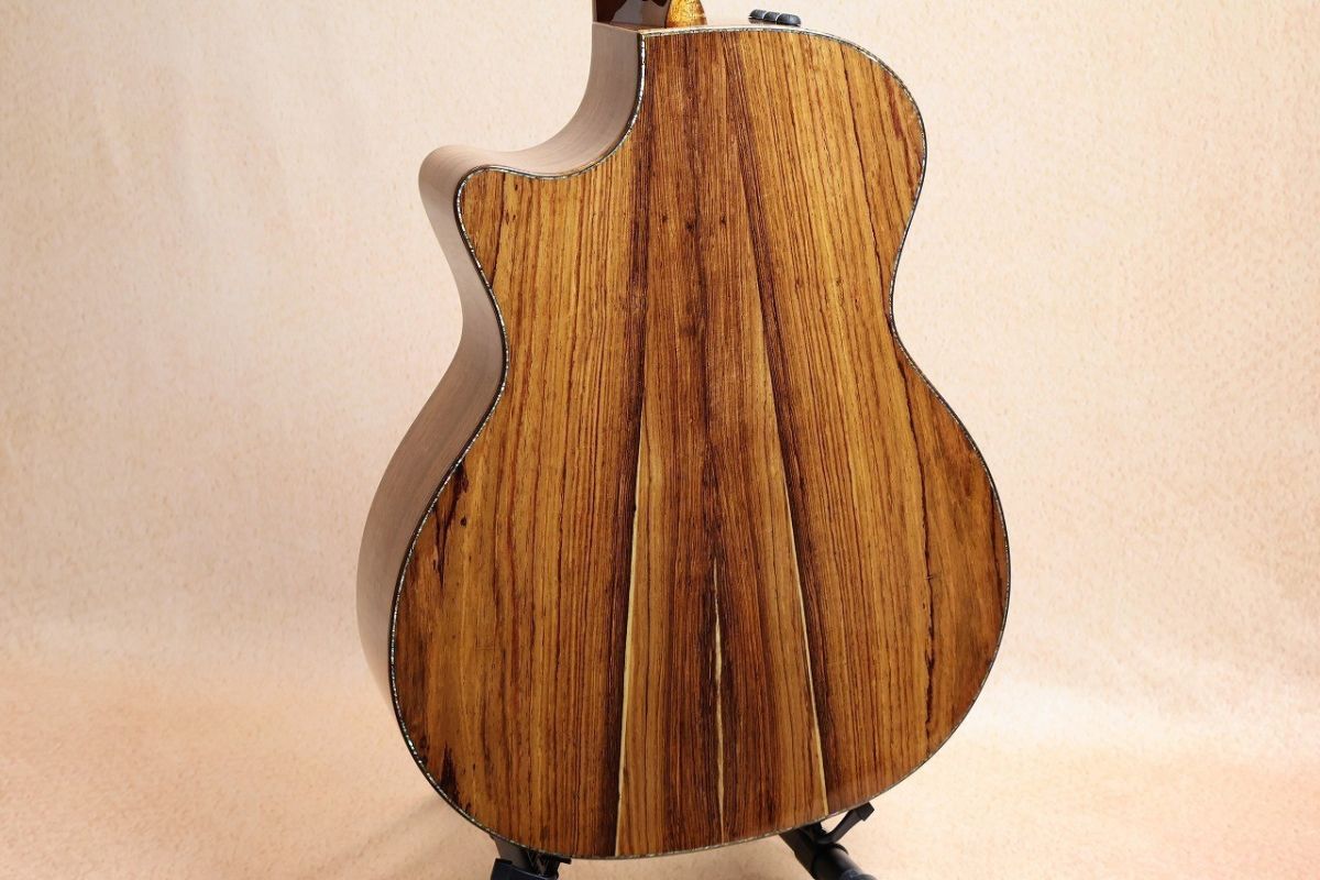 木材専任のスペシャリスト、ロクサーヌ氏と選んだ木材は、ベアクロウ・シトカスプルースとホンジュラス・ローズウッドの組み合わせ。