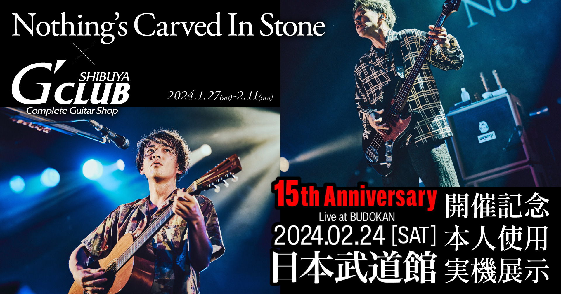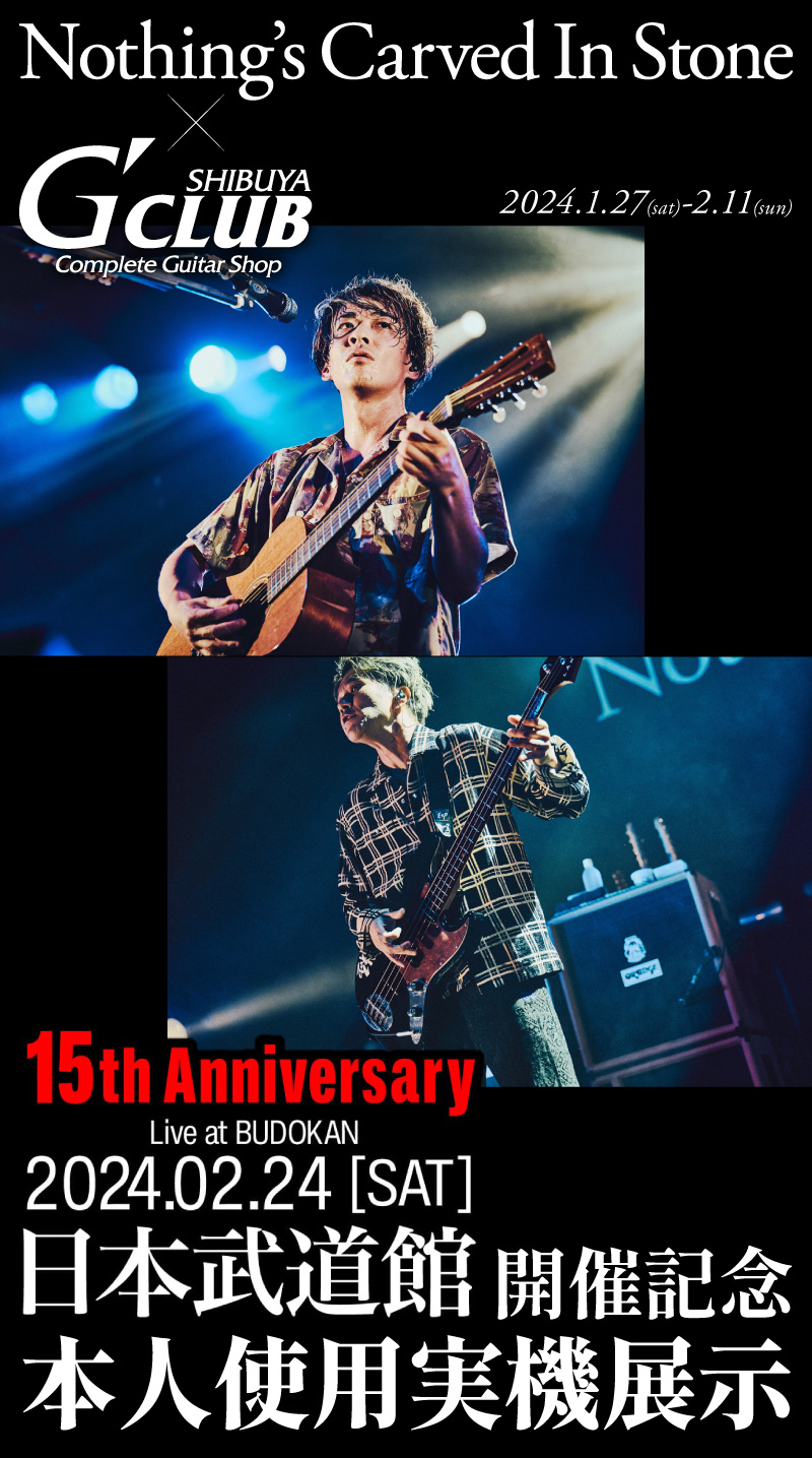 Nothing's Carved In Stoneの結成15周年記念日本武道館ワンマンライブ“Nothing’s Carved In Stone 15th Anniversary Live at BUDOKAN”の開催を記念して、G-CLUB SHIBUYA店頭ショーウィンドウ/6F Martinフロアにてメンバー使用楽器の実機展示が決定!