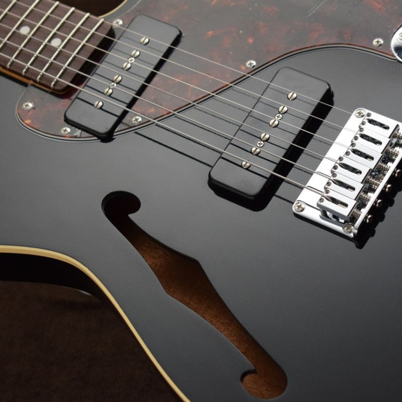 P-90ソープバータイプのオキザリスピックアップを搭載し太くウォームでありながらも明瞭で歯切れの良いタイトなサウンド。
