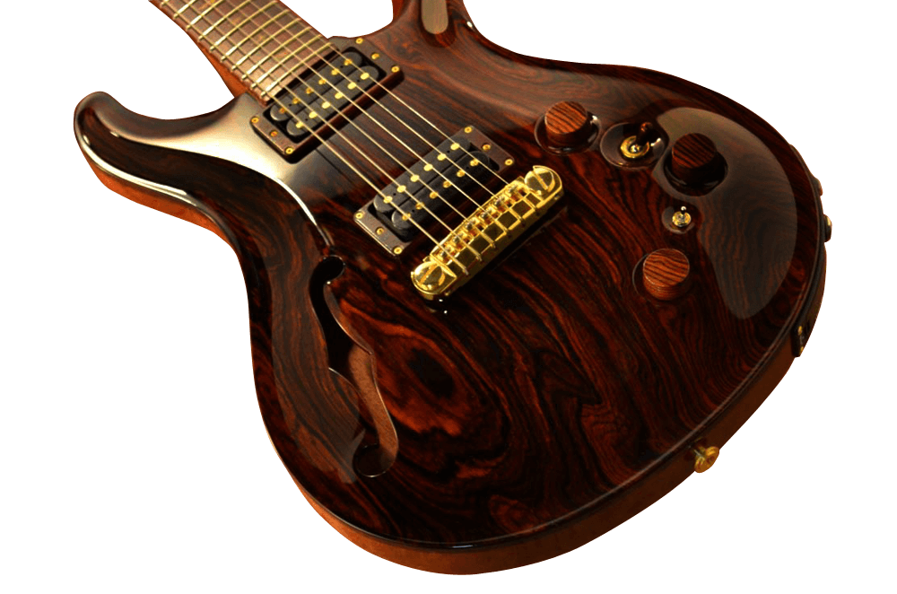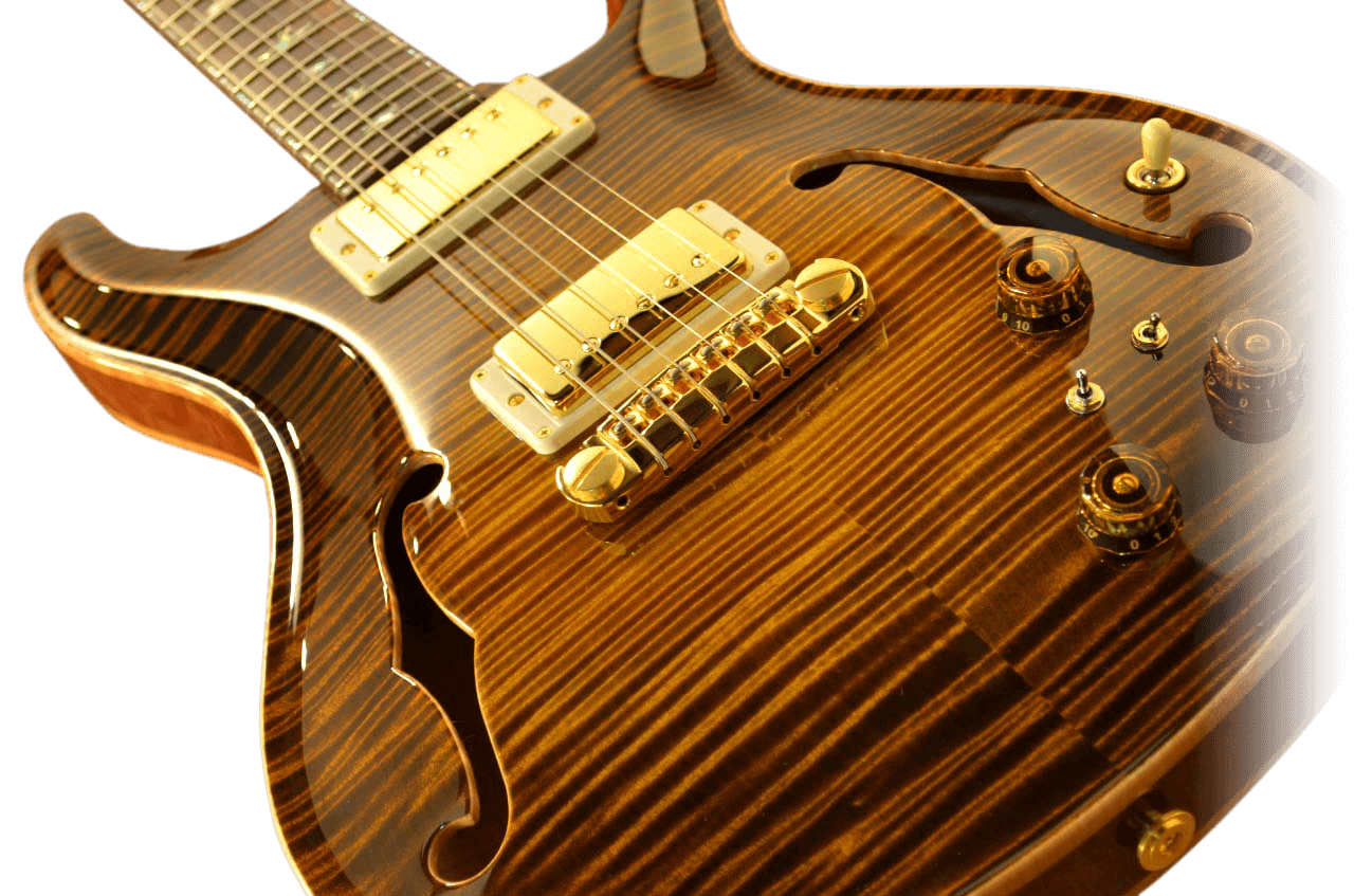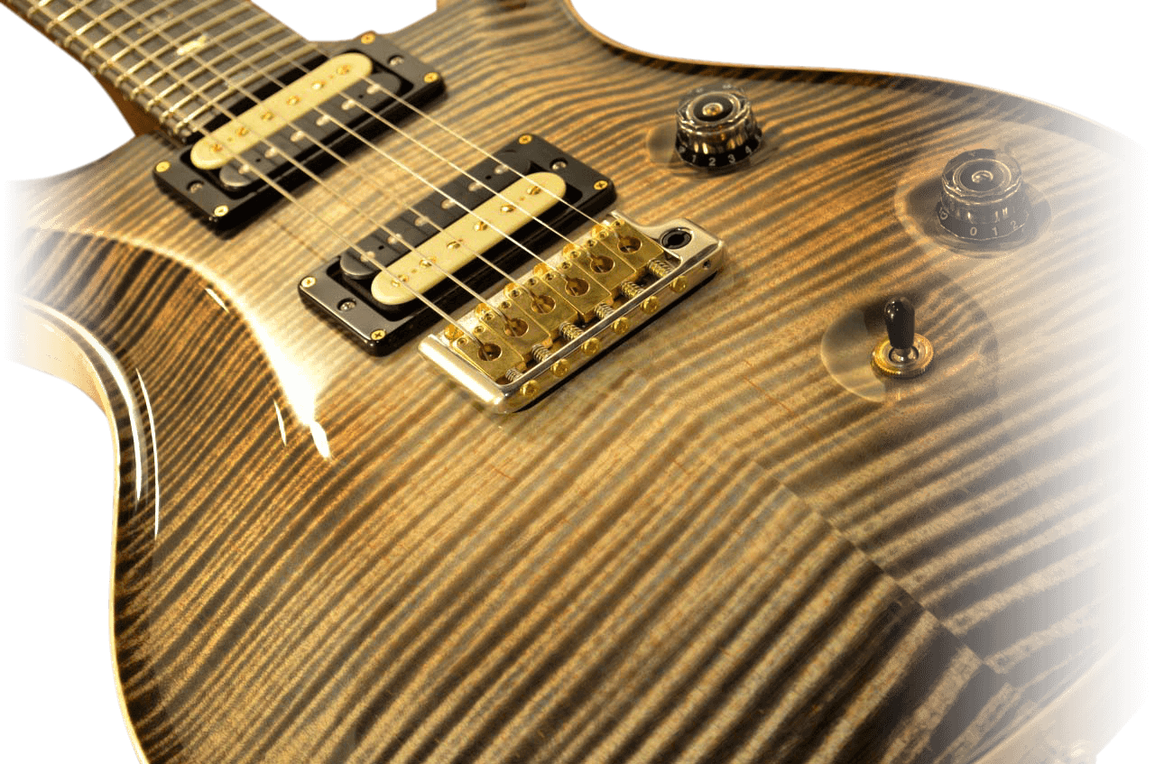 Hardware:Gold . PRS Tremolo,phase III locking tuning pegs with African Blackwood buttons and Curly Maple backplate