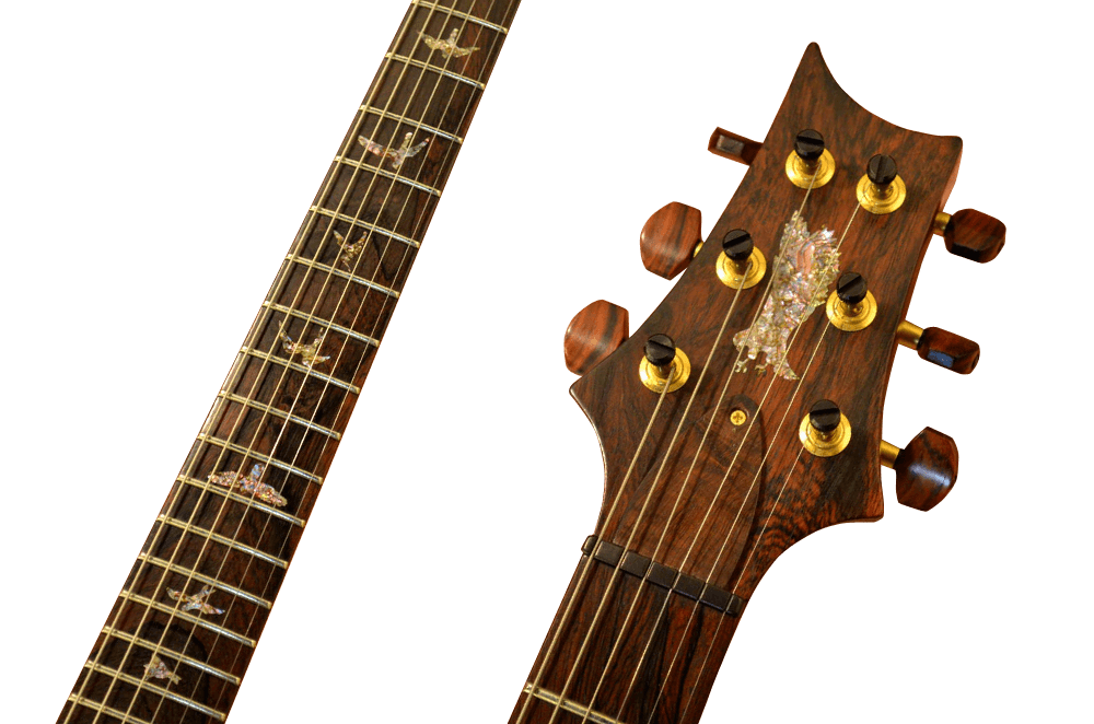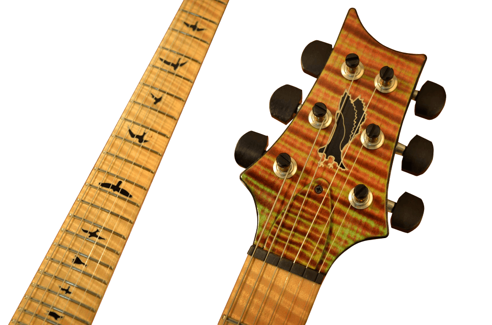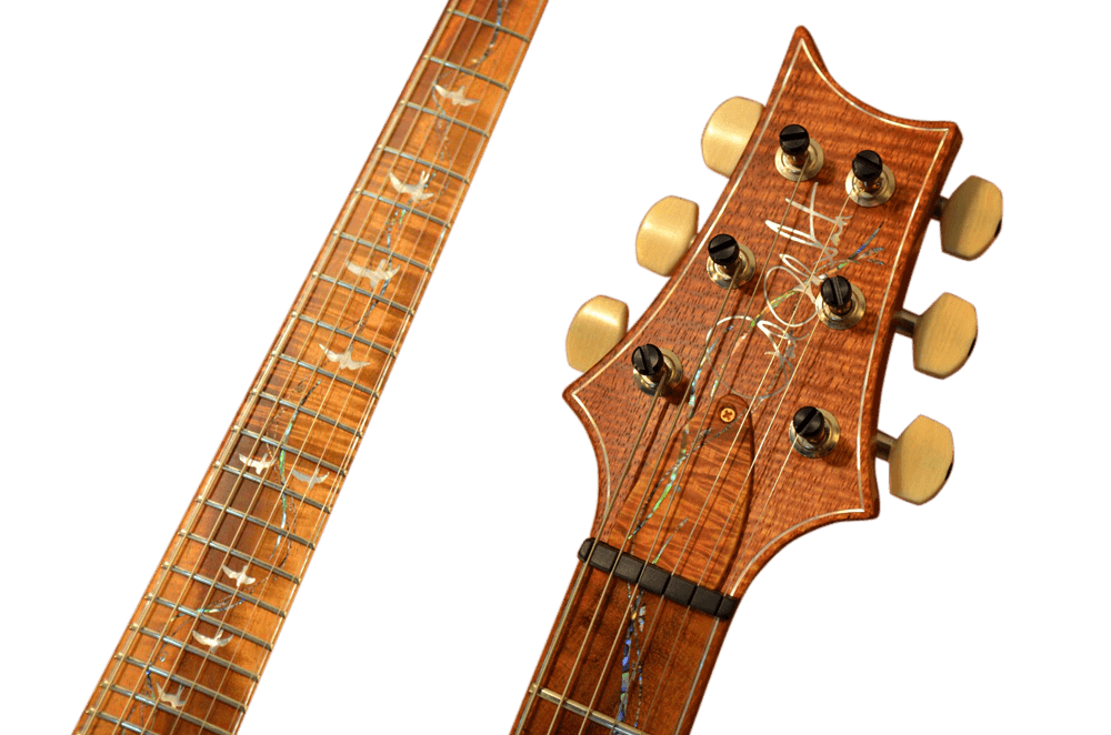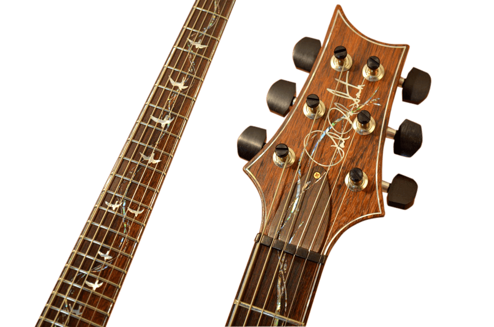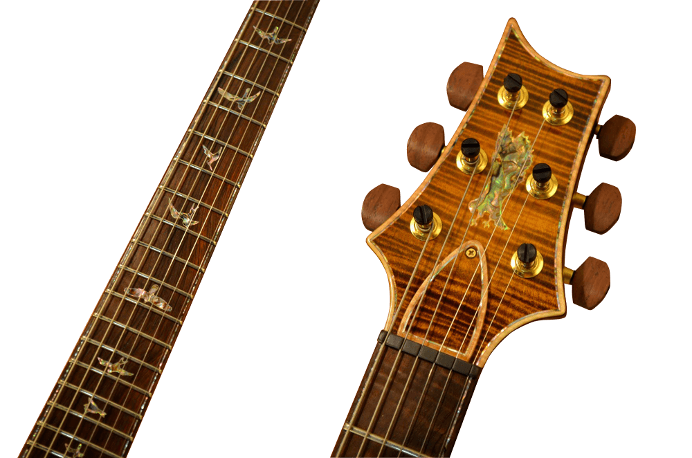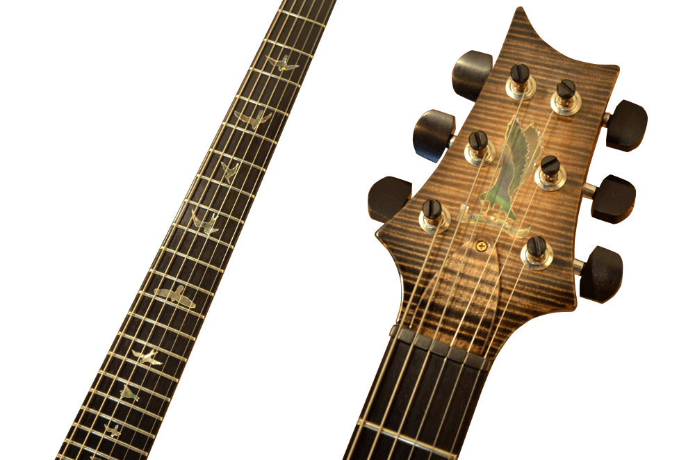 Headstock venner inlays:Mother of pearl Paul Reed Smith signature with paua "Vine" inlay as well as mother of pearl purfling
