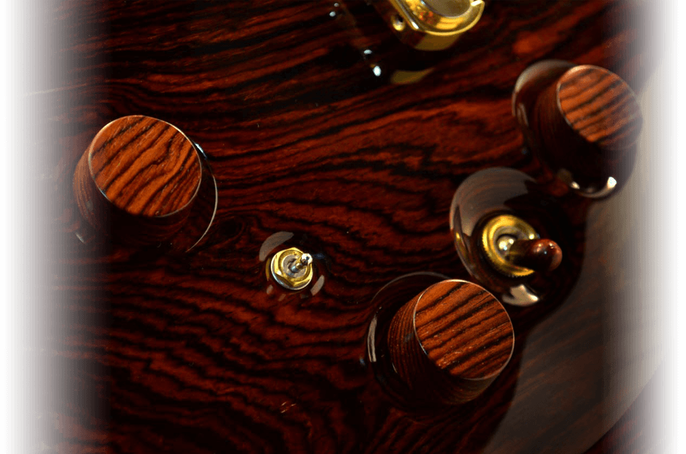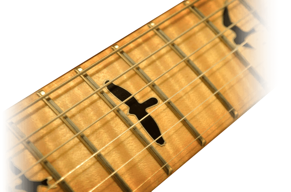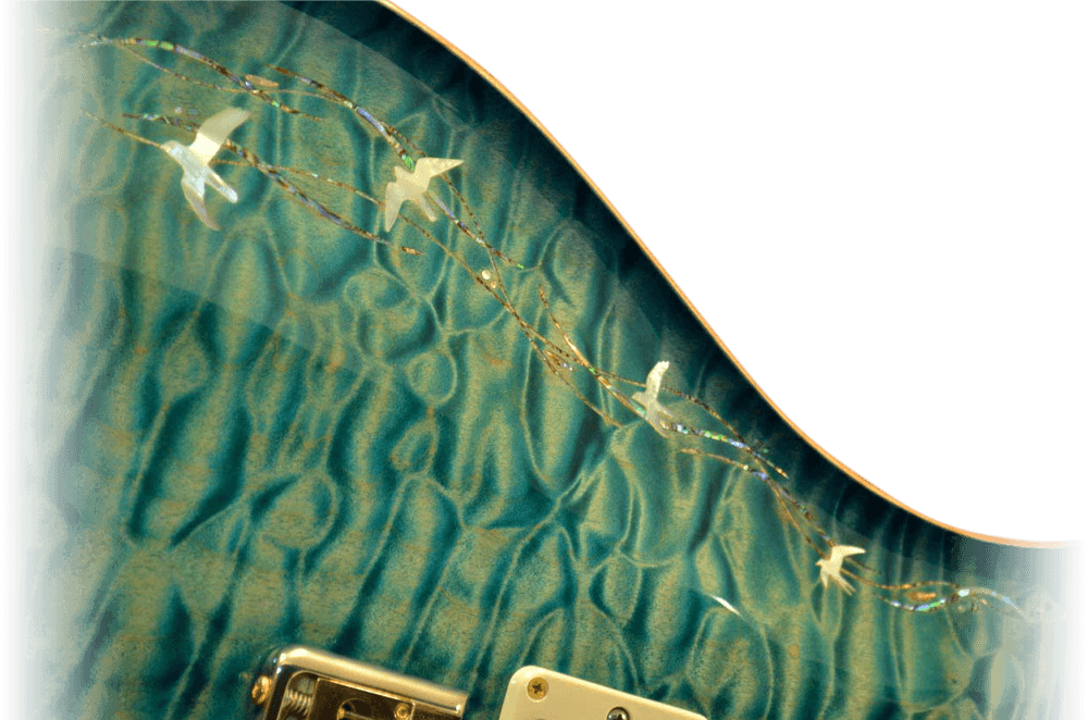 Top wood:Quilted maple with mother of pearl birds and paua Vine inlay