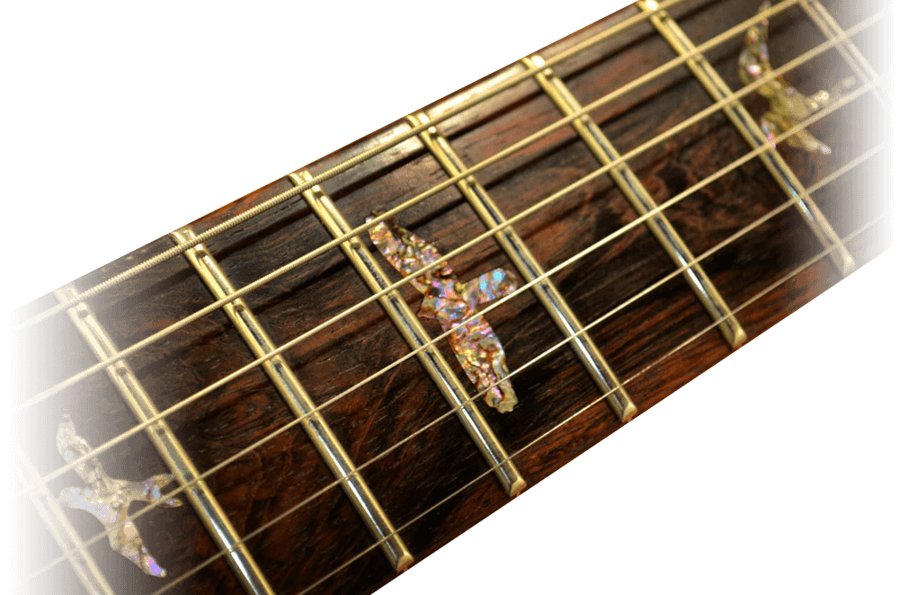 Fingerboard Inlays:Select abalone birds with awabi outlines and select abalone purfling