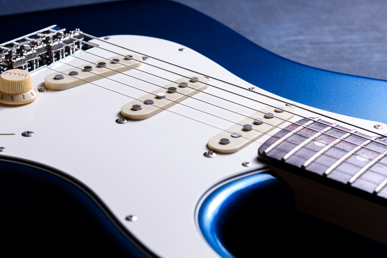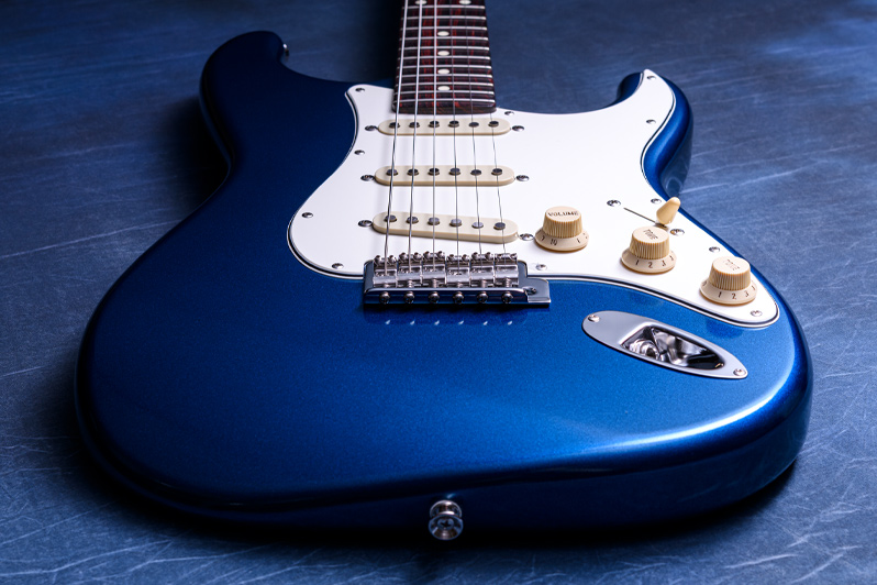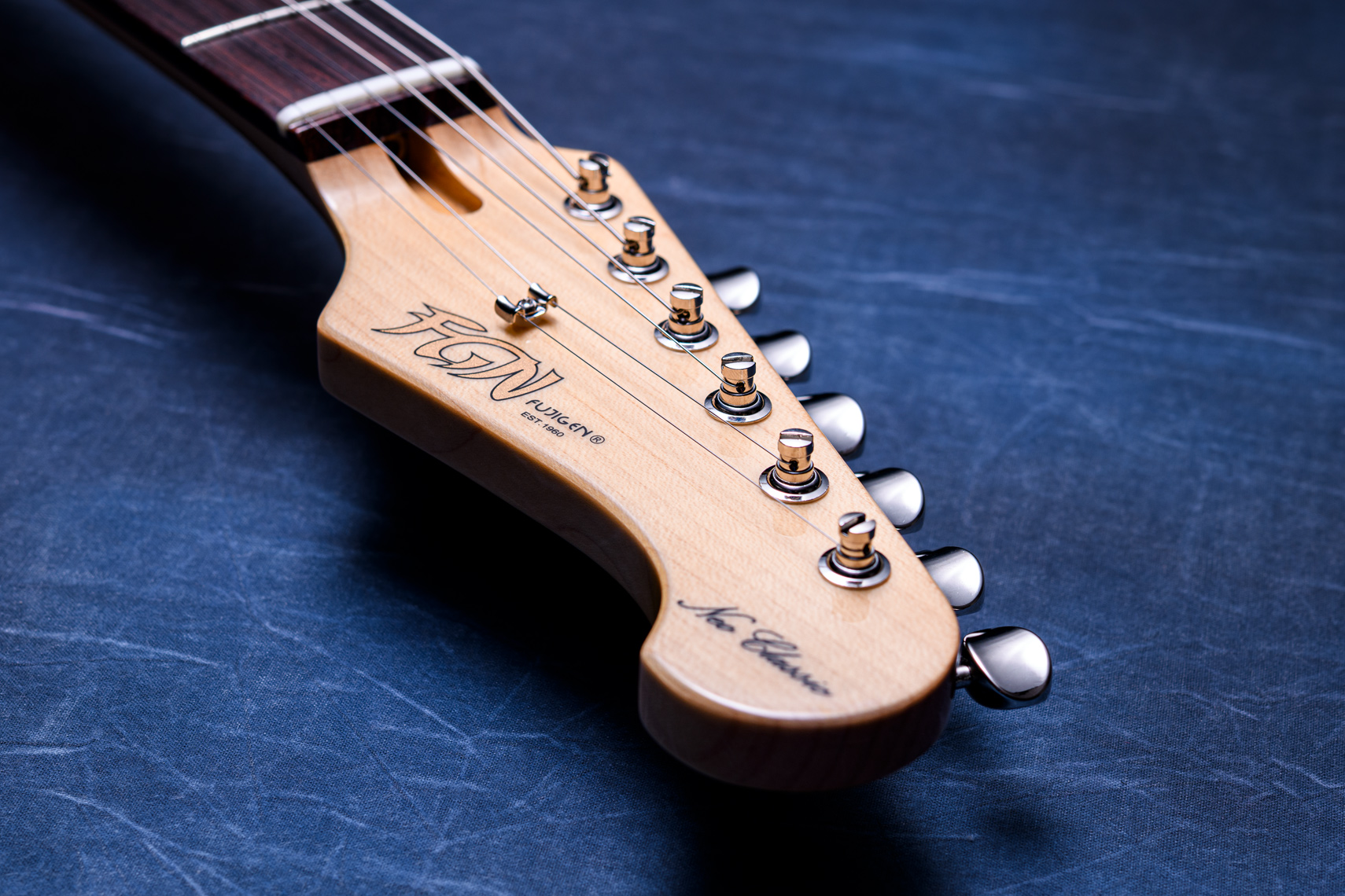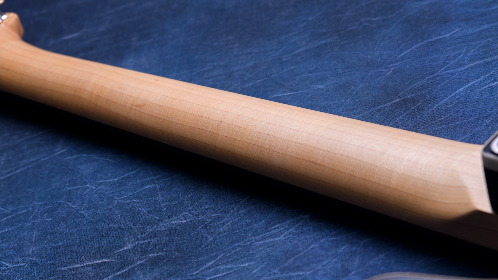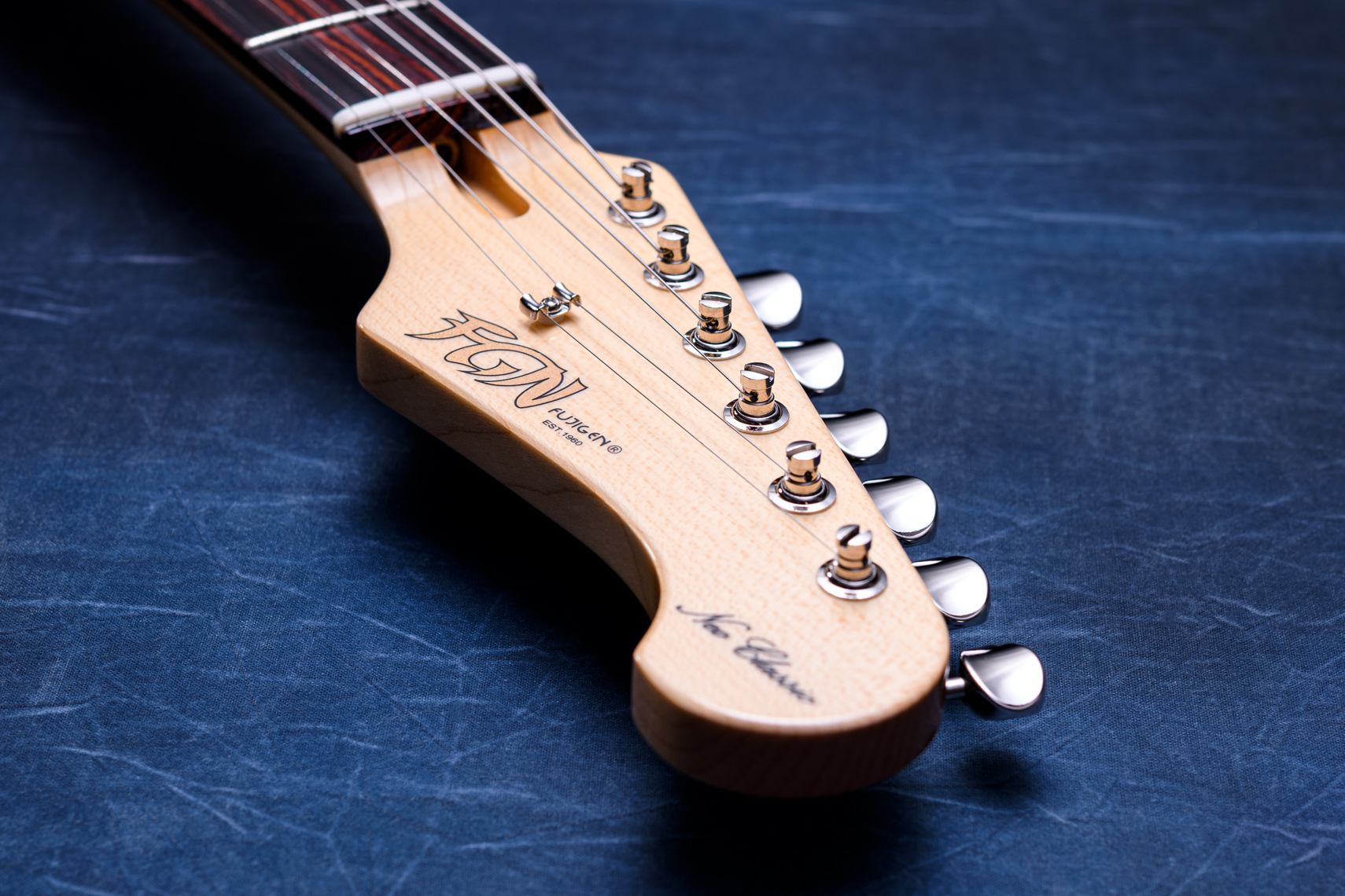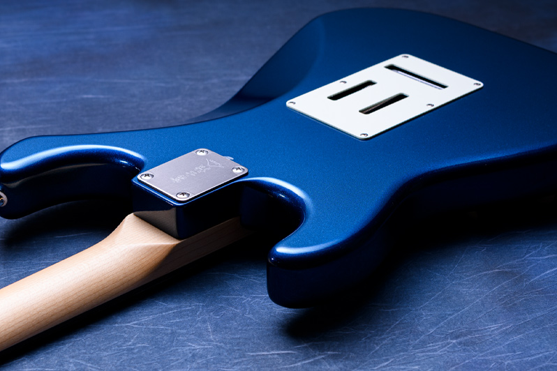 ボディのアルダーには豊富なストックから軽量な材を選定。良質な指板材、ネック材は比較的重くなる傾向があるので、ボディを軽量指定することでほど良い全体バランスに仕上がっています。