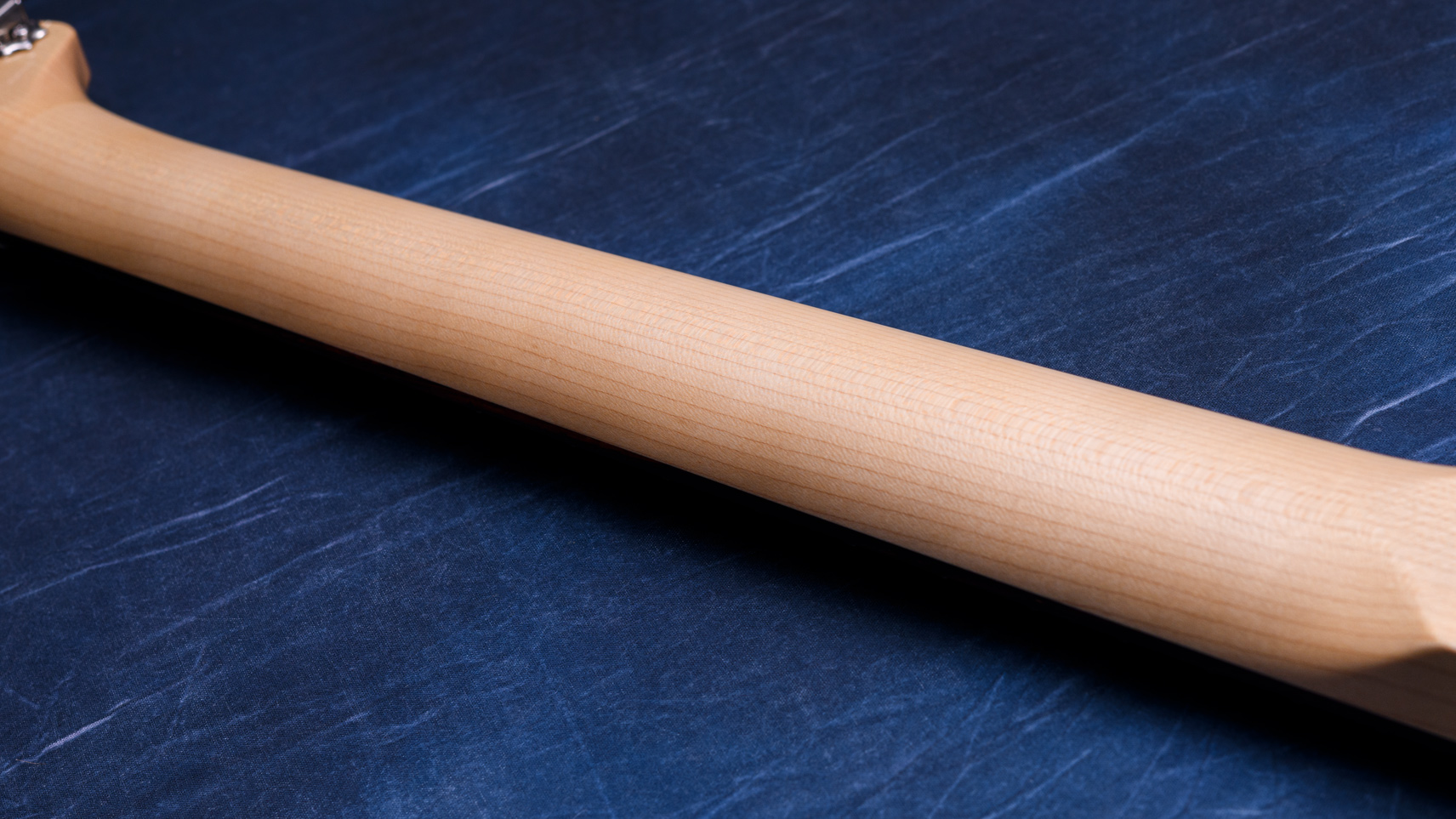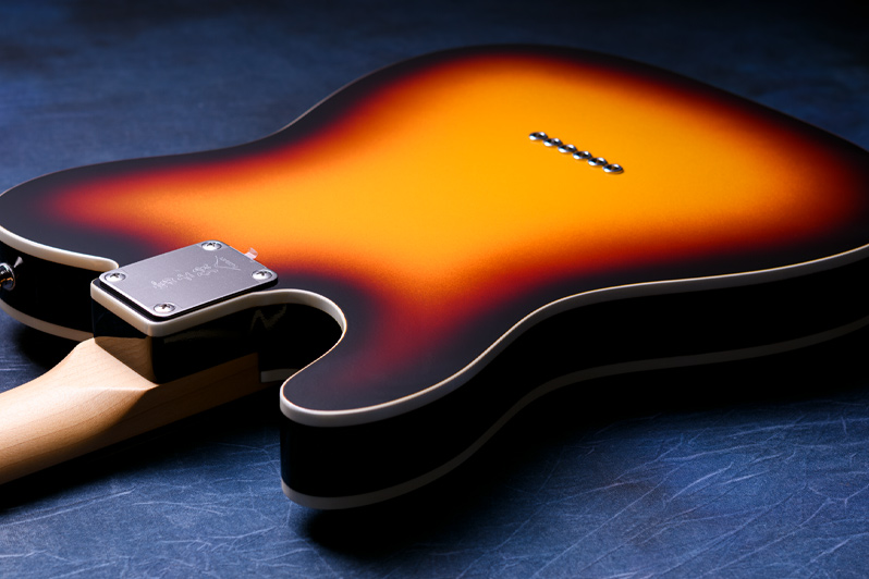 カタログモデルと同様のウレタン塗装を極薄に仕上げ、木材本来の鳴りを備えつつ、塗装としてのデリケートな部分も解決。塗装の工程を省くことで、ラッカー塗装のような光沢感のある仕上がりになっています。
